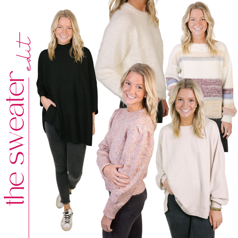 Sweaters are the easiest fall essential to elevate your most casual attire and help you look put together, even when you may not feel like it! Whether you choose to pair with leggings, jeans, corduroys, or work pants, you’ll have a complete look in a matter of moments. Shop the Sweater Edit to see a few of our favorite sweaters this season!