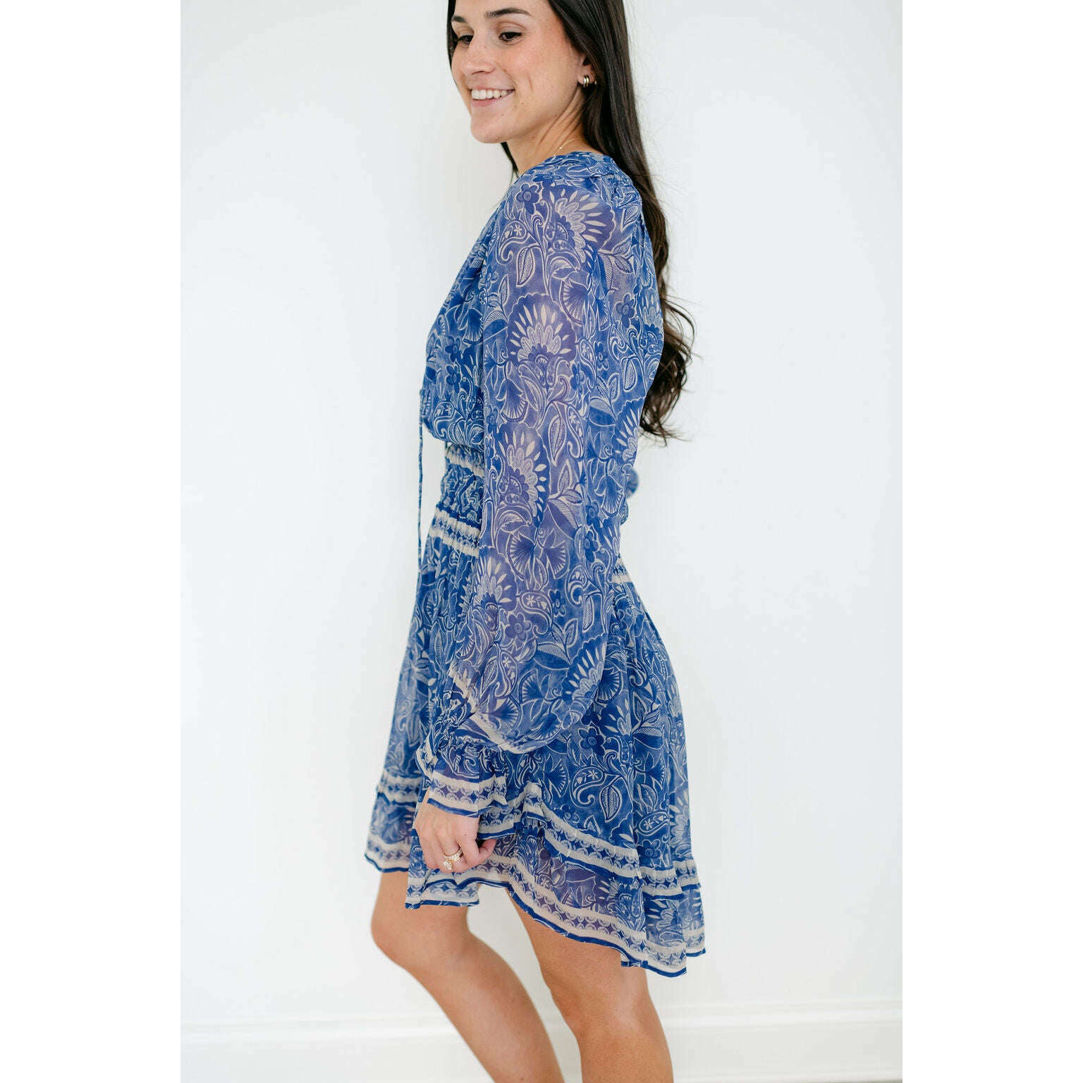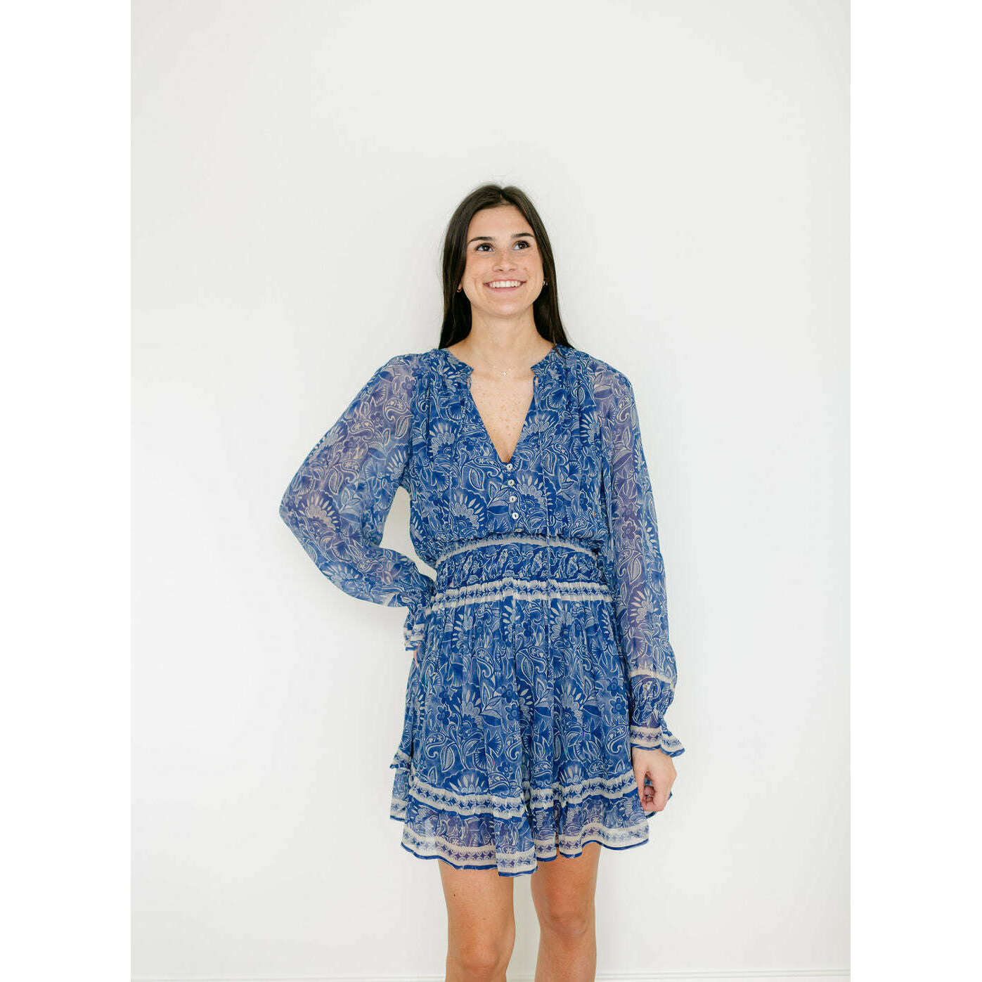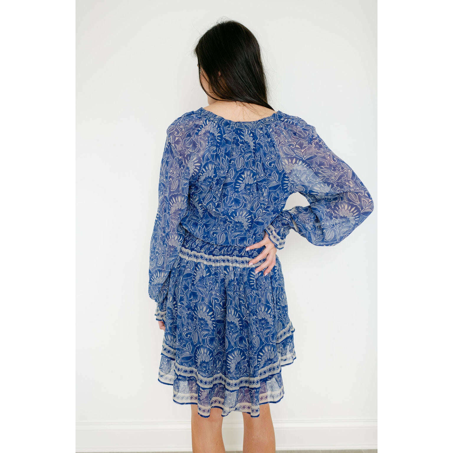 The Juliet Dress is offered in a flowy viscose georgette fabric in the Arabesque Print. This print is thoughtfully placed, highlighting details on the dress such as the V neckline, smocked waist, elasticated cuffs, and ruffled hem. The bodice and skirt of this dress is fully lined.