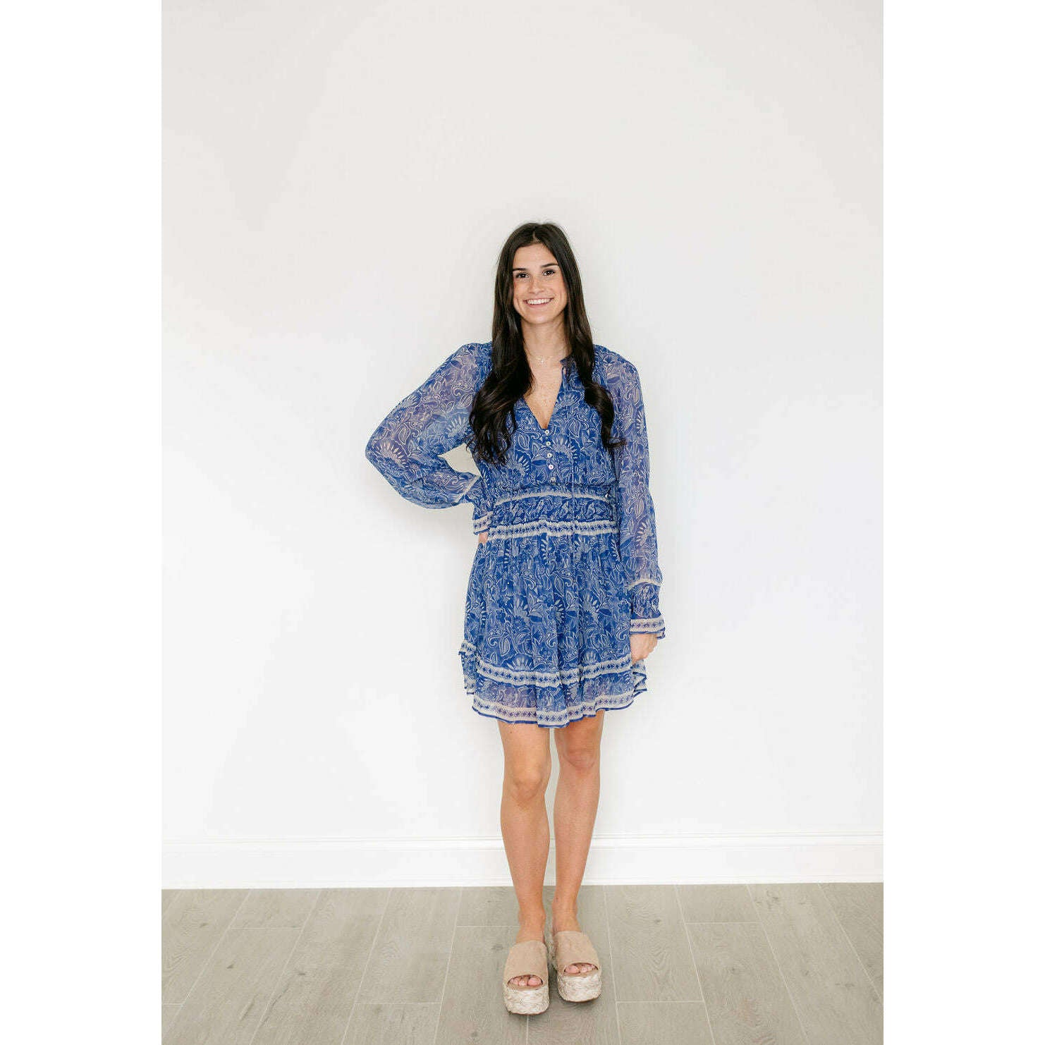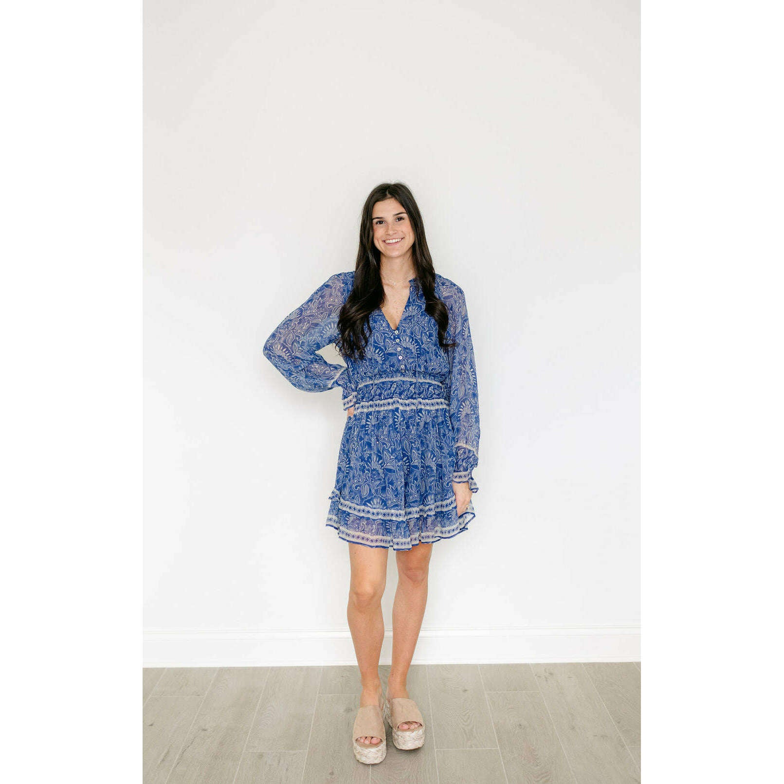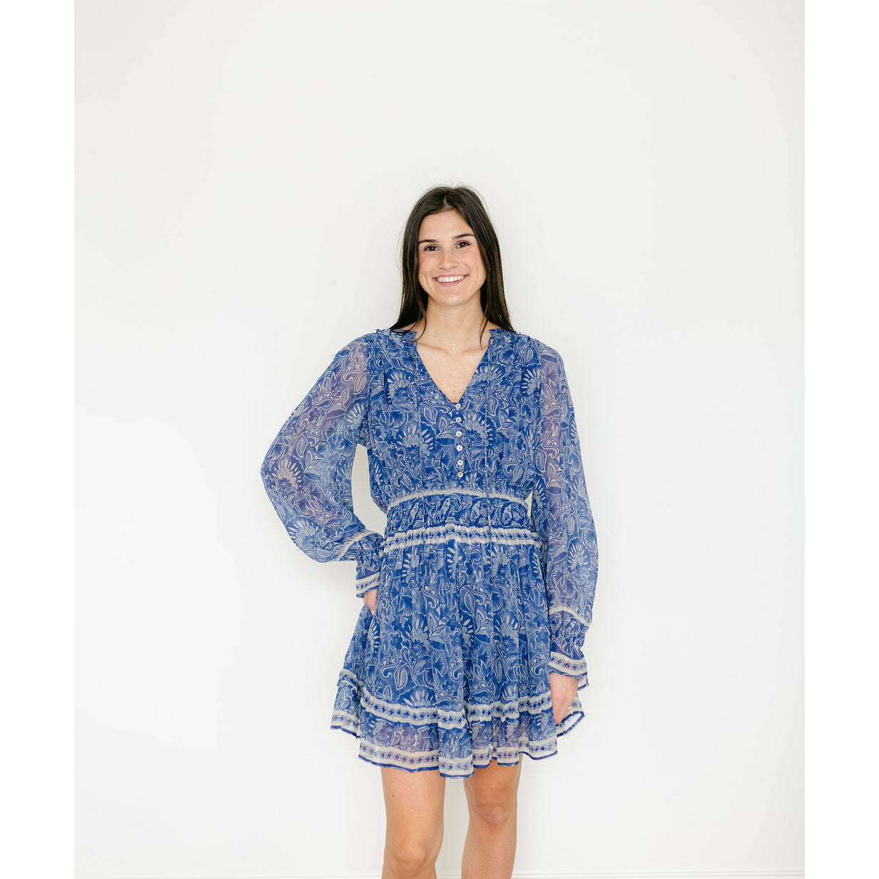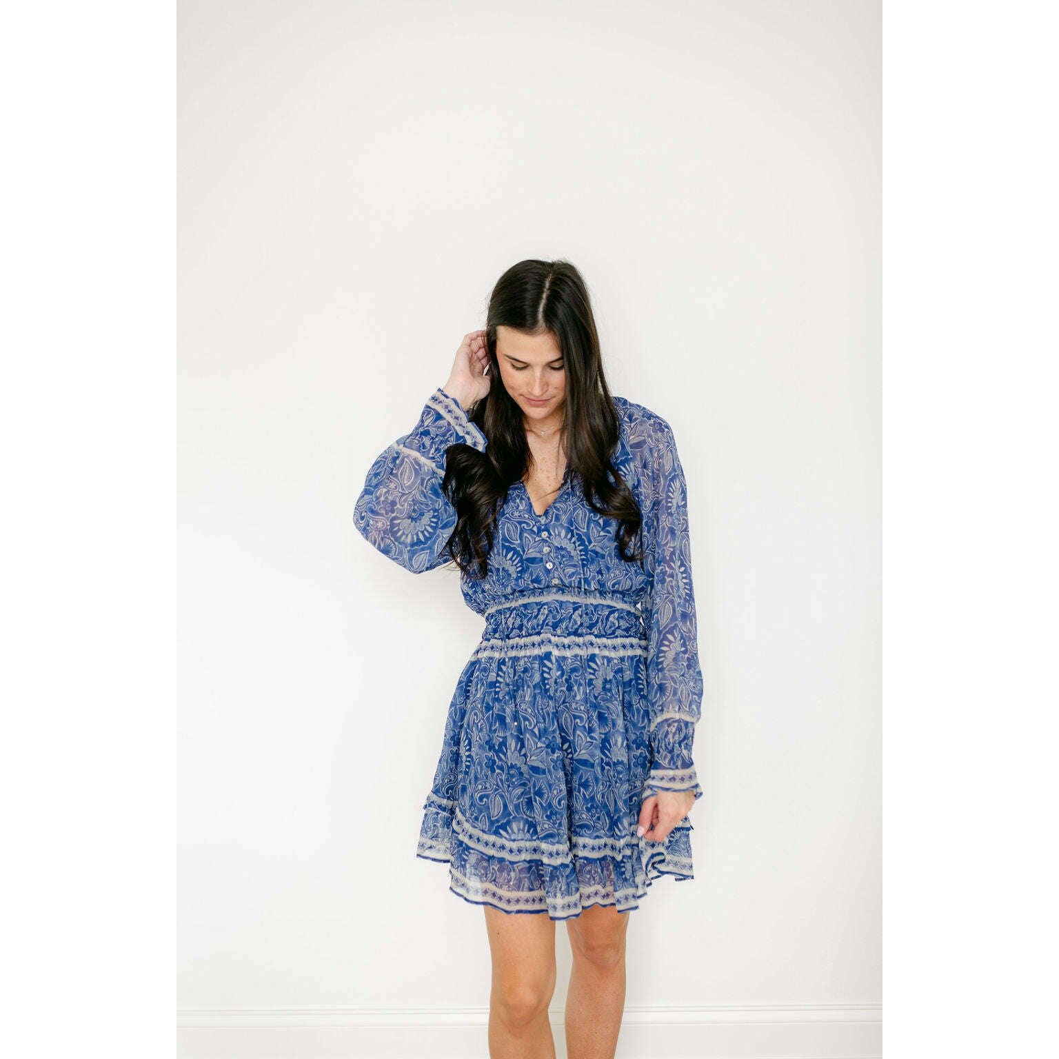 The Juliet Dress is offered in a flowy viscose georgette fabric in the Arabesque Print. This print is thoughtfully placed, highlighting details on the dress such as the V neckline, smocked waist, elasticated cuffs, and ruffled hem. The bodice and skirt of this dress is fully lined.