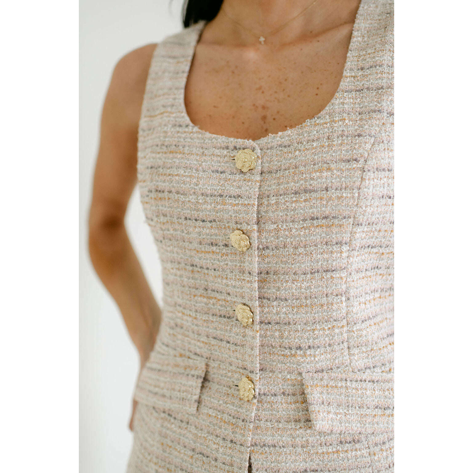 The Sincerely Ours Angeline Romper in Beige Tweed combines timeless style with modern appeal, featuring charming button details that elevate any casual look. Designed for effortless elegance, this trendy piece is perfect for weekend events and everyday adventures where you want to look put-together without trying too hard.