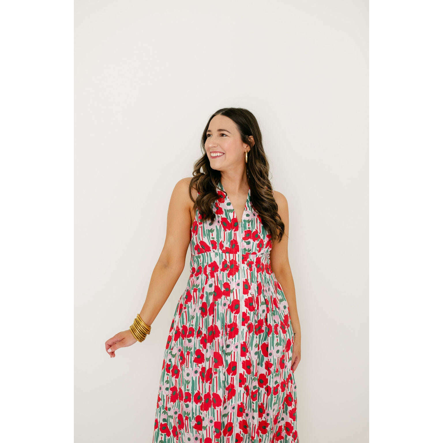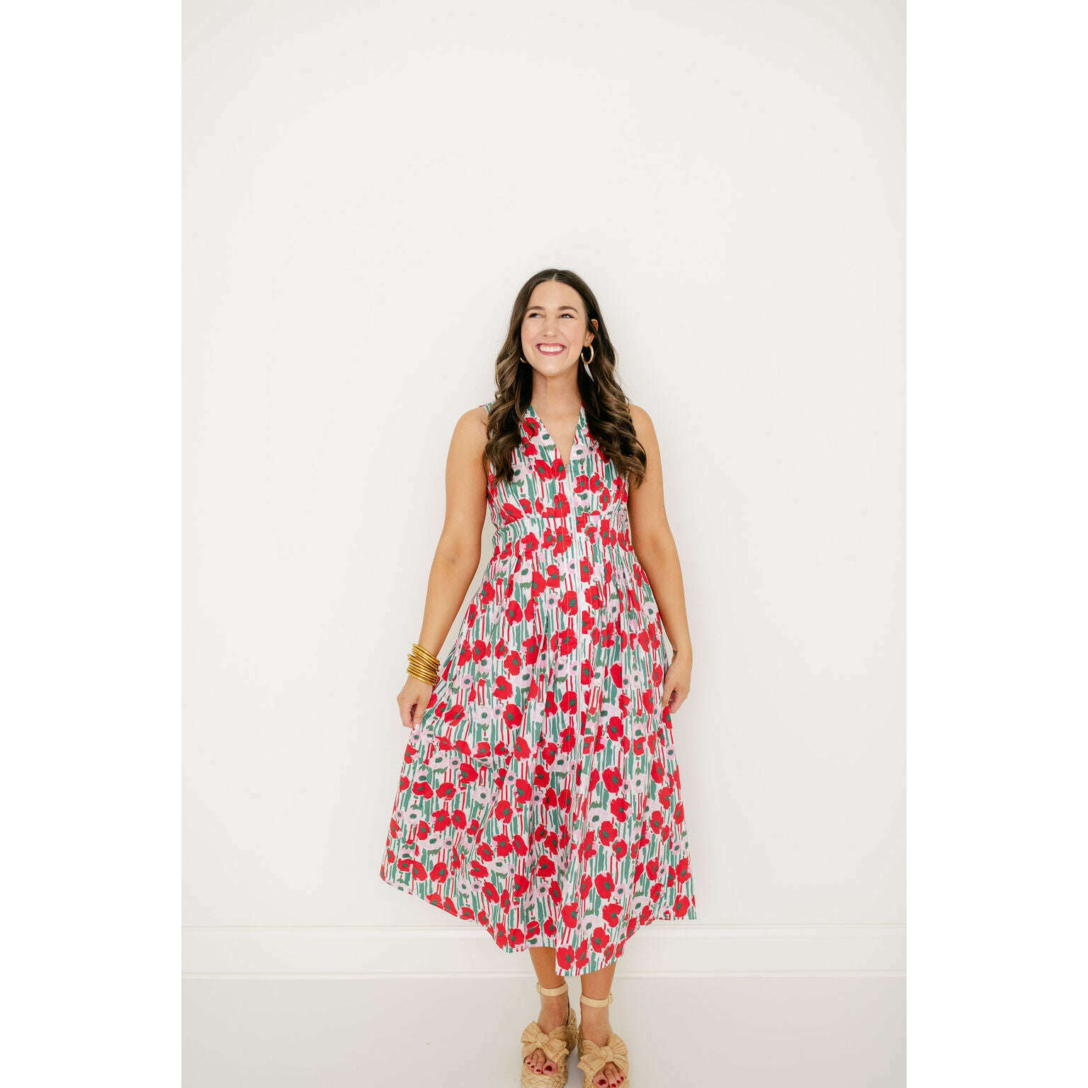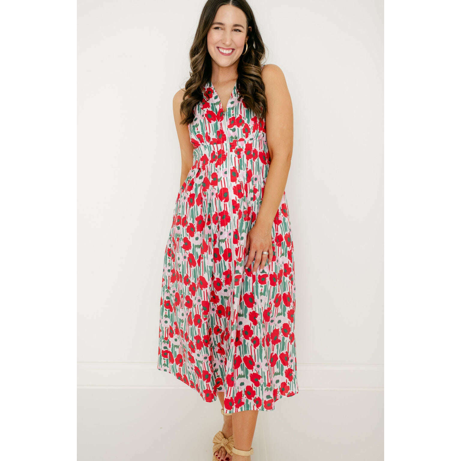 Entro Red Floral Zip Up Midi Dress