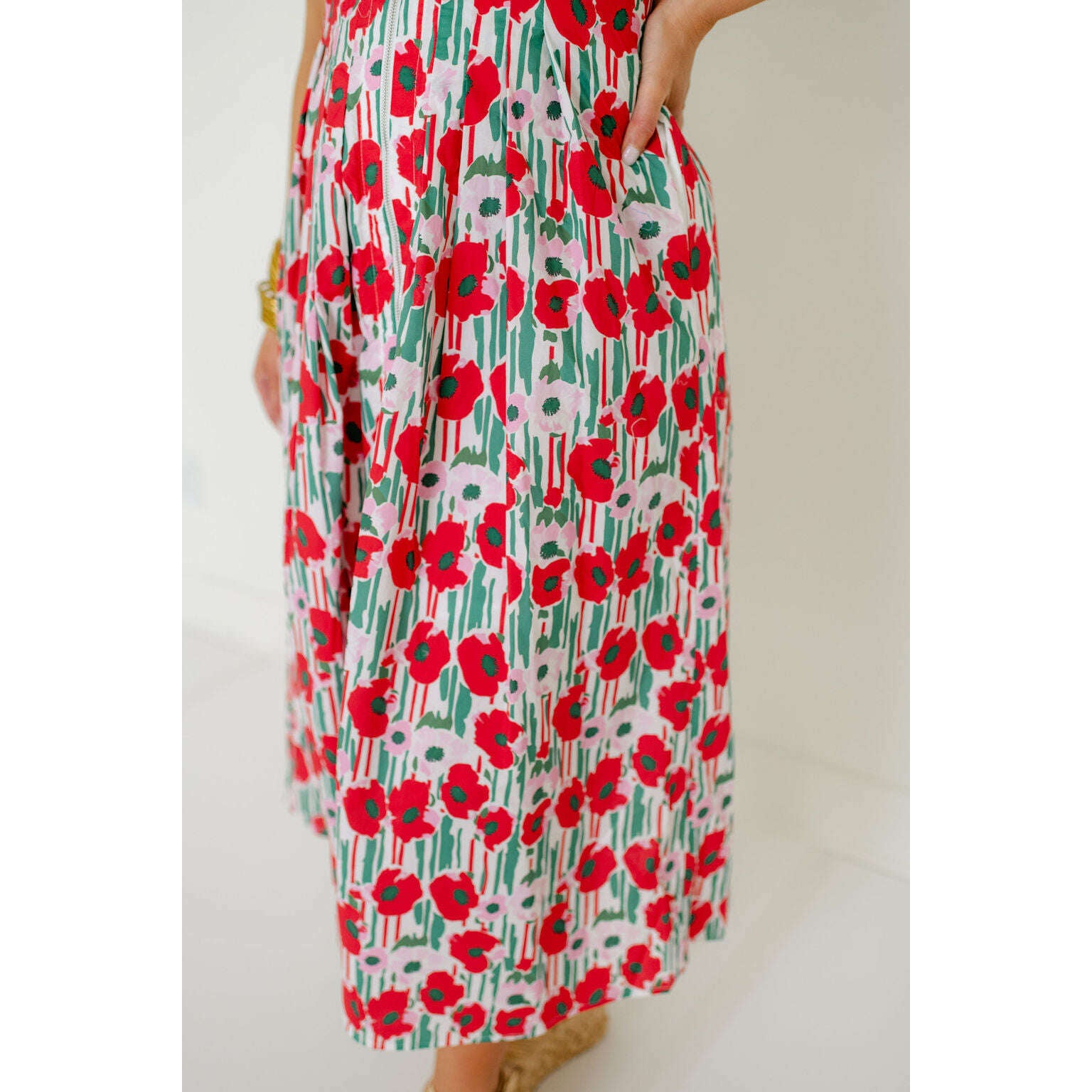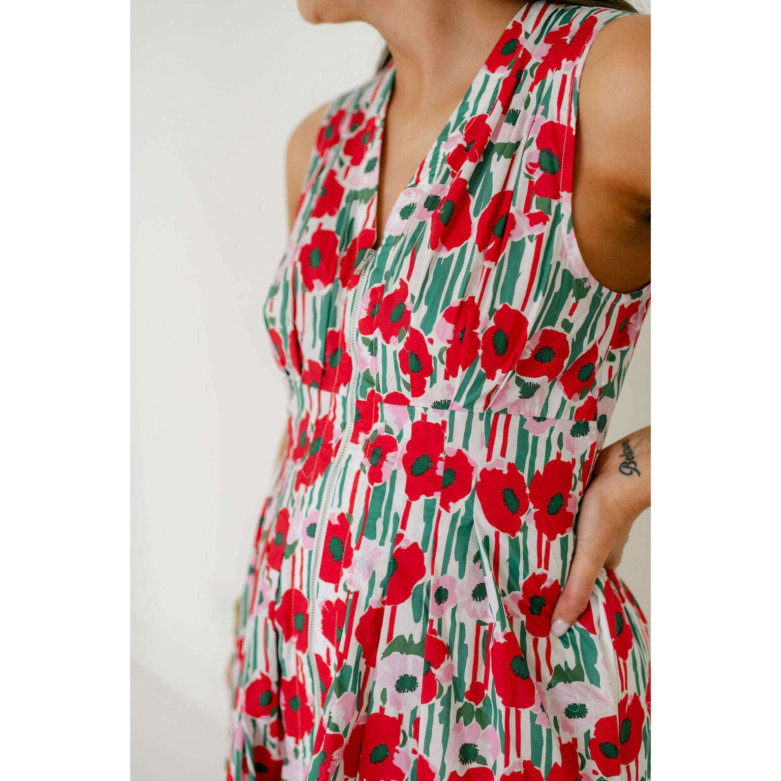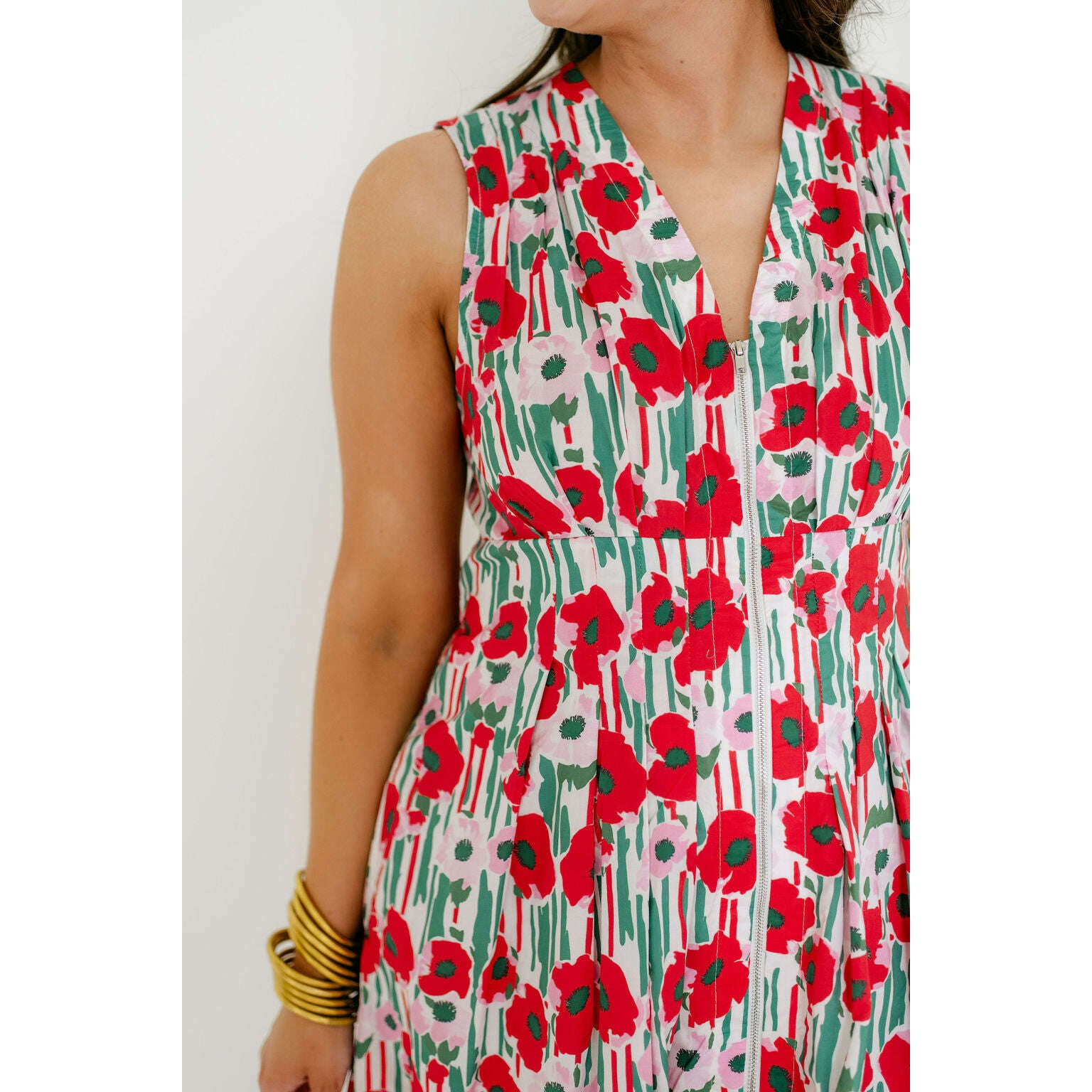 Entro Red Floral Zip Up Midi Dress
