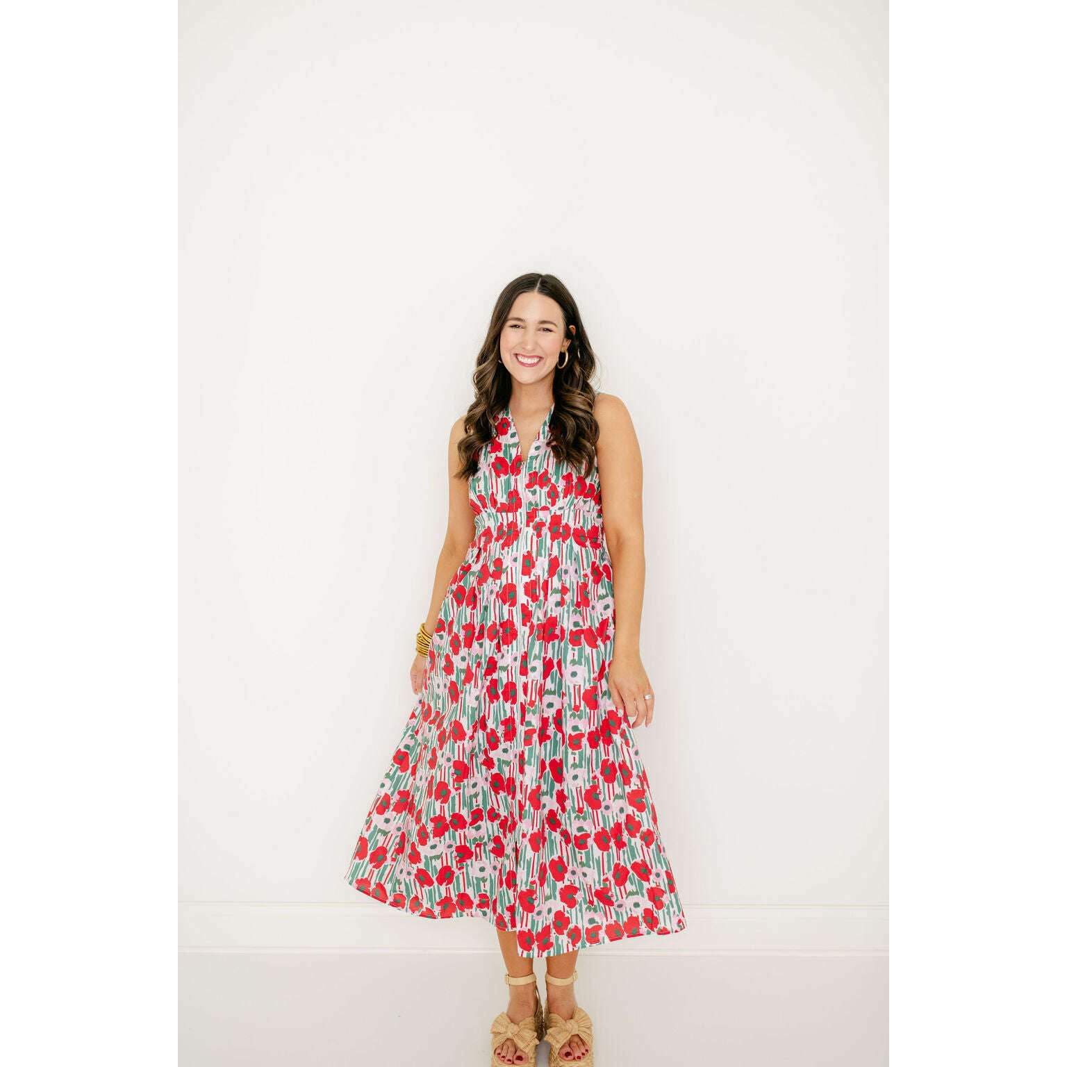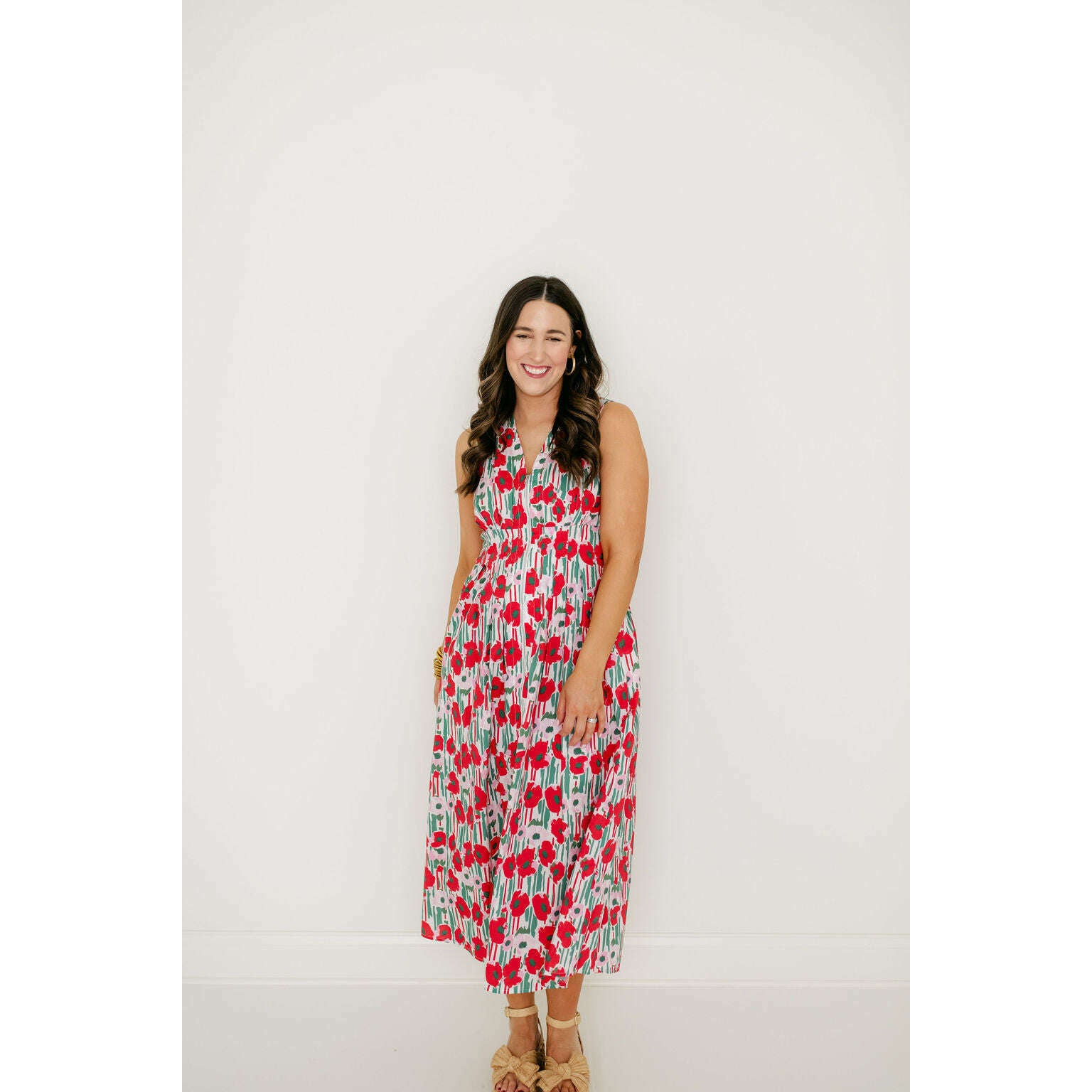 The Entro Red Floral Zip Up Midi Dress brings vibrant spring and summer style with its cheerful red floral print and convenient zip-up front. Perfect for casual outings or warm-weather adventures, this midi dress combines playful charm with easy, everyday wearability.