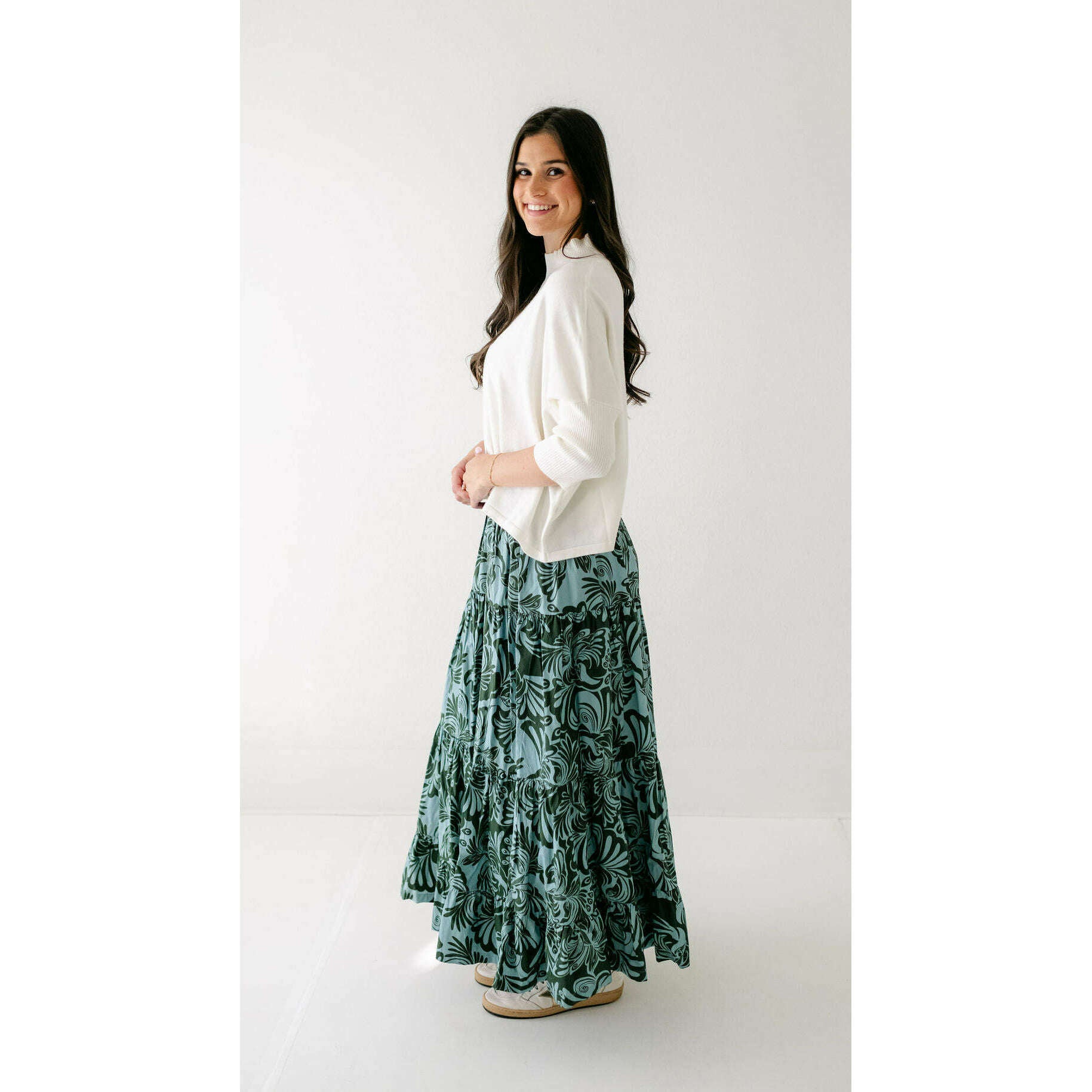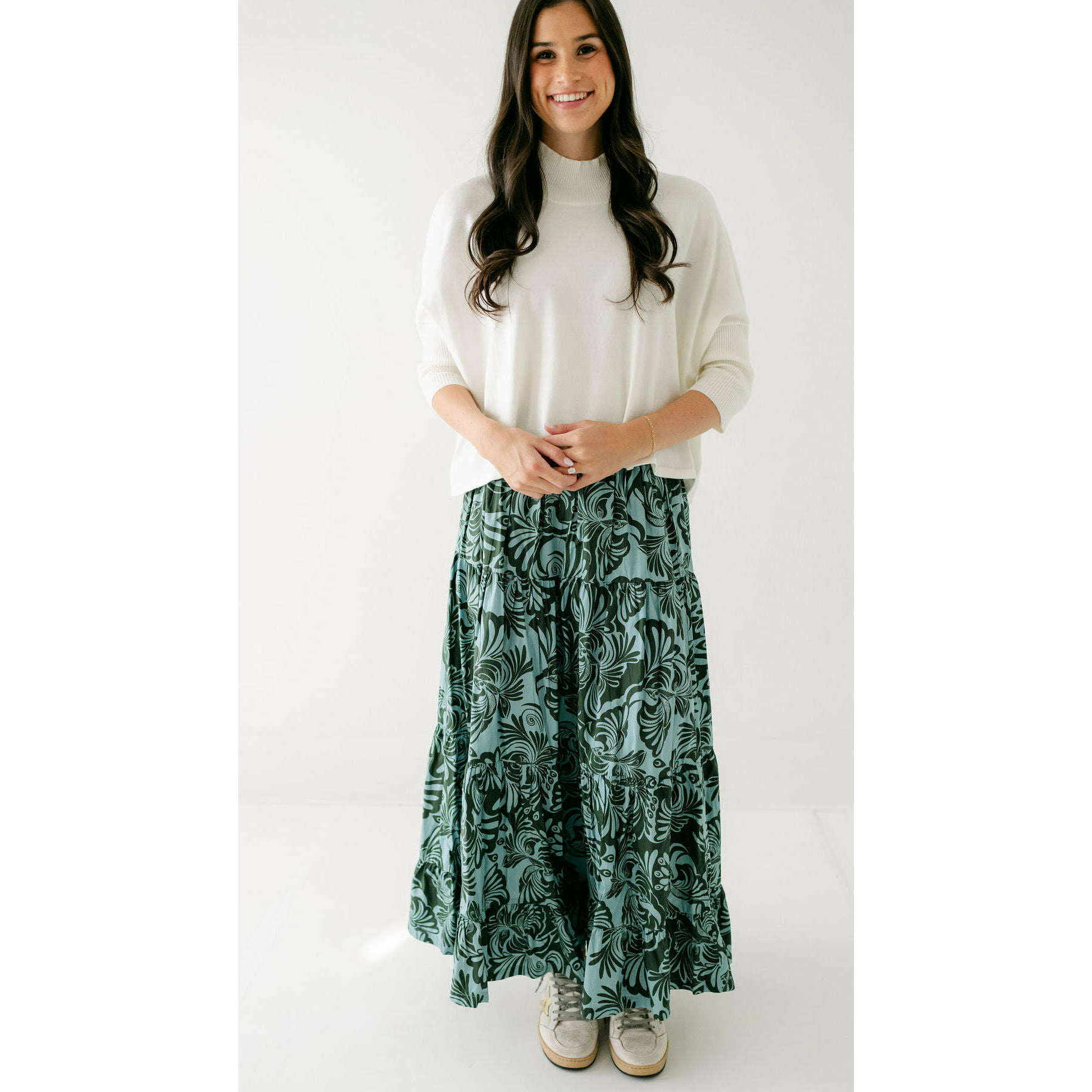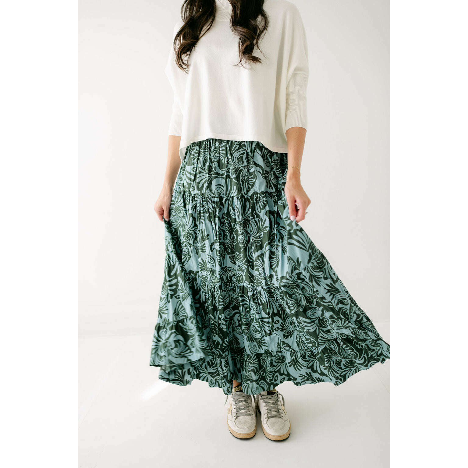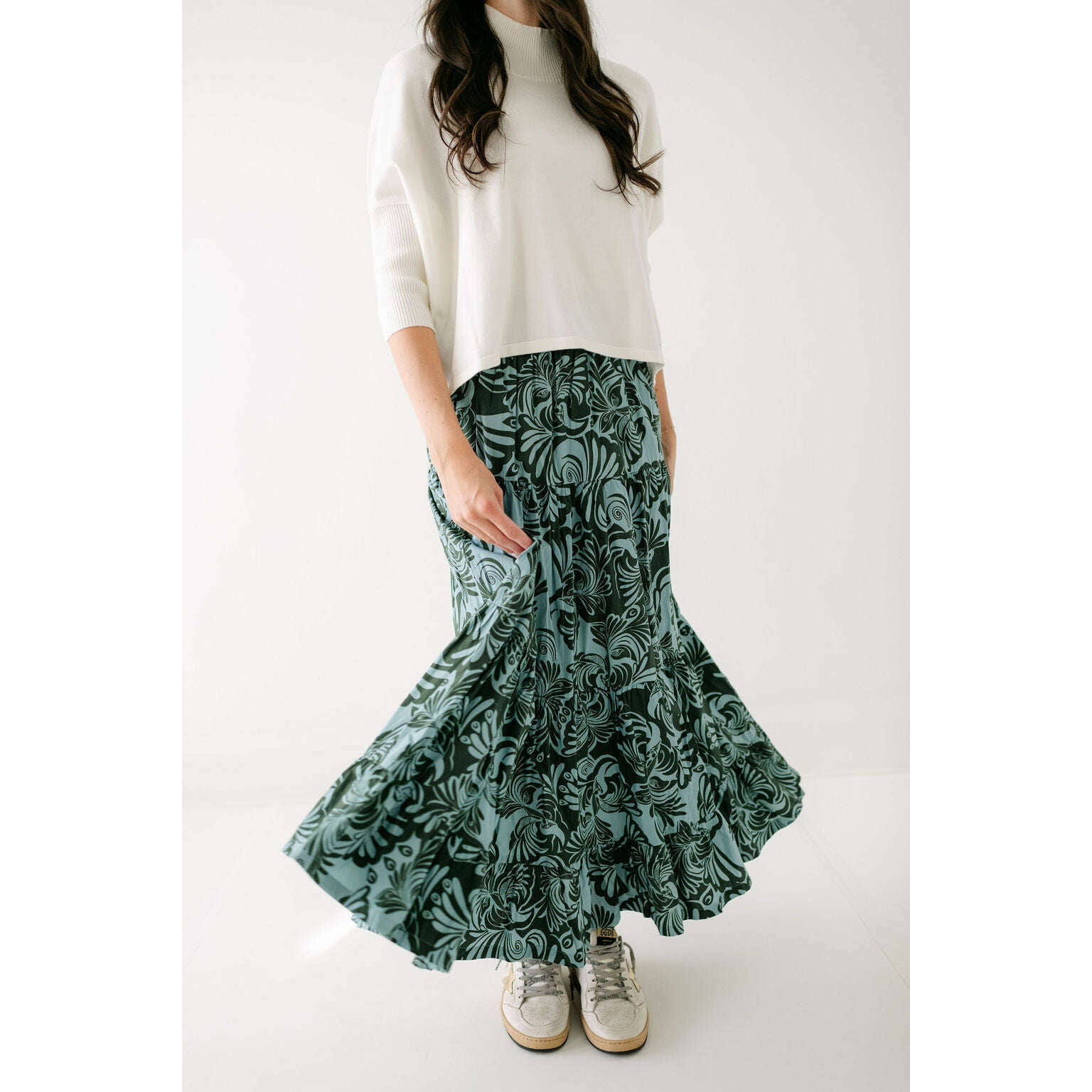 The Briton Court Savannah Skirt features a beautiful blue and green pattern that adds a lively pop to any outfit. Its long, flowing design offers graceful movement, perfect for layering up with sweaters or dressing down with a simple tee. This skirt brings a chic yet playful vibe to your wardrobe, ready to brighten up any day or evening look.