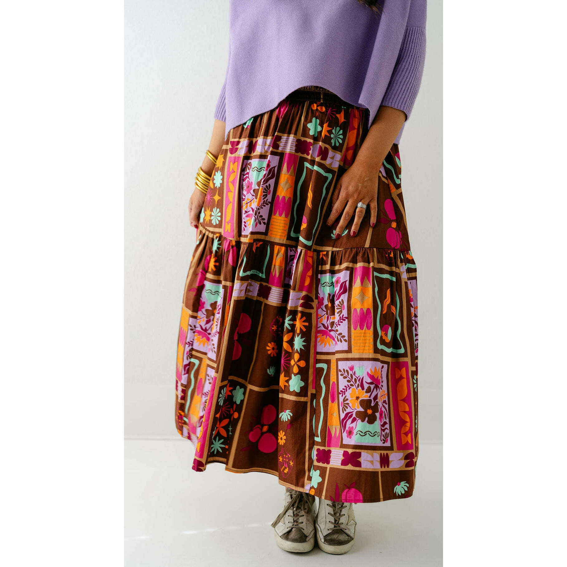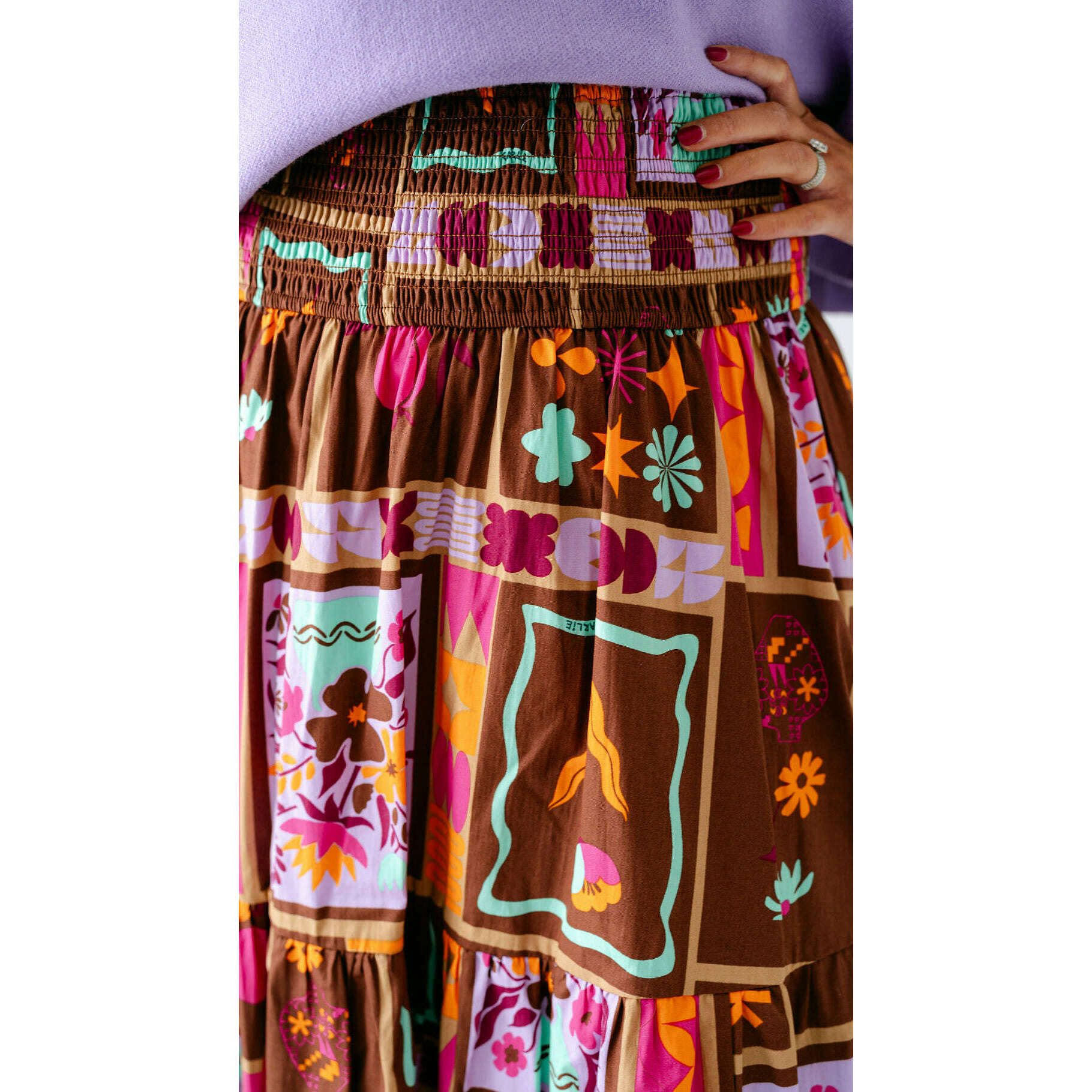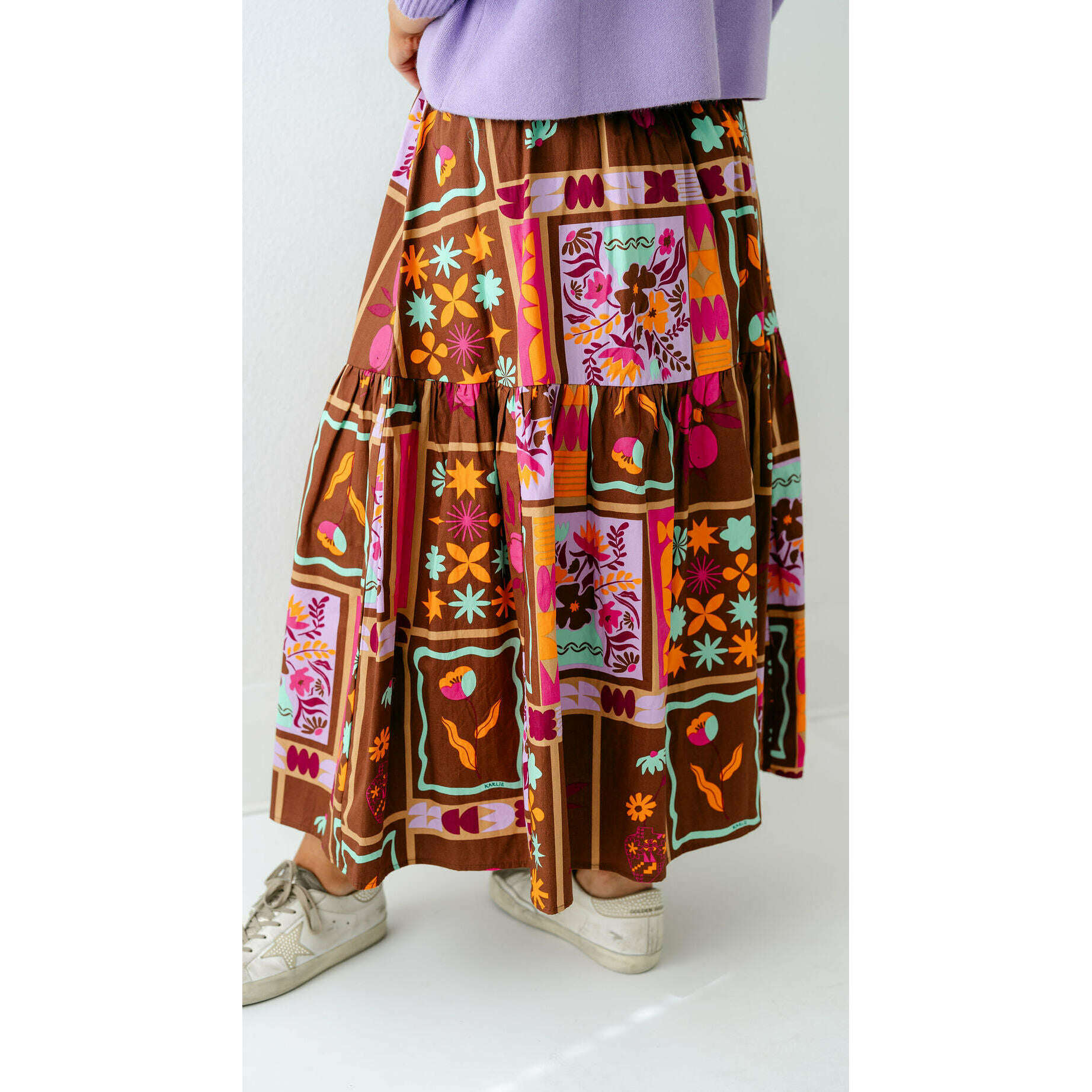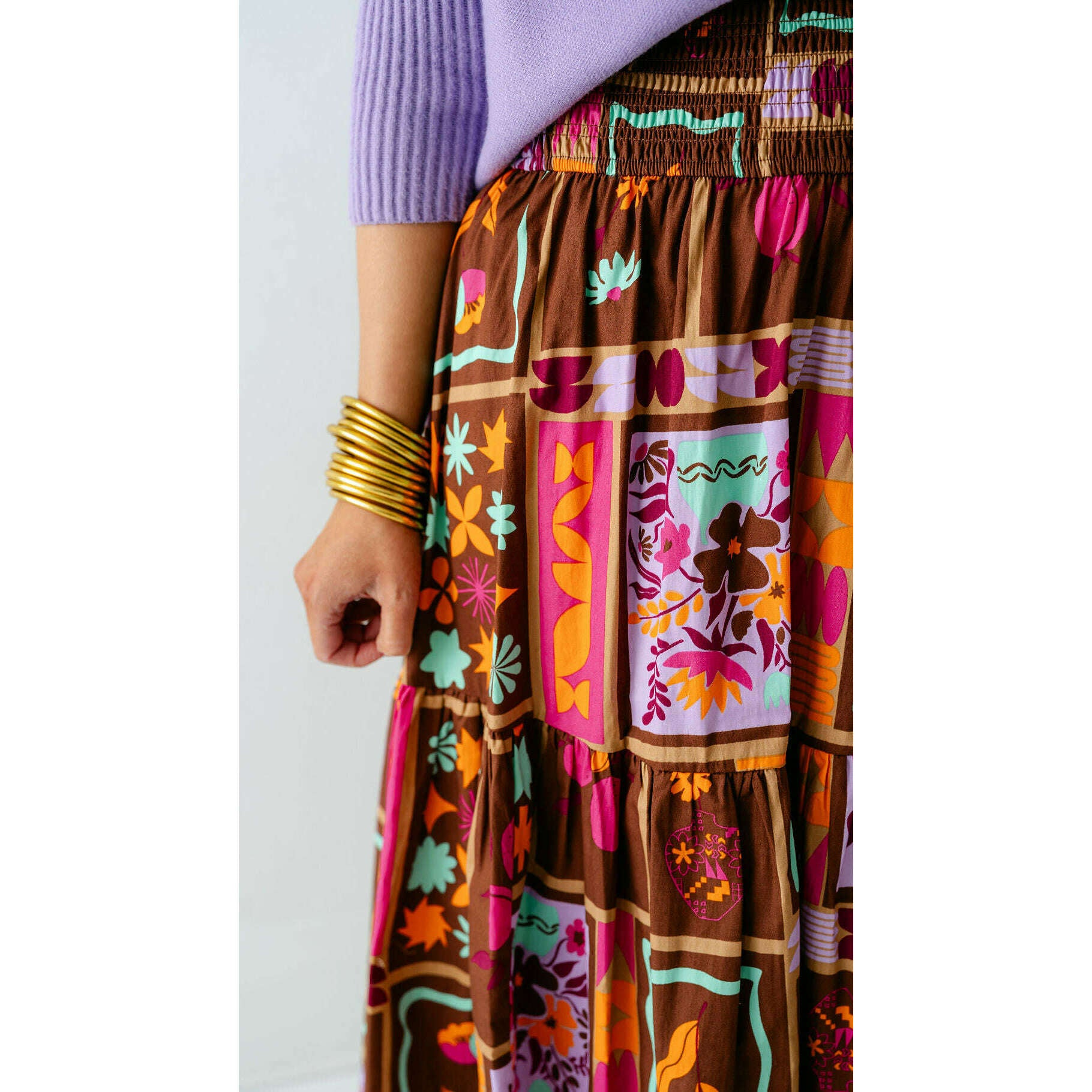 Karlie Brown Floral Frame Tiered Smocked Maxi Skirt