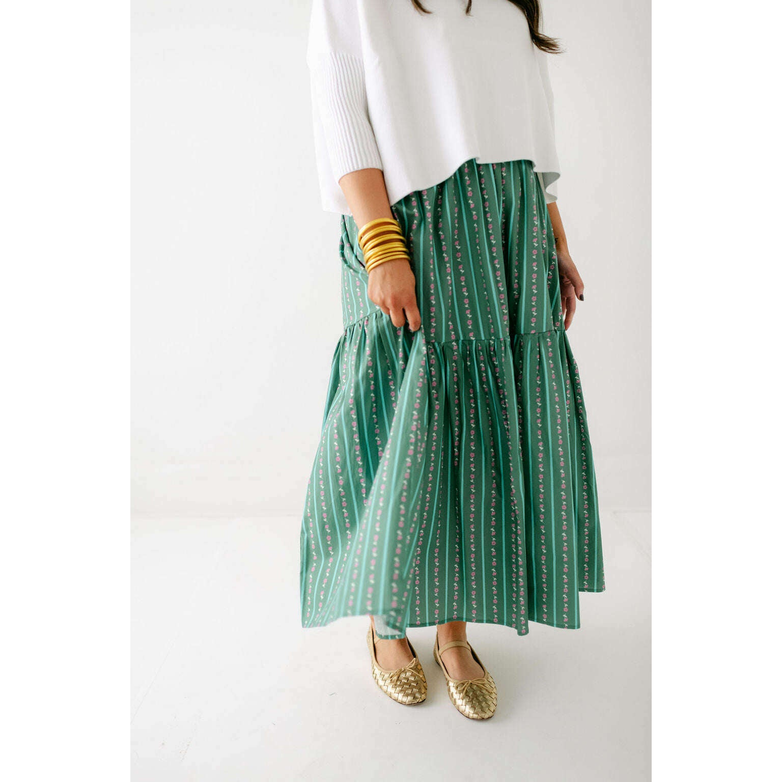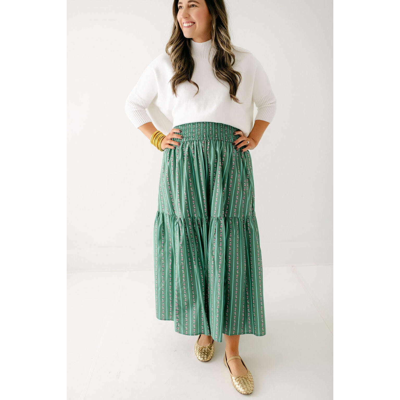 Karlie Floral Stripe Tiered Smocked Maxi Skirt