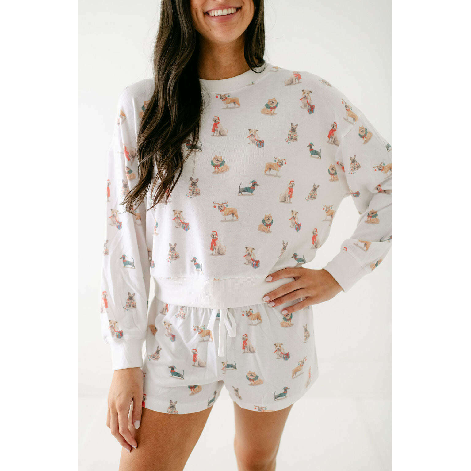 Made in Z-Supply's signature brushed sweater knit, this relaxed short is soft, cozy, and easy to wear from morning to movie night. A festive pup print and drawstring waistband add a fun touch to your everyday lounge lineup.
