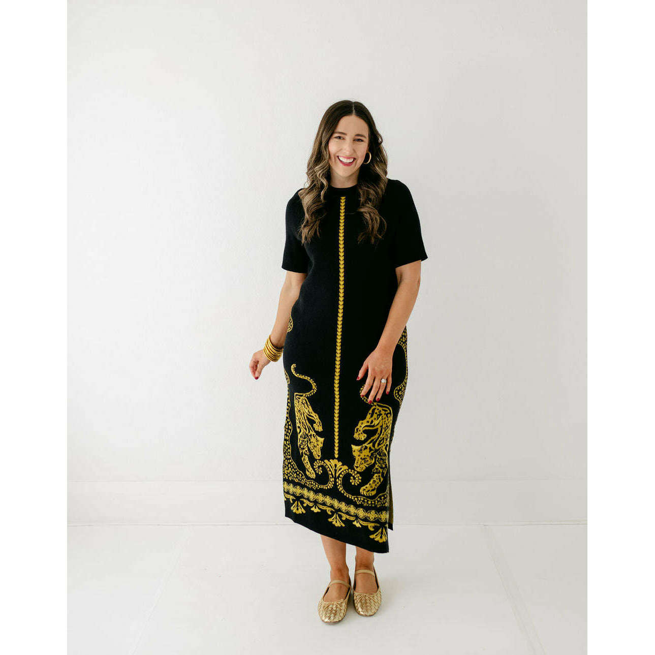 Introducing our Alden Adair Scout dress in Pouncing Panther! This long sweater dress will be sure to keep you warm all fall. Pair it with your favorite boots to complete the look.