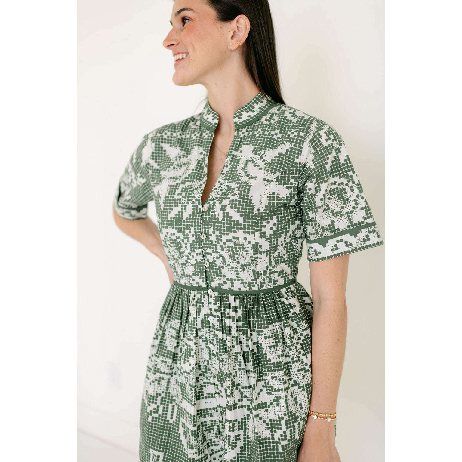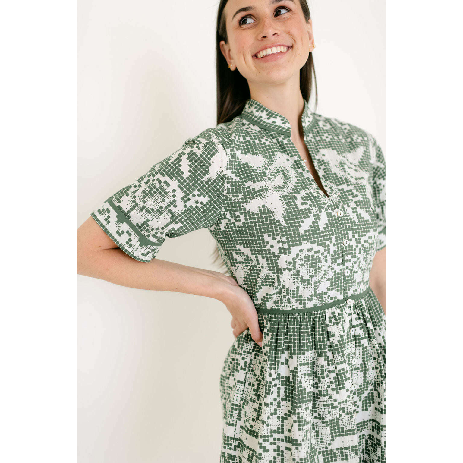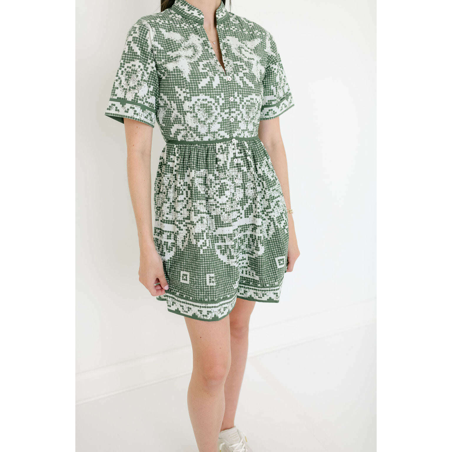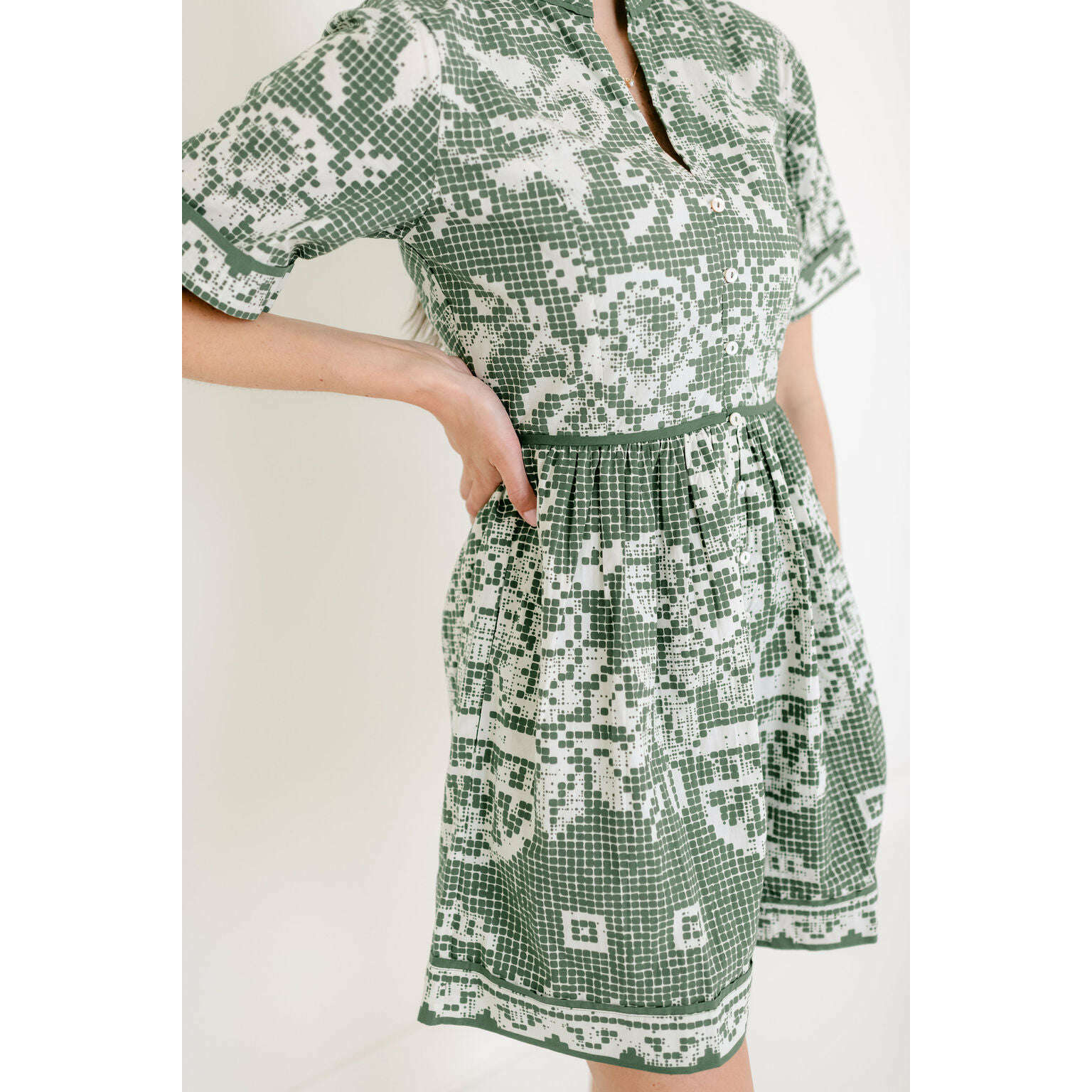 Crafted from 100% GOTS-certified organic cotton poplin, the Cleobella Starling Mini Dress is an elevated essential for the season ahead. Designed with a flattering fit and flare silhouette, it features delicate button detailing down the front and a side seam zipper for a clean, easy fit. Finished in a one of a kind print, this mini feels grounded, feminine, and made for spring days spent outdoors.