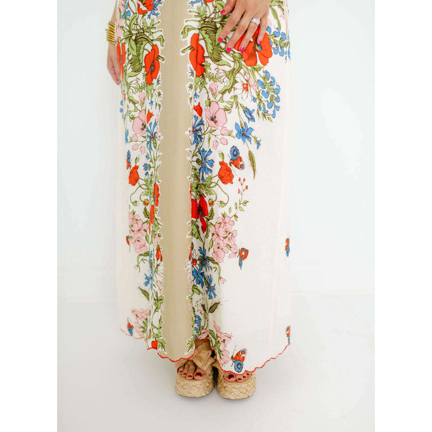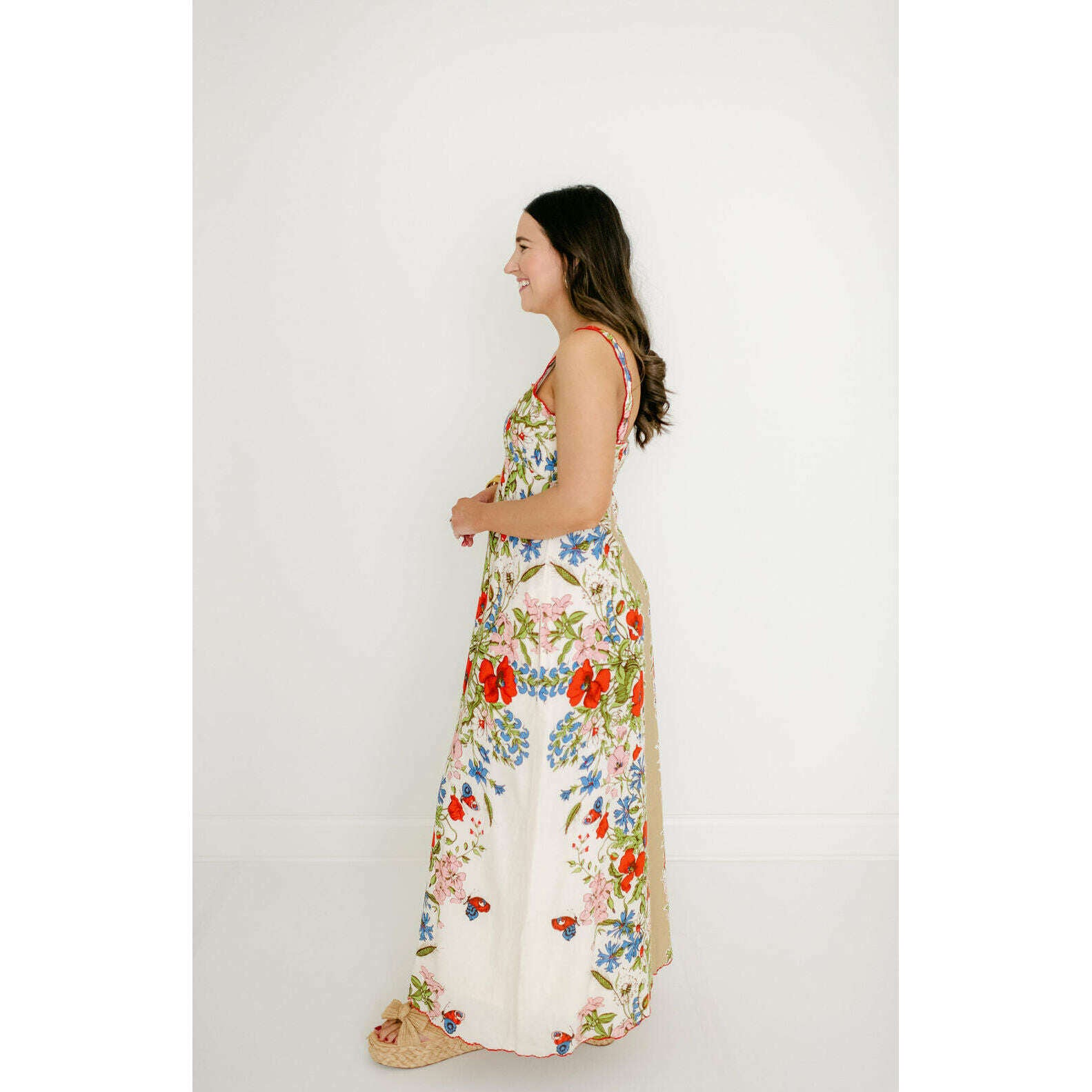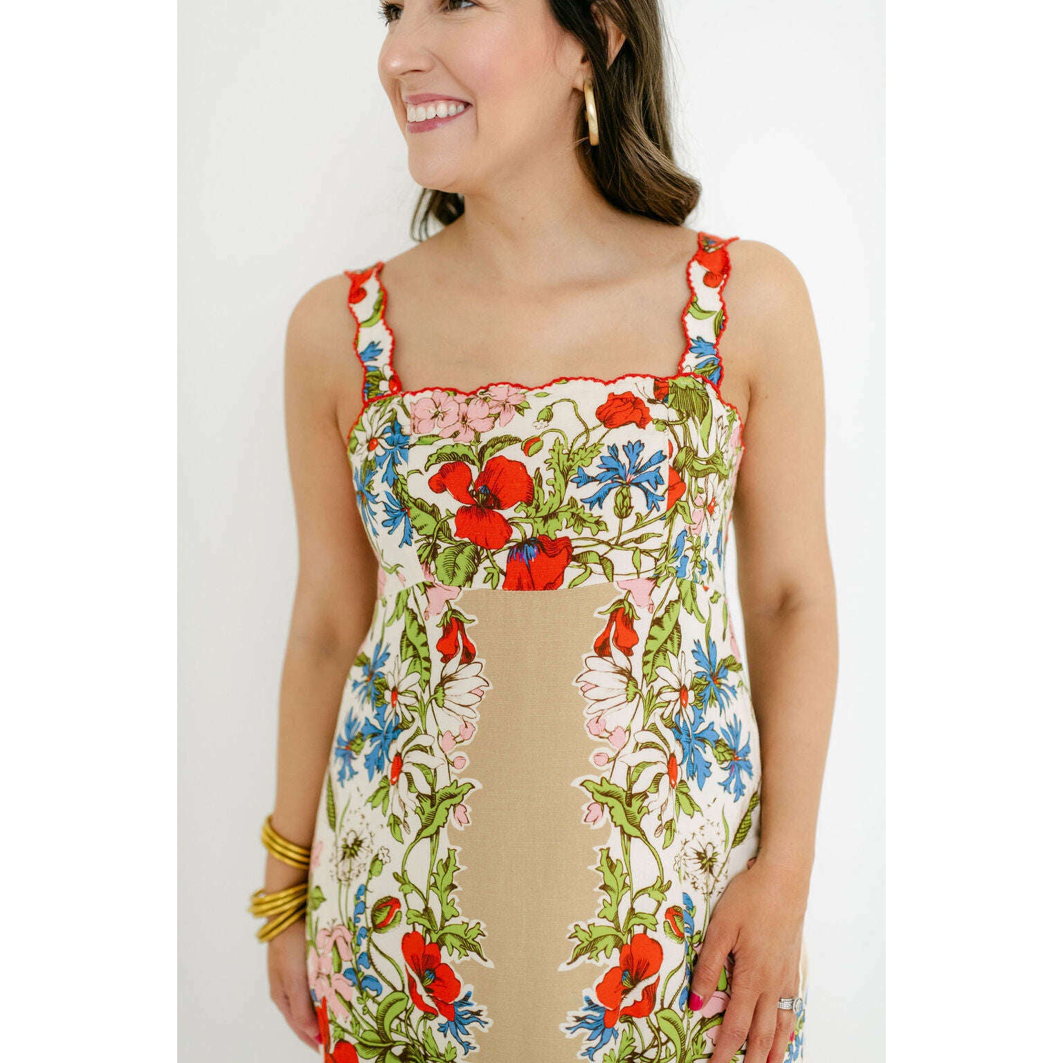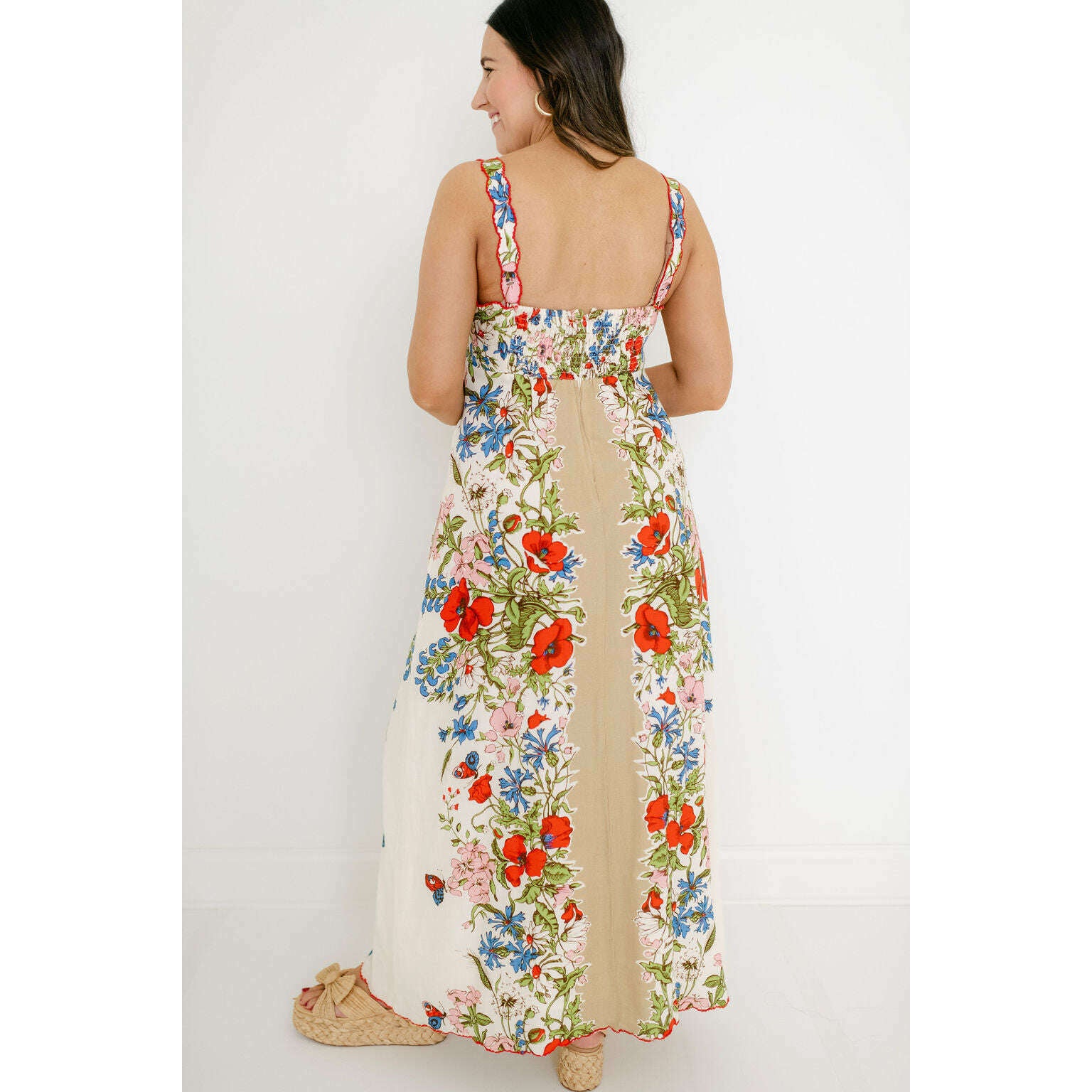 With her fitted empire bodice and flattering paneled skirt, Annalisa is a favorite silhouette all year long. She looks especially chic in this stunning Butterfly Garden print, elevated with delicate embroidery trim. Adjustable straps and a smocked back offer a comfortable fit for the perfect midi dress.