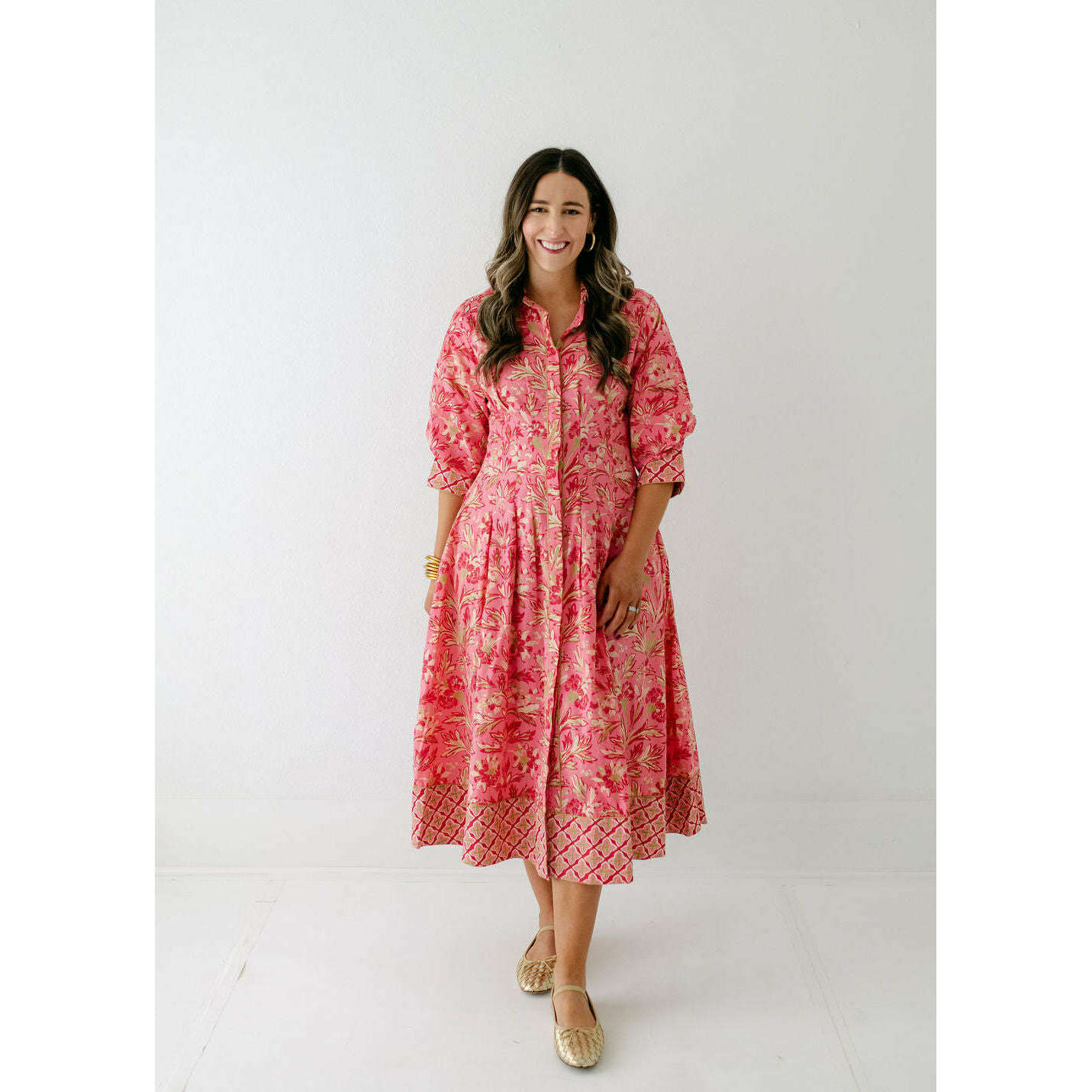 The Elizabeth James Carter is a new silhouette this Fall, perfect for dressing up or down with your favorite boots. We love her stitched down pleated waist and her unique cropped sleeves, with a gathered puff and button cuffs.