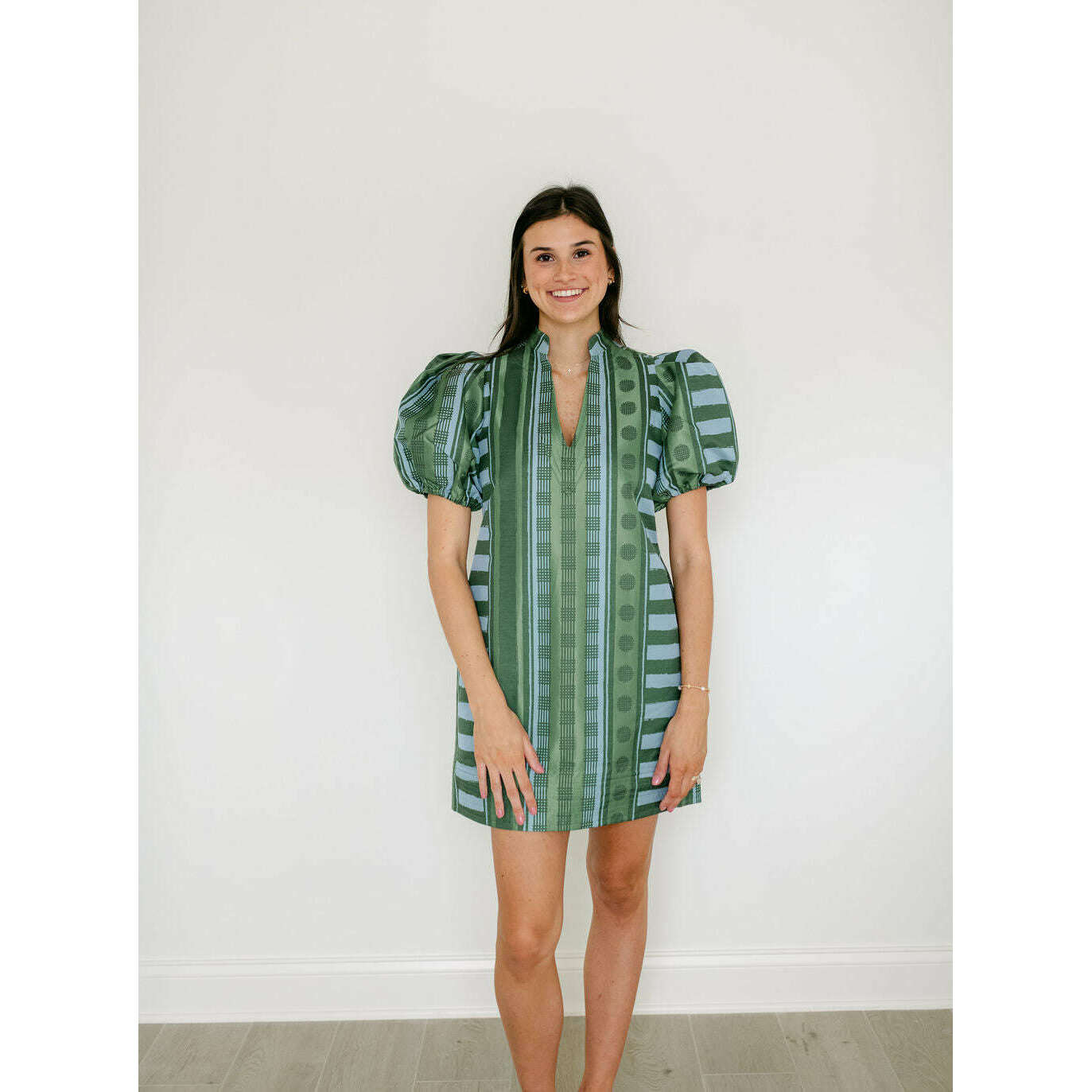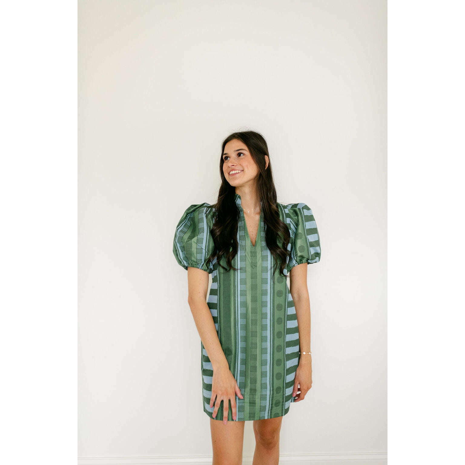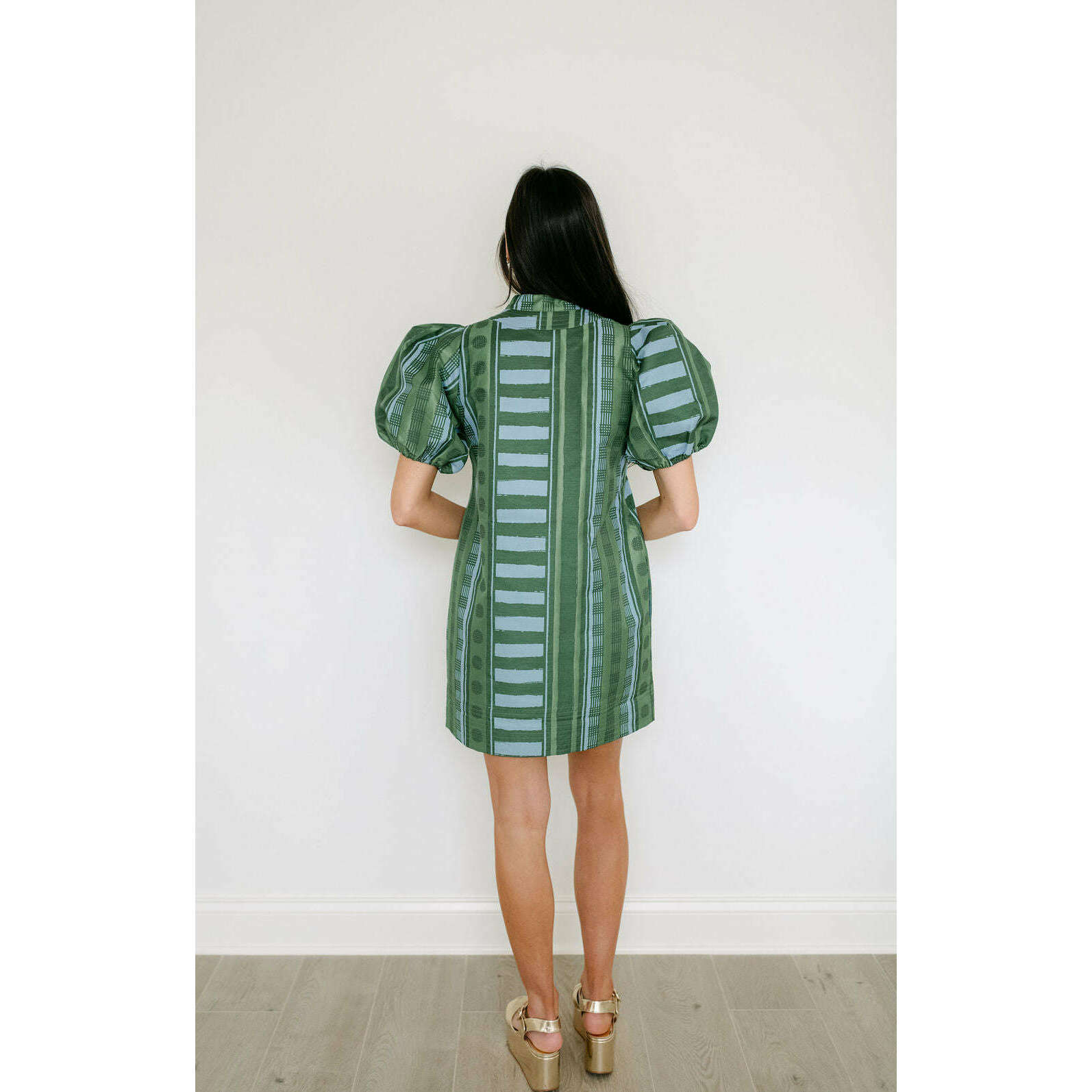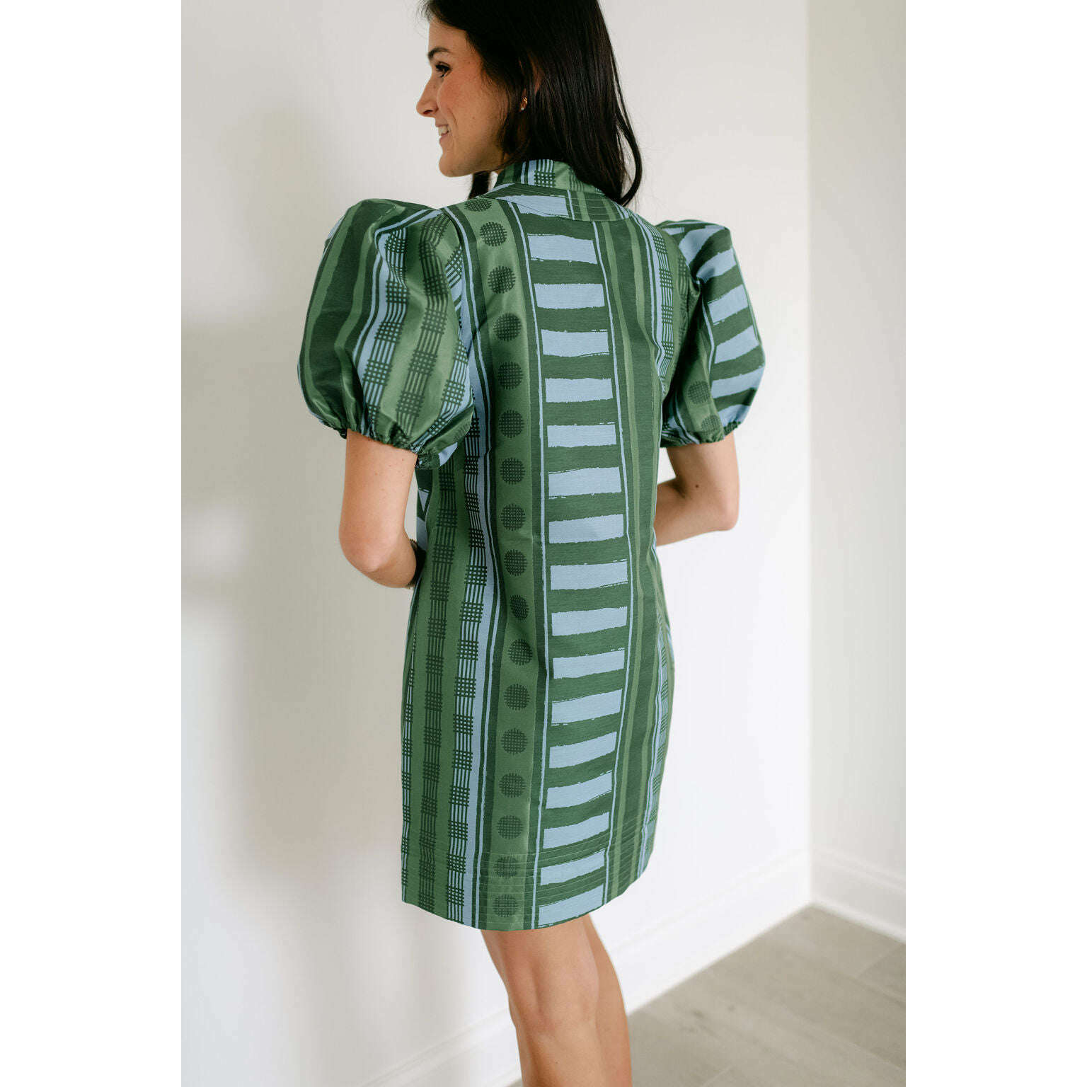 The Emily McCarthy Hampton Mini in Forest Jubilee is an effortless statement with refined detail. Designed with a mandarin-style collar, puff sleeves, and functional side pockets, this silhouette feels relaxed yet thoughtfully tailored for a flattering fit. Printed on a luxe jacquard fabric, Forest Jubilee offers soft structure and subtle sheen, elevating the look. Easy to dress up with heels or style casually with sneakers, this mini is versatile and polished with ease.