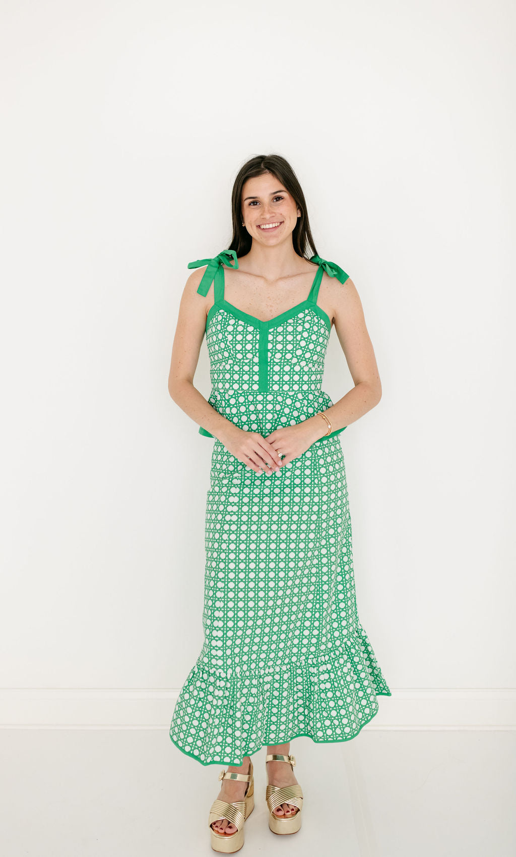 This is one versatile skirt!! Our Garland Addie Skirt offers a silhouette that is shape-flattering but not suffocating. And we just love the little flounced ruffle at the bottom with a subtle green trim detail. Made to pair with the Addie Top, the skirt creates the look of a dress when paired, but also looks incredible with your favorite button-down.