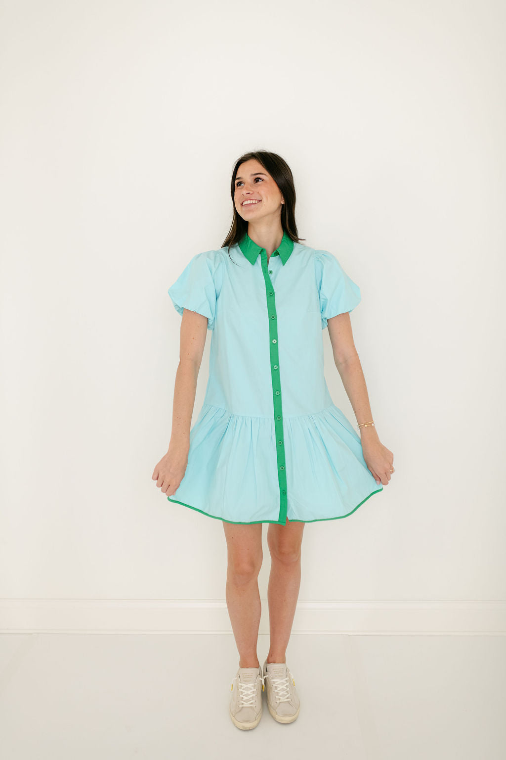 This dress just doesn't quit. Whether you wear it loose and simple, or belt it for more of an A-line look, it gets you exactly where you want to be. We love how the green accents play well with this solid blue...and it has pockets!