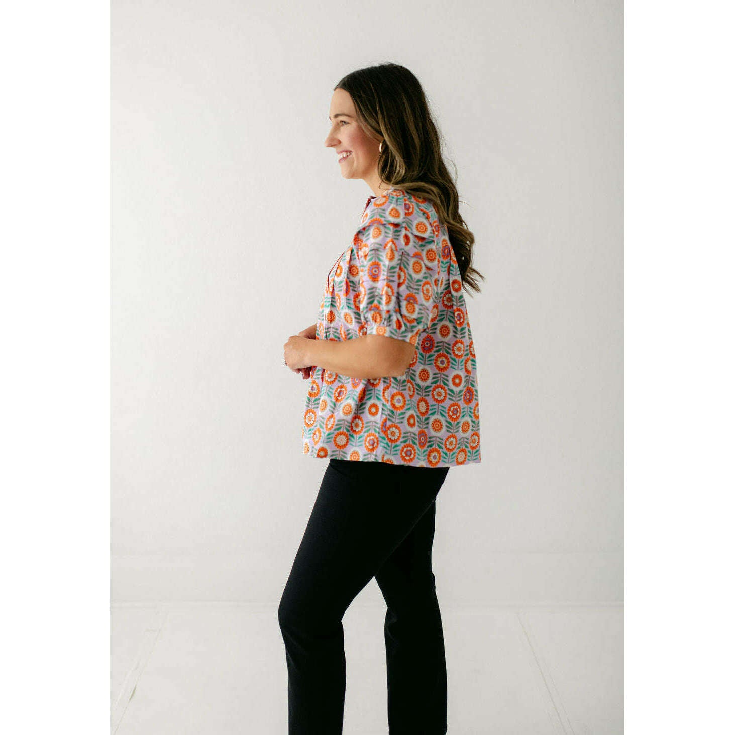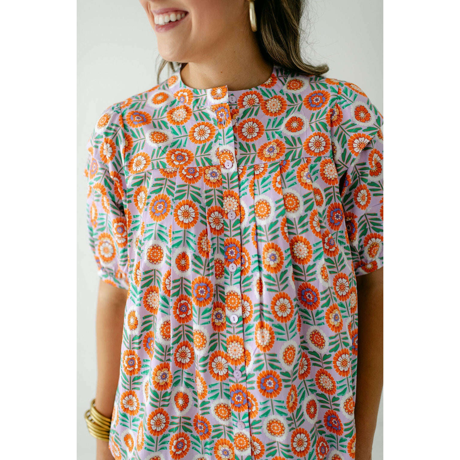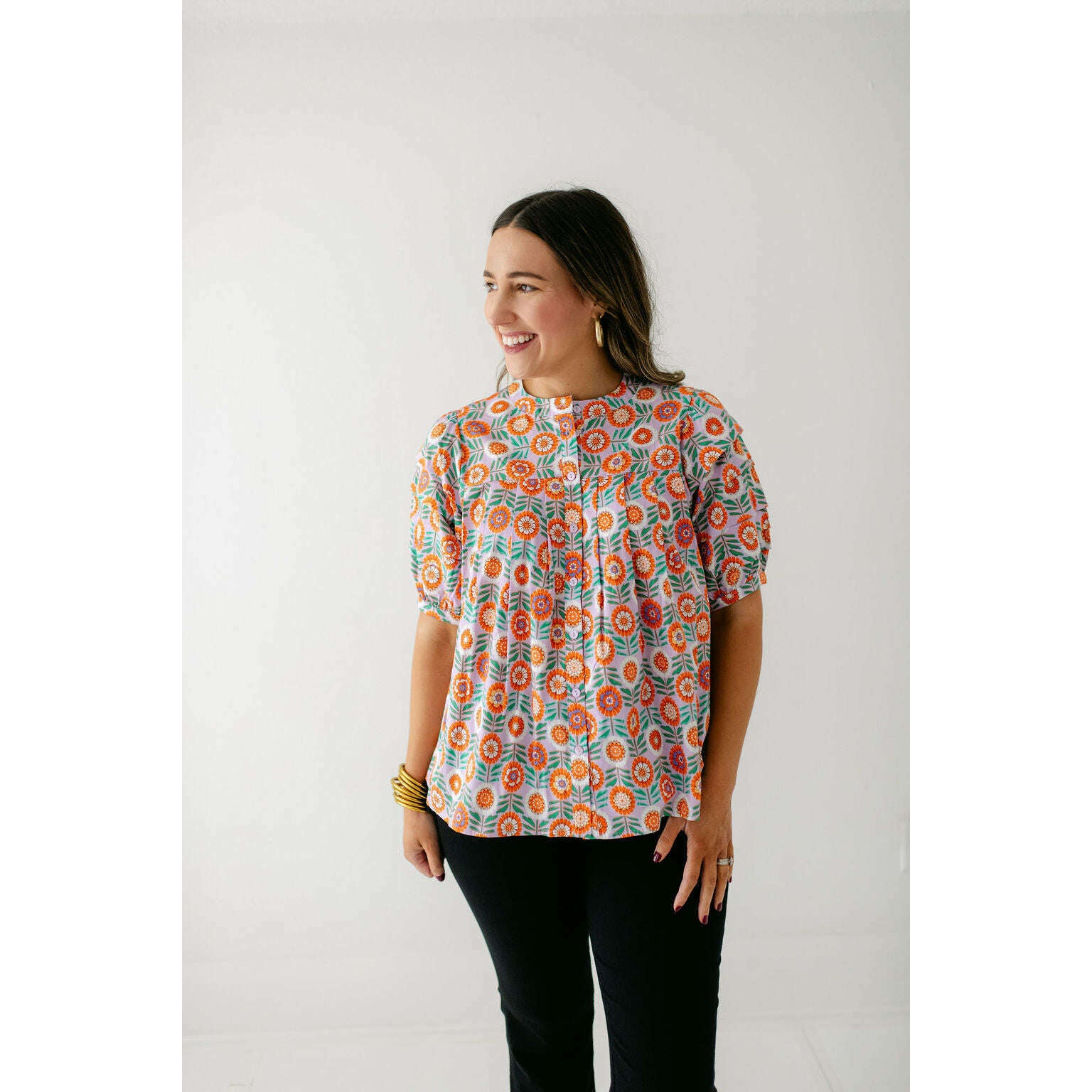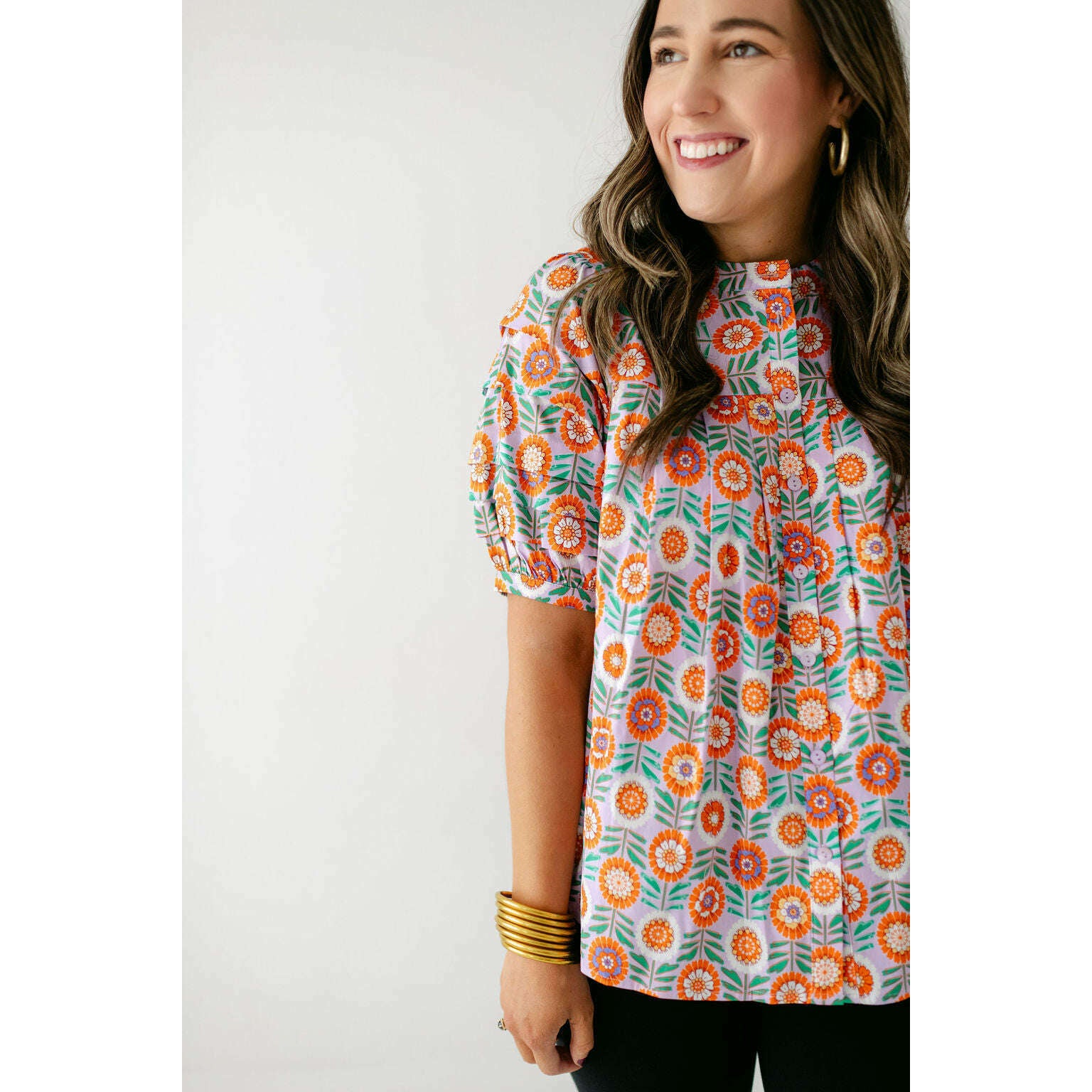 Karlie Floral Button Pleated Sleeve Top in Lavender