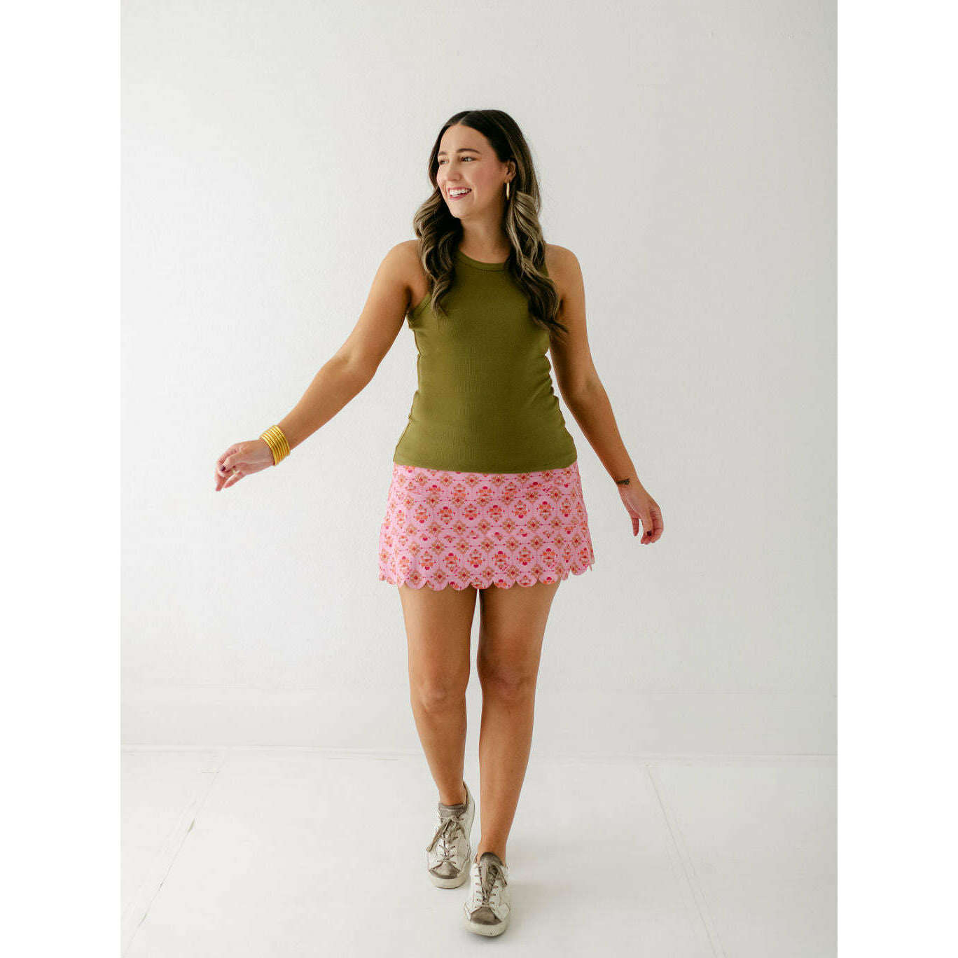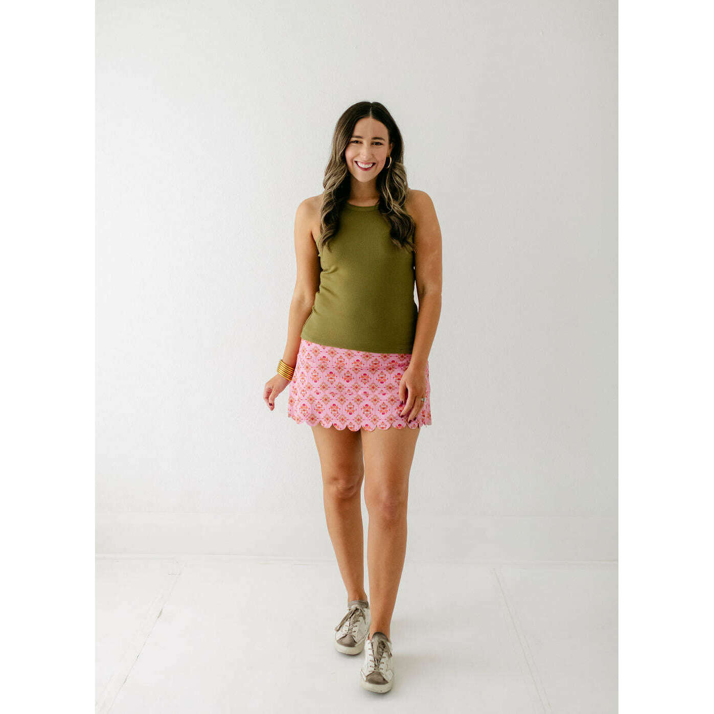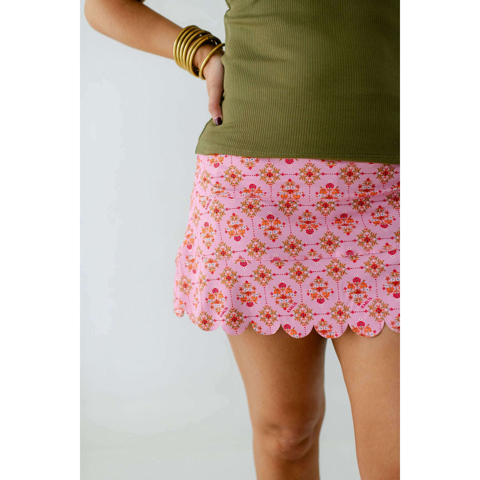 The Karlie London Floral Scallop Kourt Skort is the perfect blend of playful and chic. Its charming floral print adds a fresh, feminine touch to any outfit, while the scalloped hem offers a unique, flattering detail. Lightweight and versatile, it pairs beautifully with the Karlie Olive Tank for a complete, stylish look that's ready for any occasion. Elevate your wardrobe with this effortlessly cute skort that brings comfort and style together.
