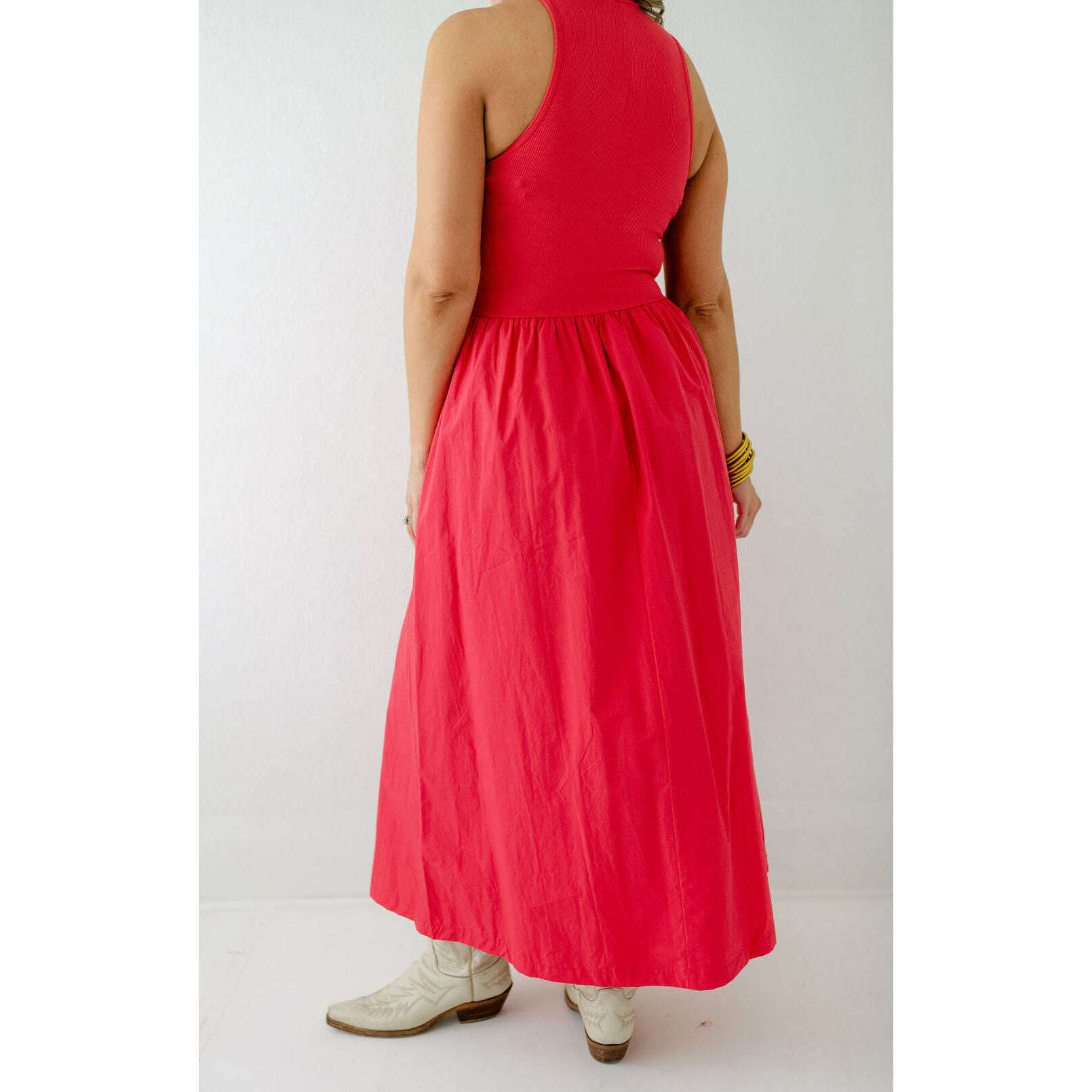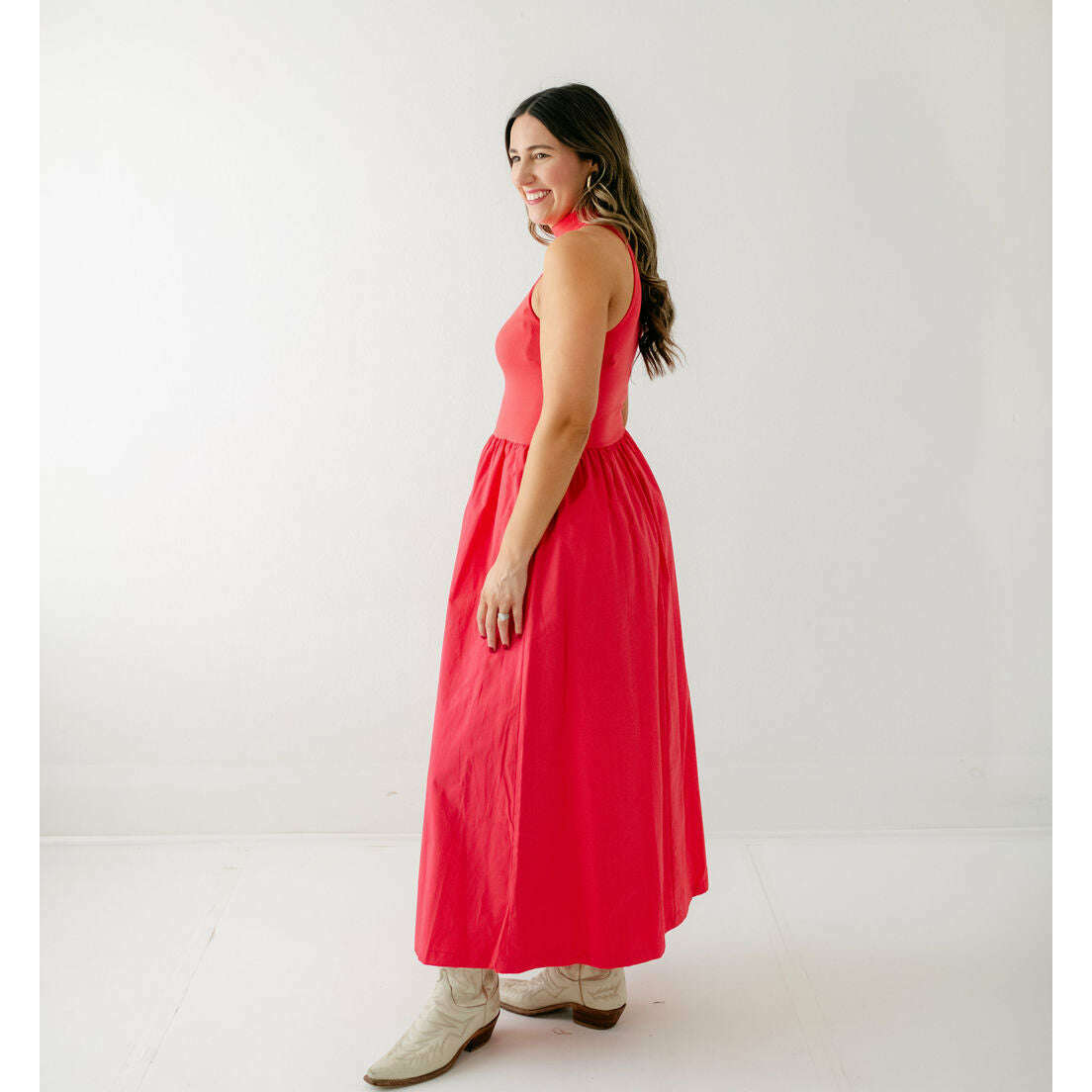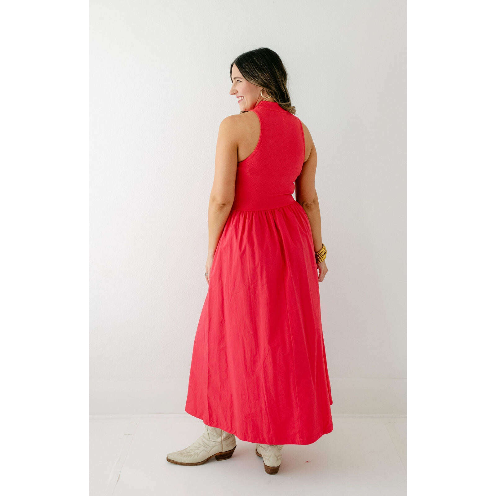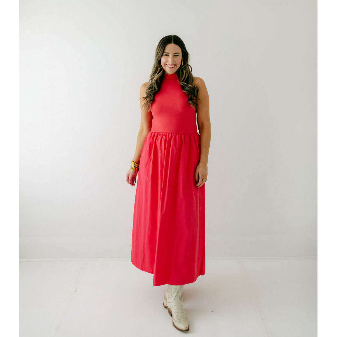 Karlie Solid Mock Neck Maxi Dress in Red
