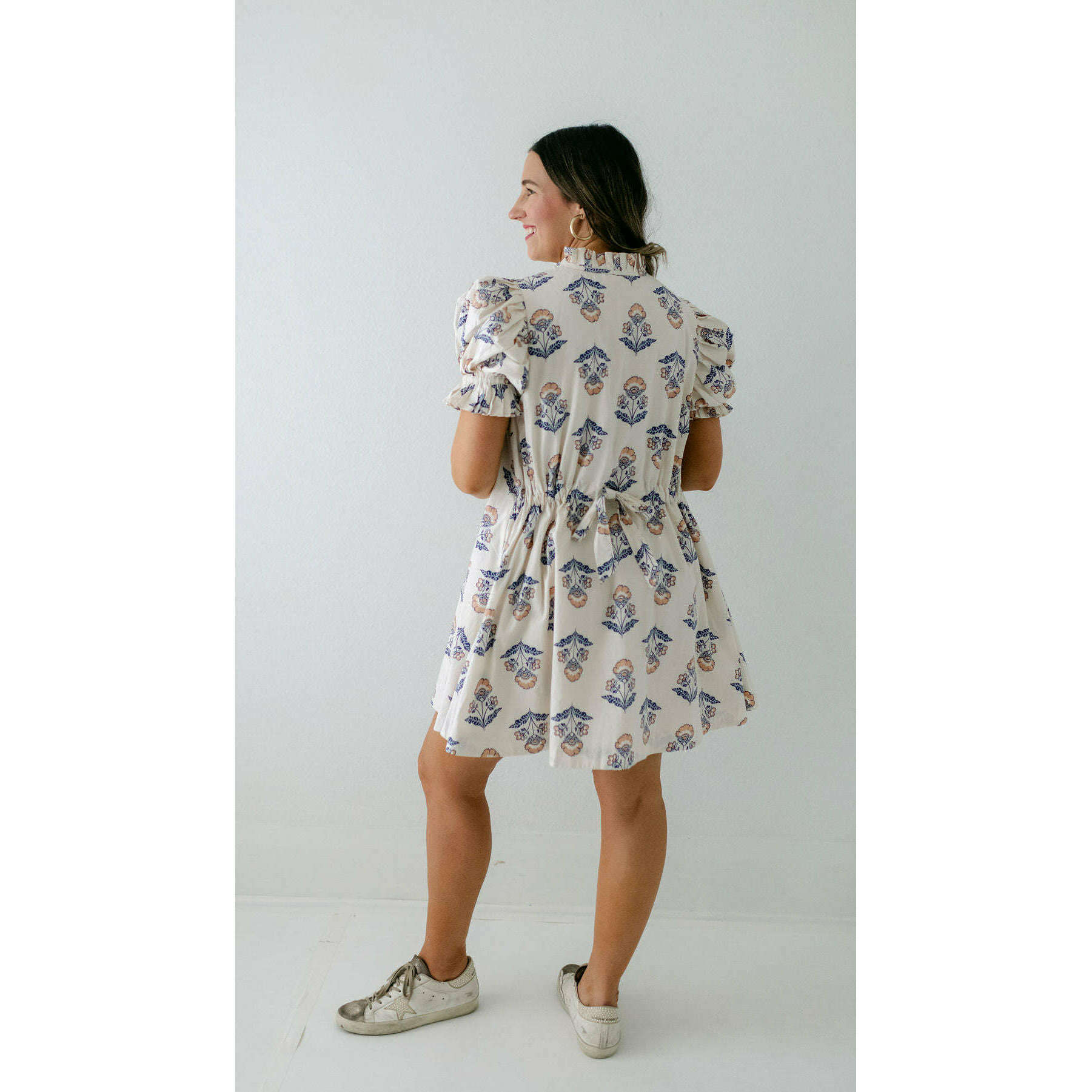 Karlie Vintage Floral Tie Back Dress in Ivory