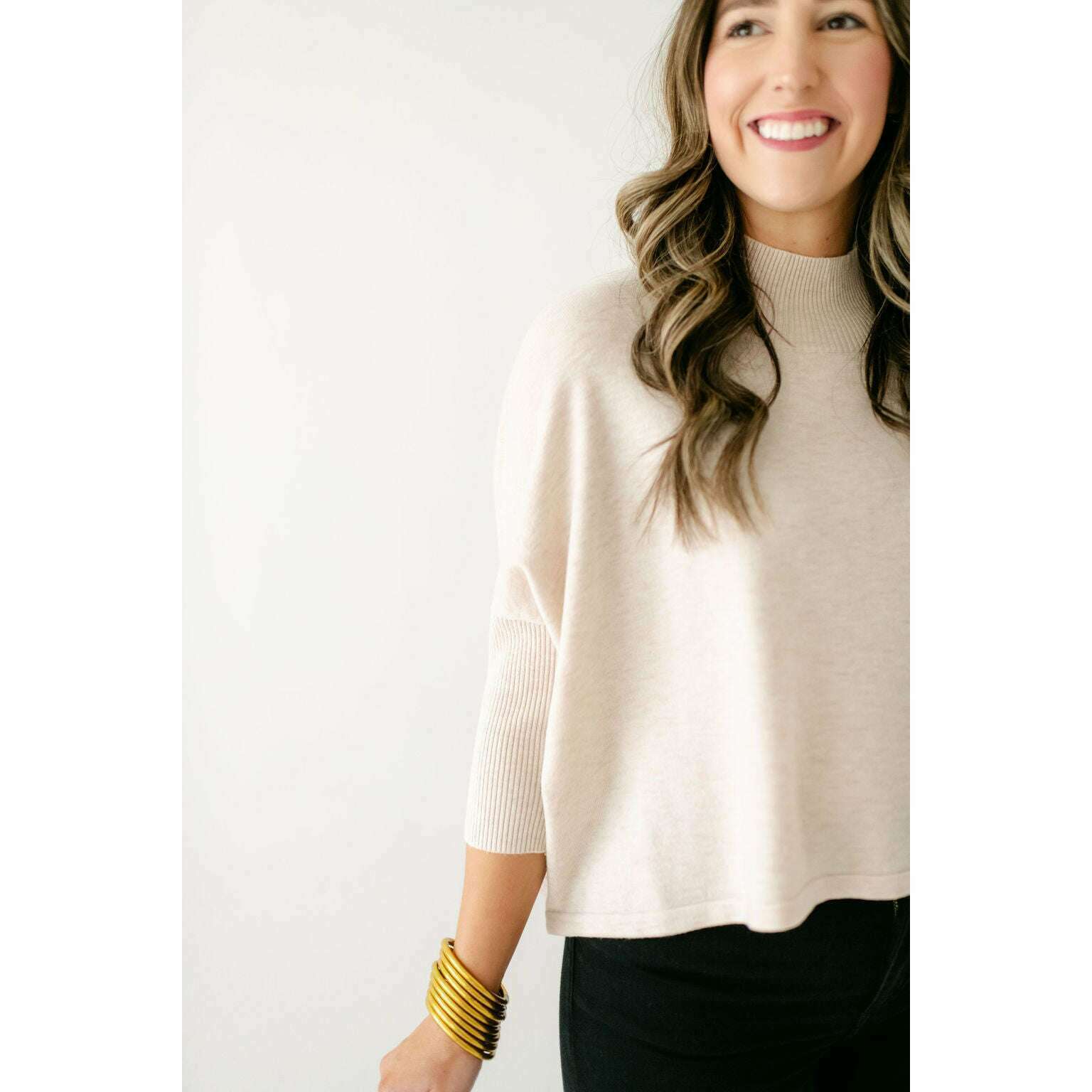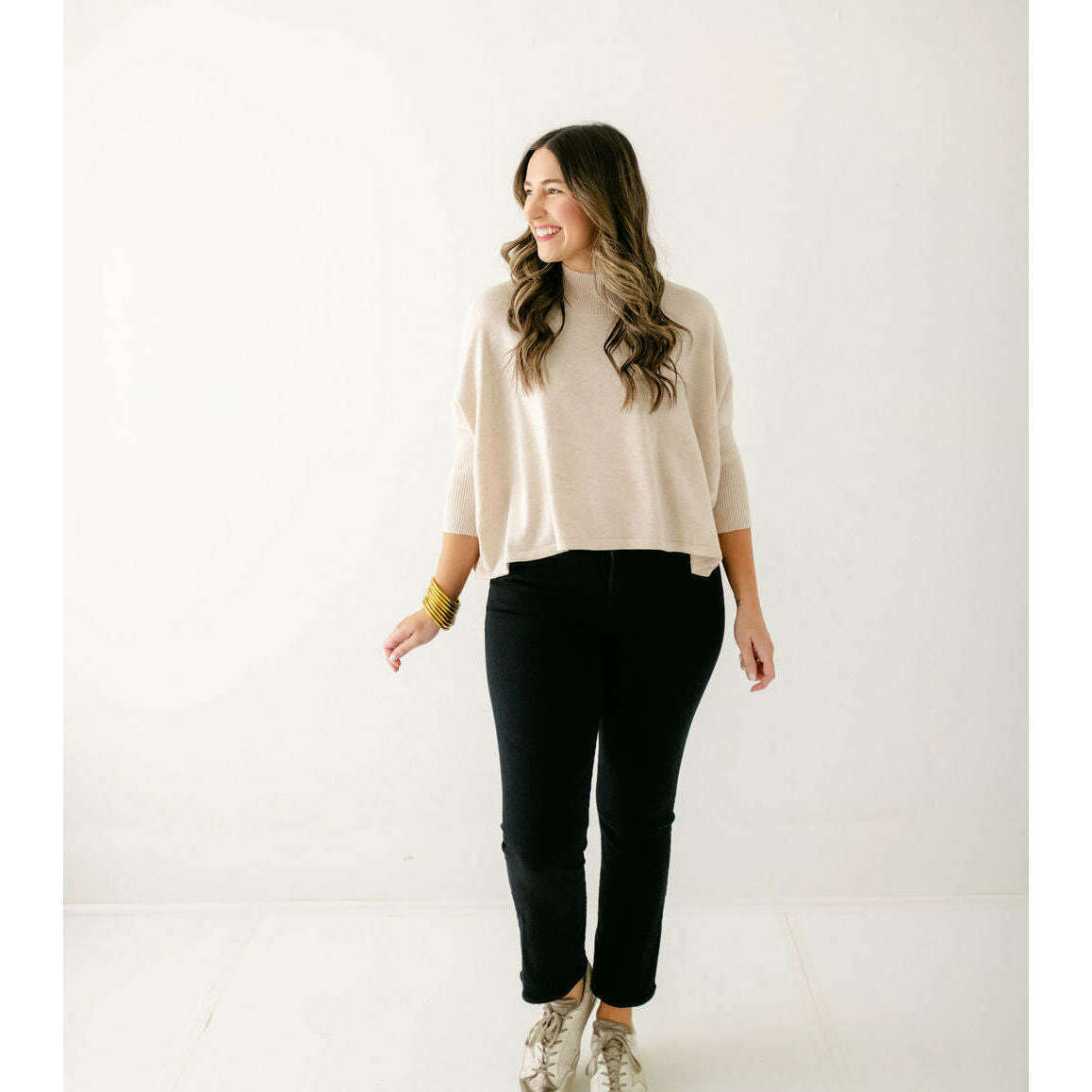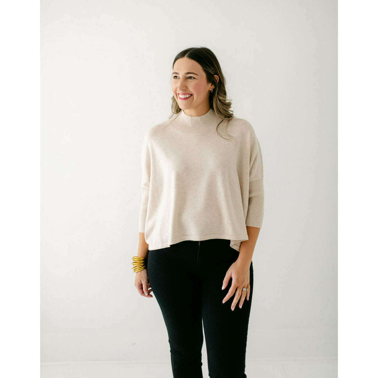 The Kerisma Knits Aja Ortho Solid Sweater in Ecru is back and better than ever. This new version is a thinner, lighter take on our most popular sweater, offering the perfect balance of comfort and style. You'll love how effortlessly it layers or stands alone, making it a must-have for the season.