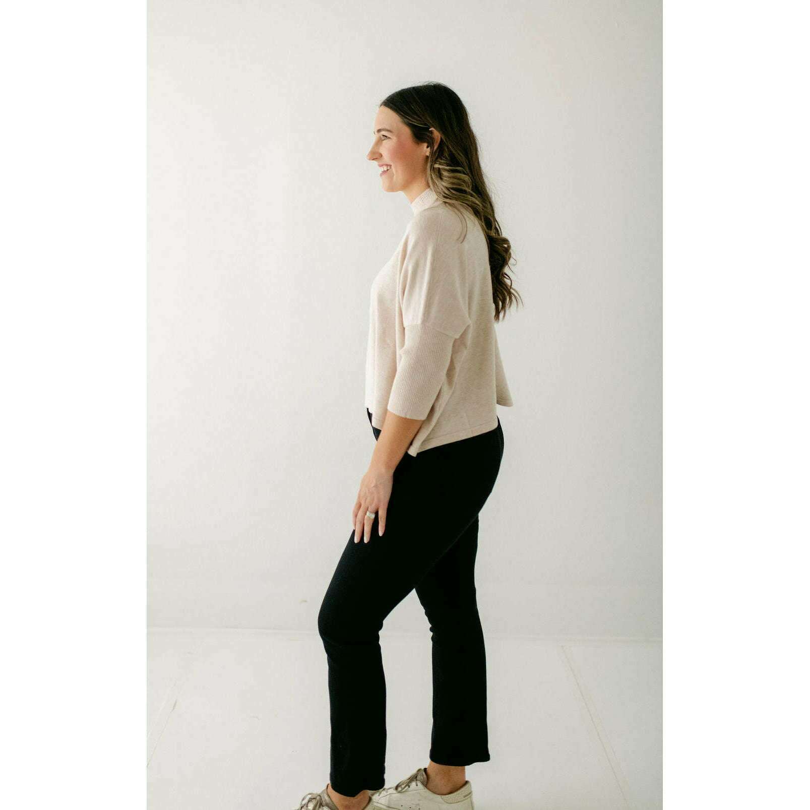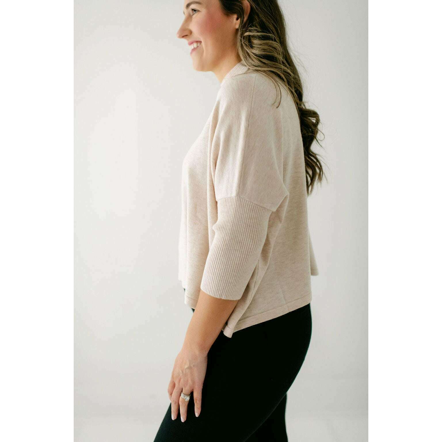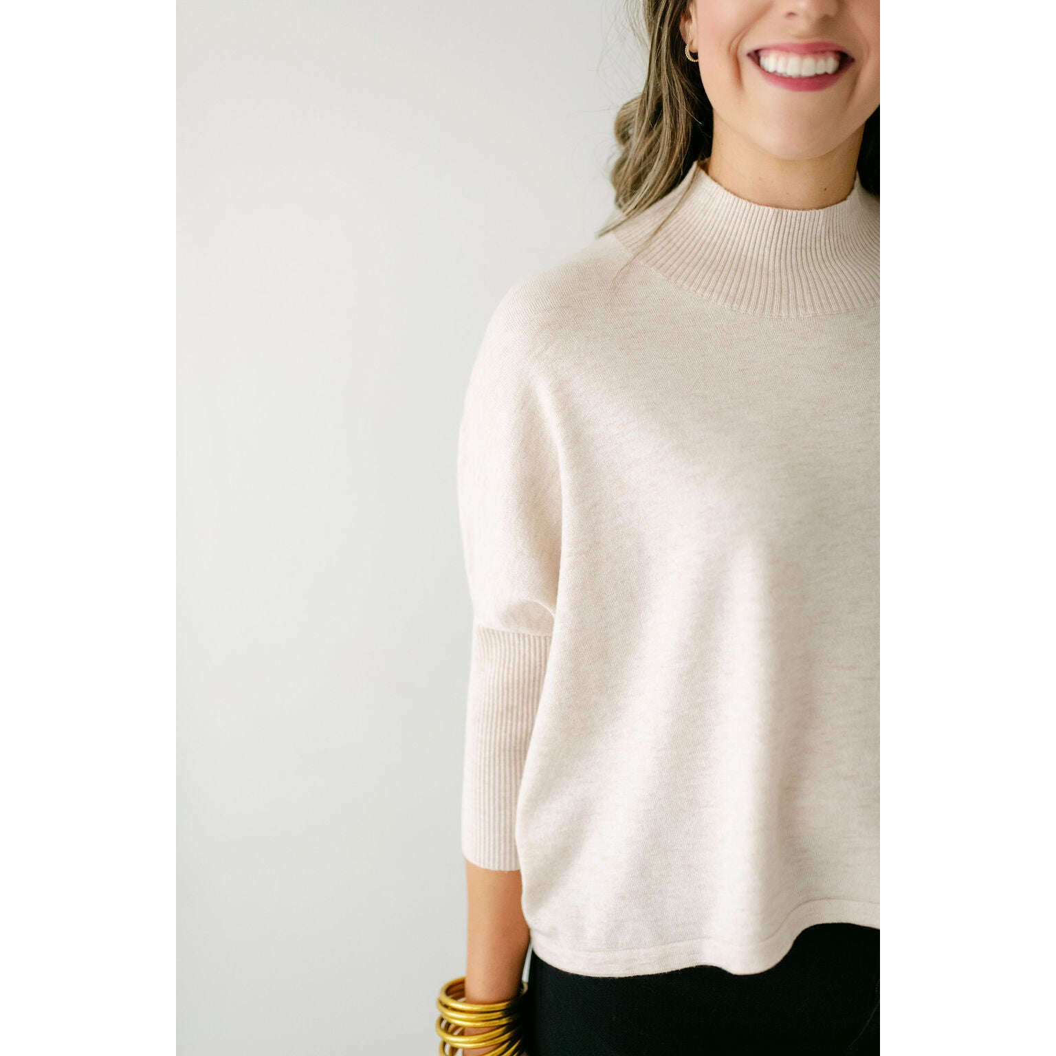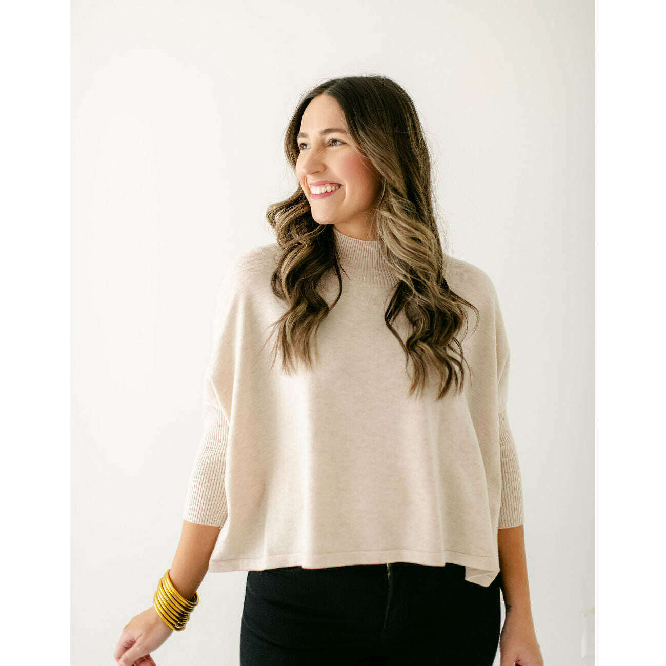 The Kerisma Knits Aja Ortho Solid Sweater in Ecru is back and better than ever. This new version is a thinner, lighter take on our most popular sweater, offering the perfect balance of comfort and style. You'll love how effortlessly it layers or stands alone, making it a must-have for the season.