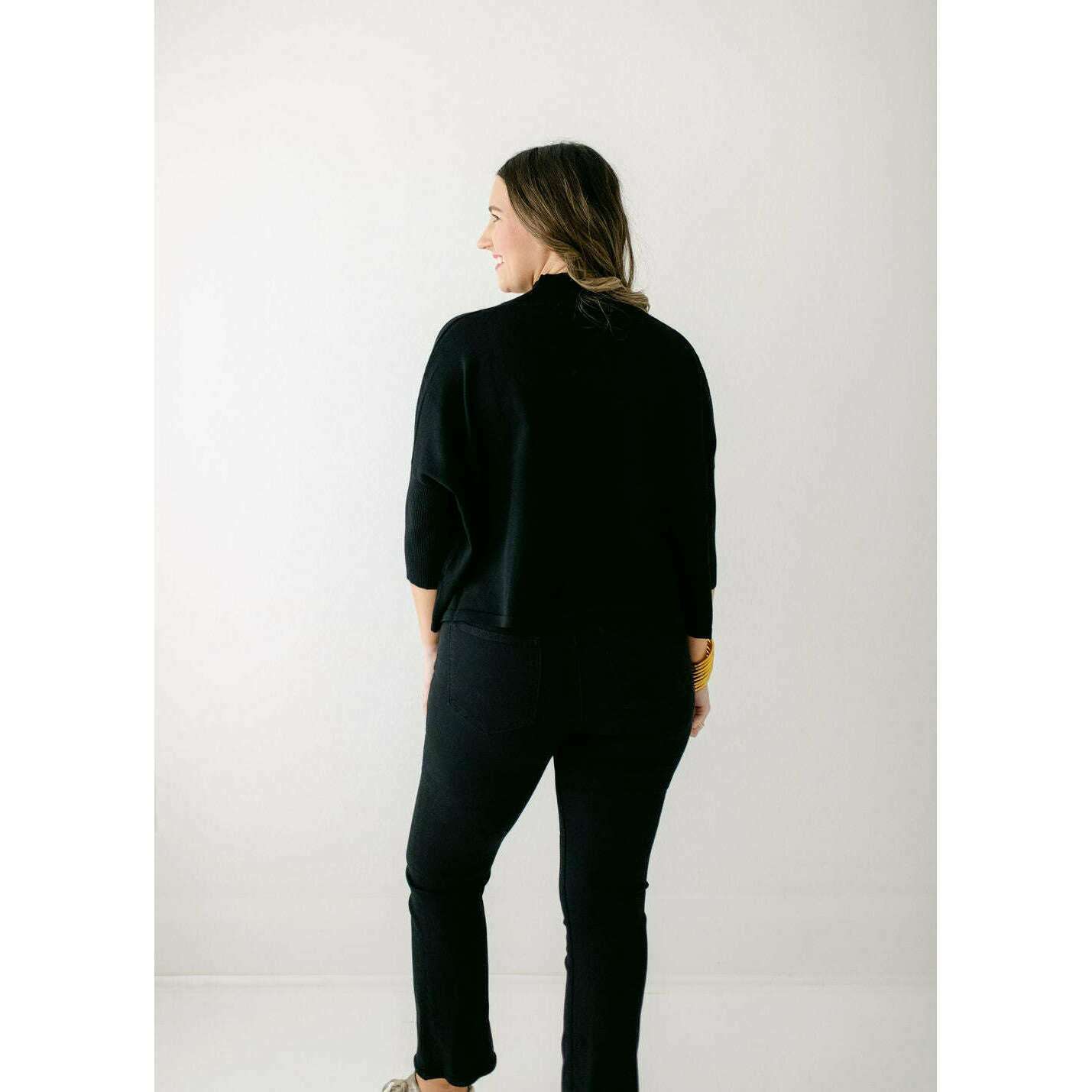 The Kerisma Knits Aja Ortho Solid Sweater in Black is back and better than ever. This new version is a thinner, lighter take on our most popular sweater, offering the perfect balance of comfort and style. You'll love how effortlessly it layers or stands alone, making it a must-have for the season.