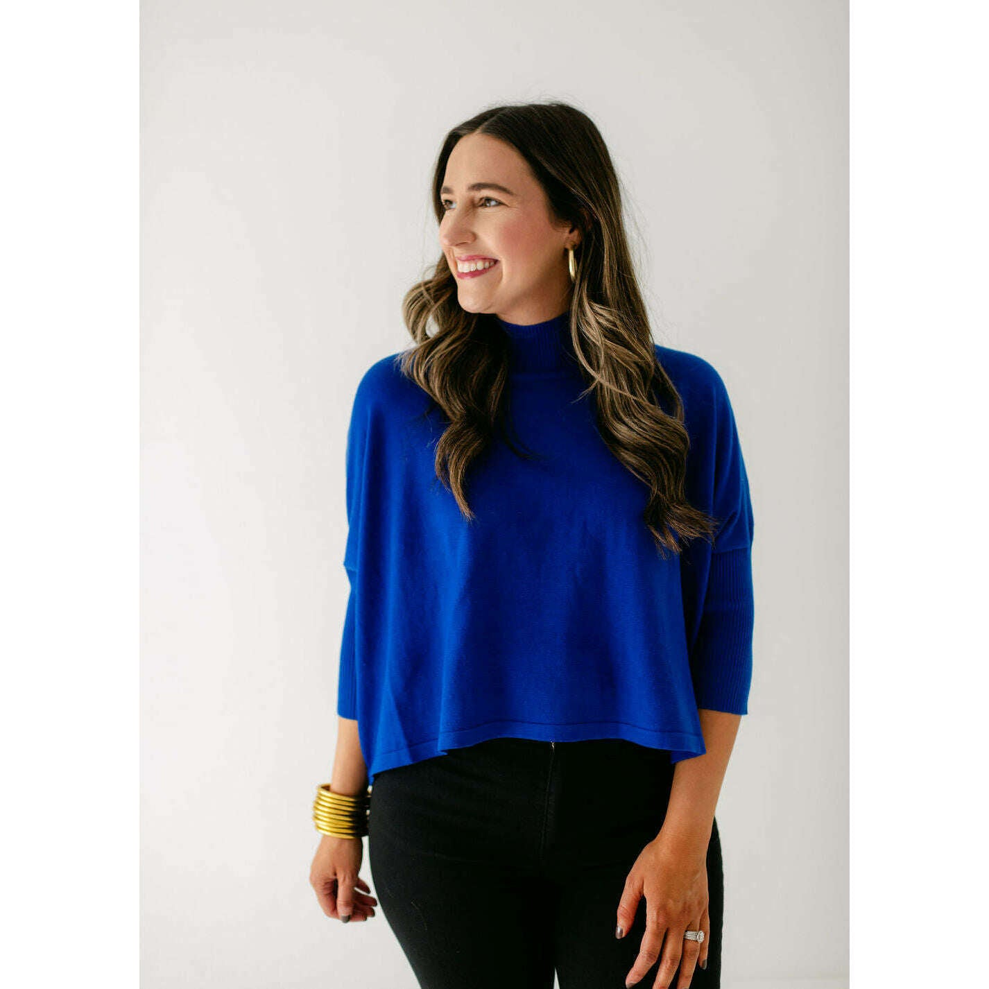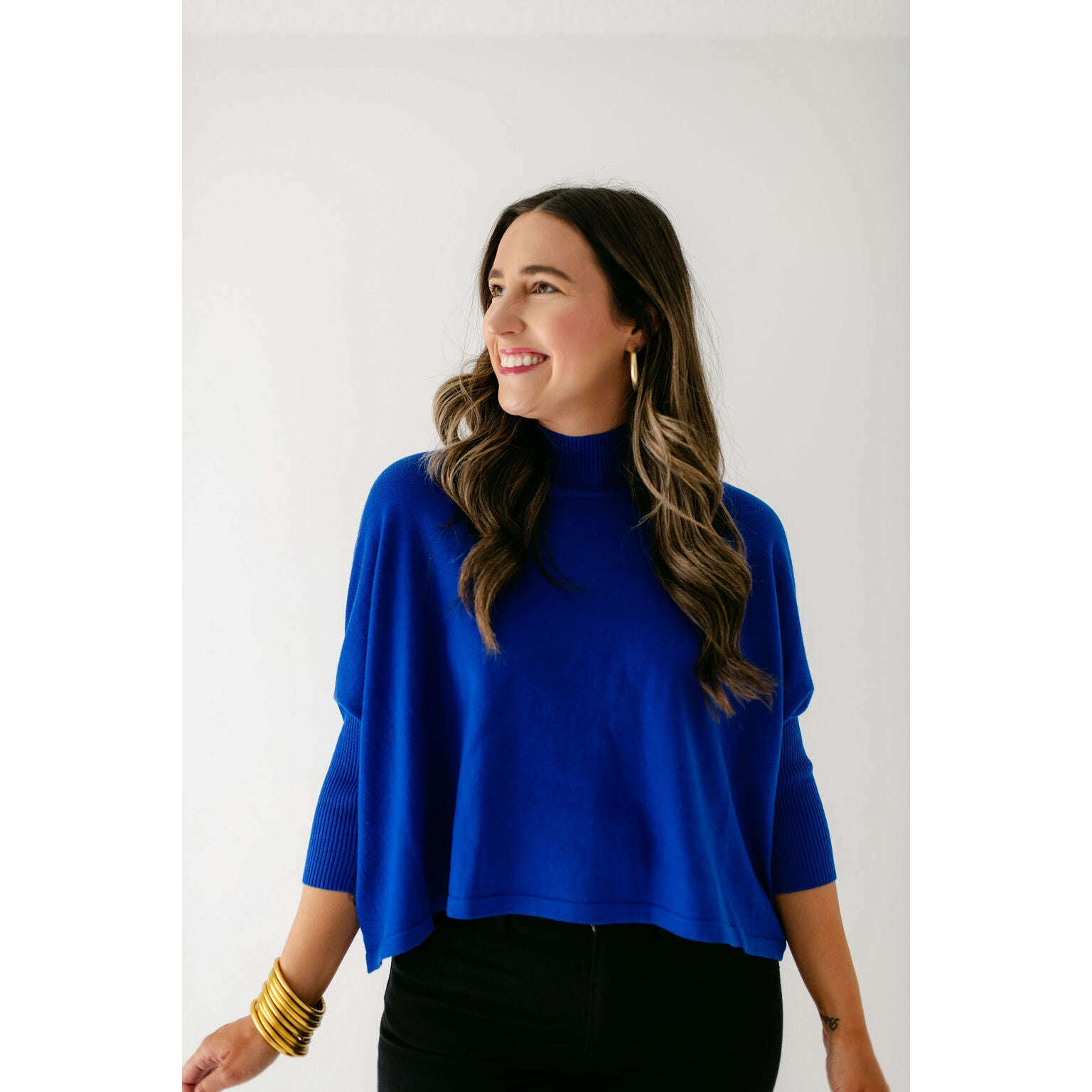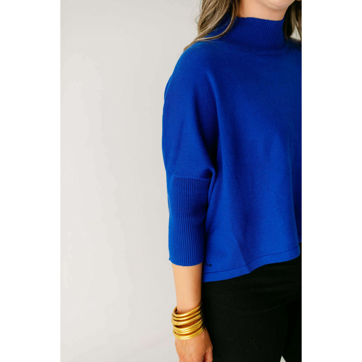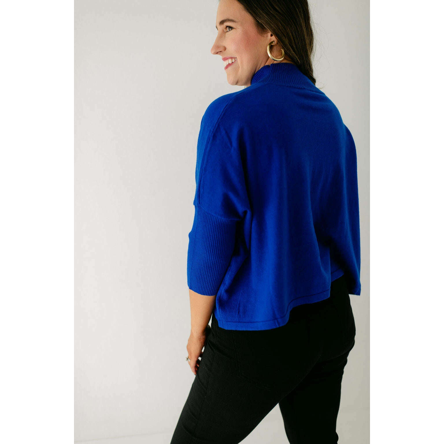 The Kerisma Knits Aja Ortho Solid Top in Royal Blue is back and better than ever. This new version is a thinner, lighter take on our most popular sweater, offering the perfect balance of comfort and style. You'll love how effortlessly it layers or stands alone, making it a must-have for the season.