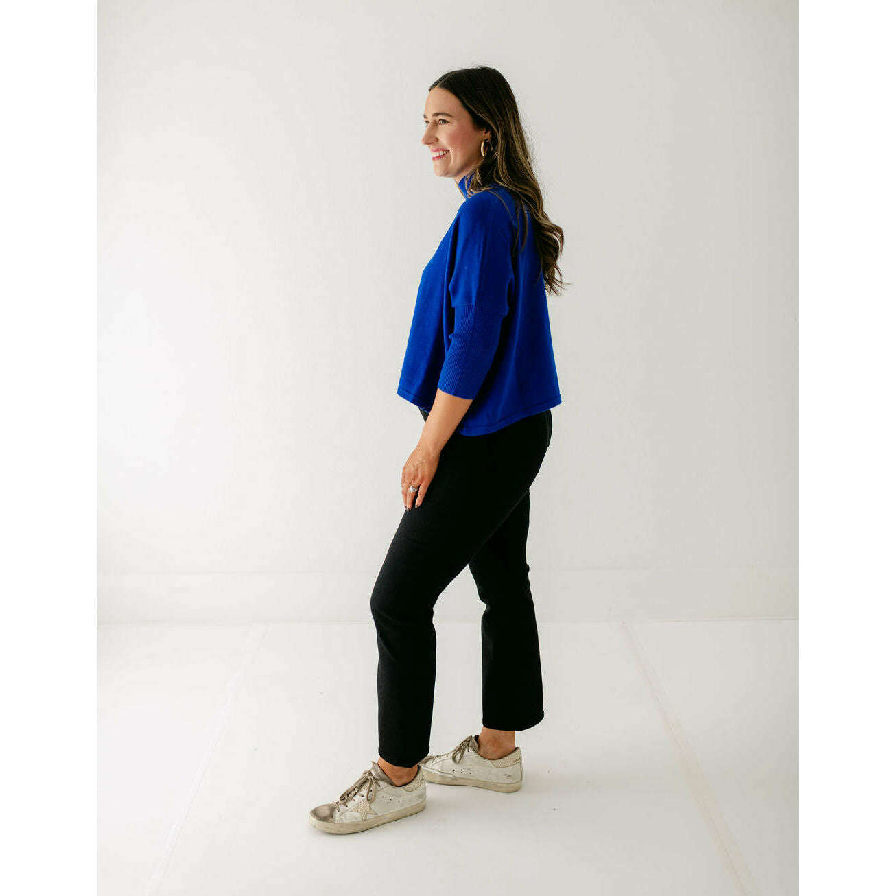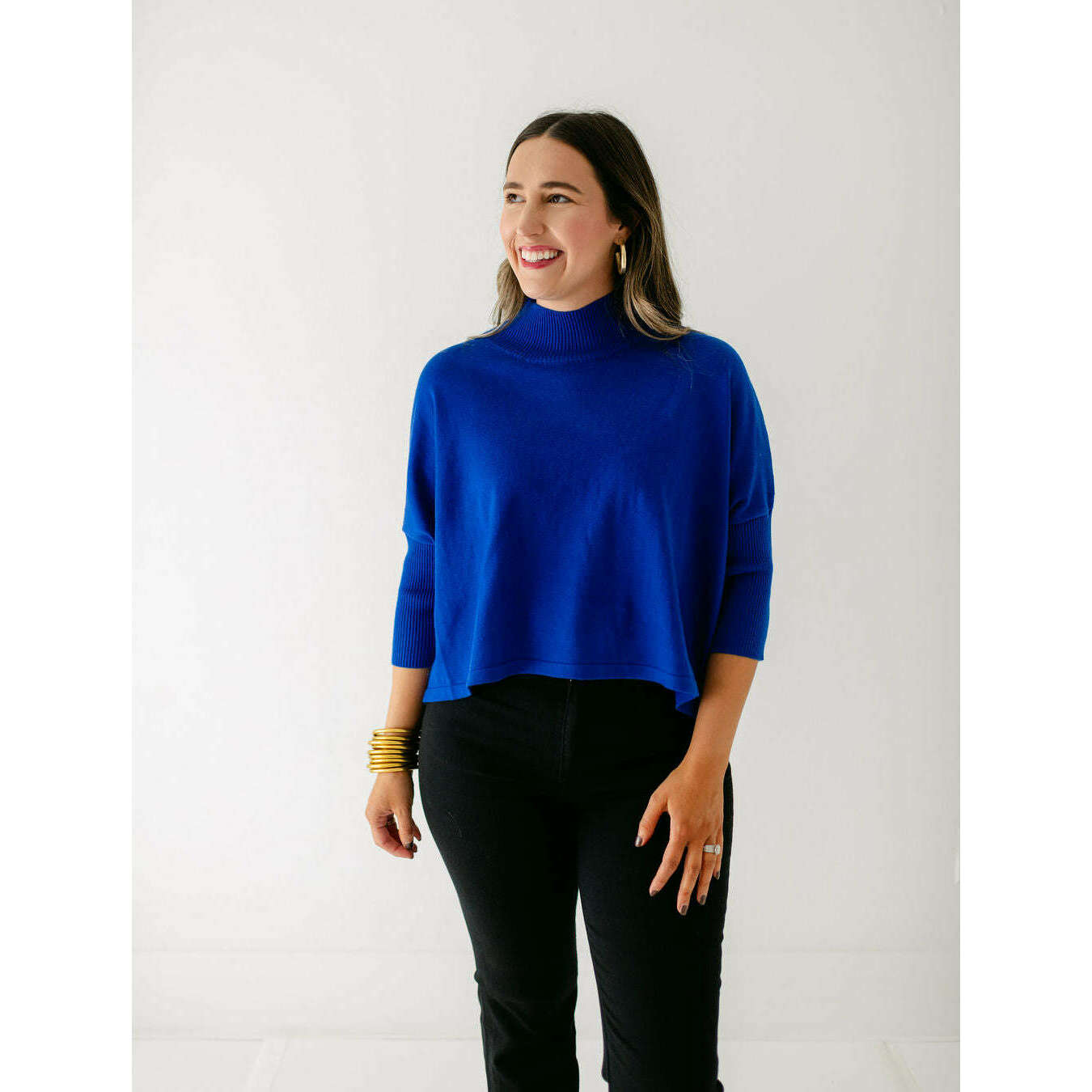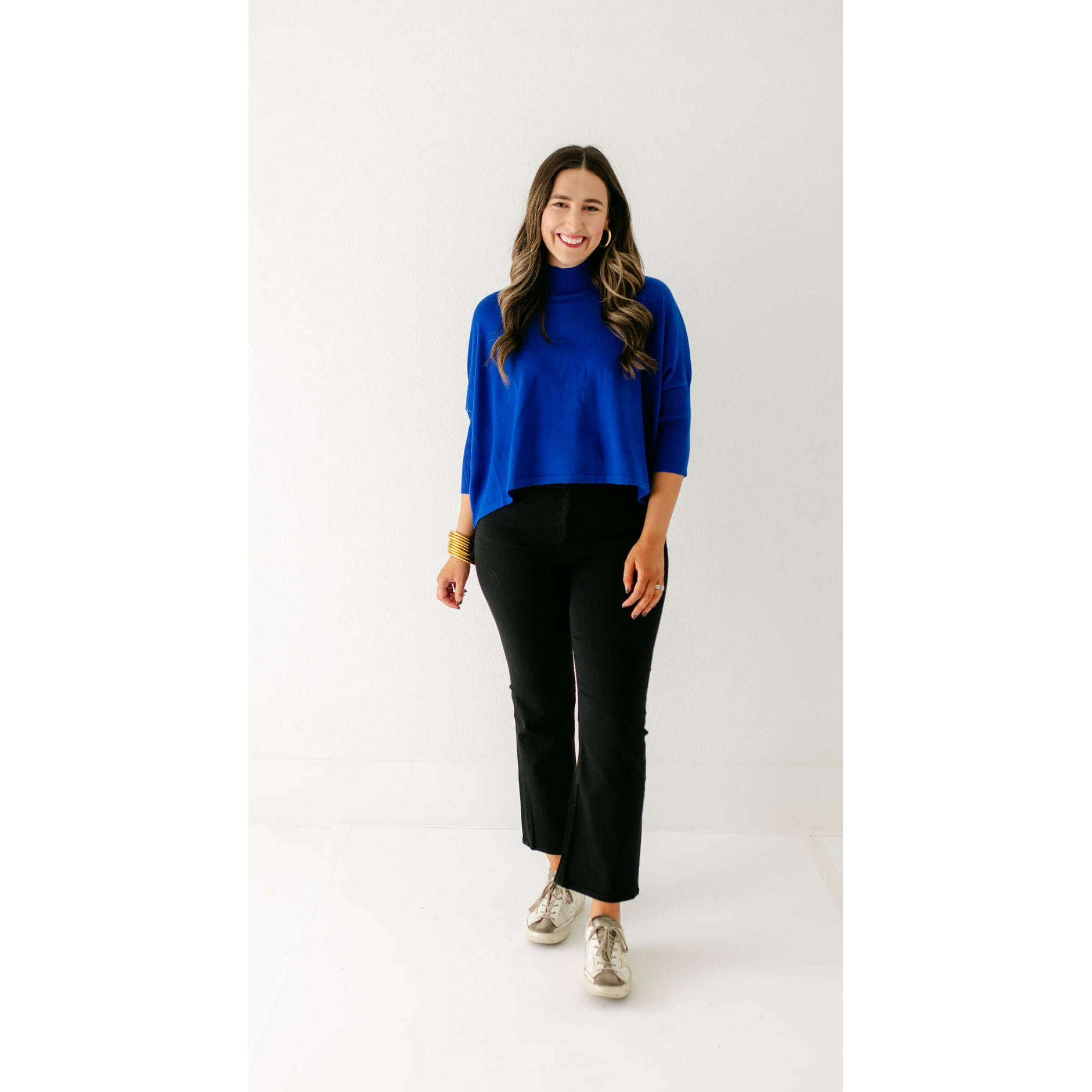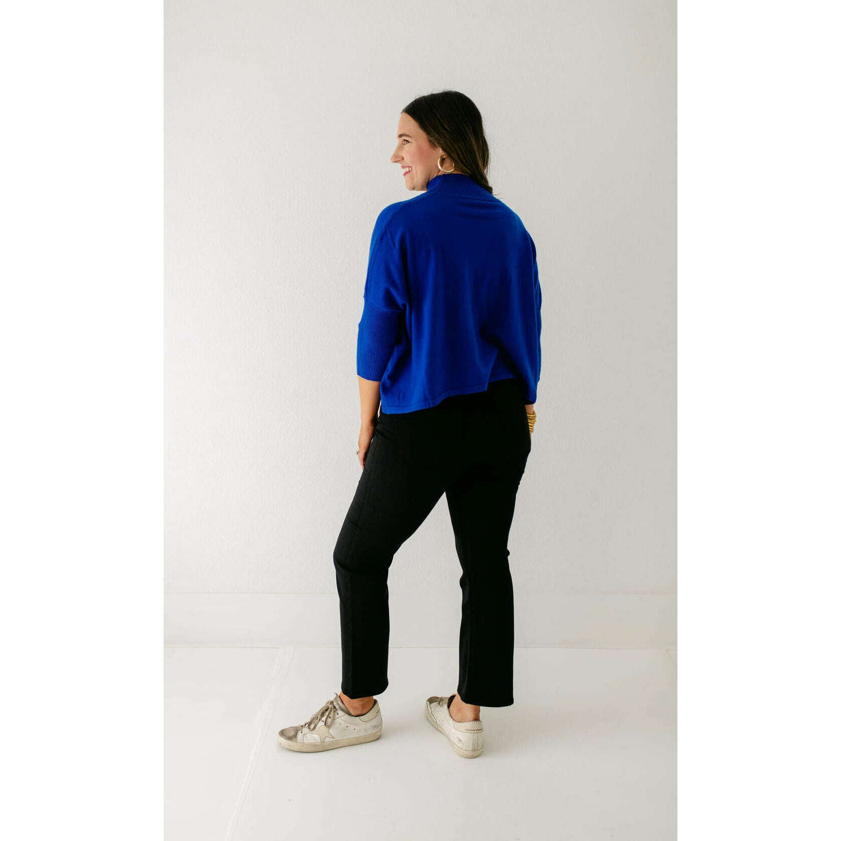 The Kerisma Knits Aja Ortho Solid Top in Royal Blue is back and better than ever. This new version is a thinner, lighter take on our most popular sweater, offering the perfect balance of comfort and style. You'll love how effortlessly it layers or stands alone, making it a must-have for the season.