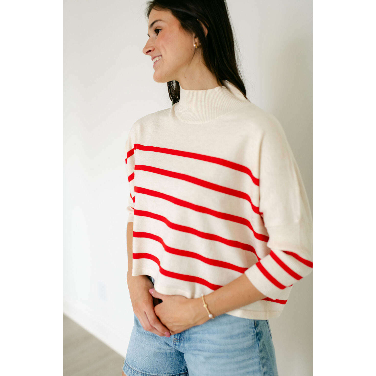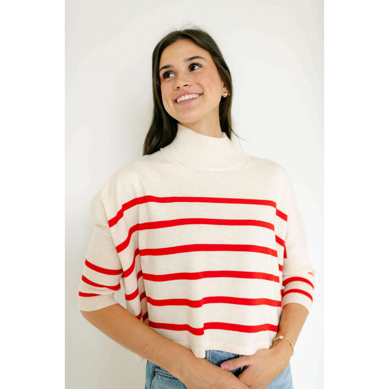 Meet the Kerisma Knits Aja Stripe Top—the beloved bestseller reimagined with playful red and white stripes. This versatile knit effortlessly transitions from casual weekends to polished weekday looks, thanks to its timeless stripe detailing and flattering silhouette. Crafted for comfort and style, it's the perfect piece to elevate your everyday wardrobe. Add this fan-favorite to your collection today.