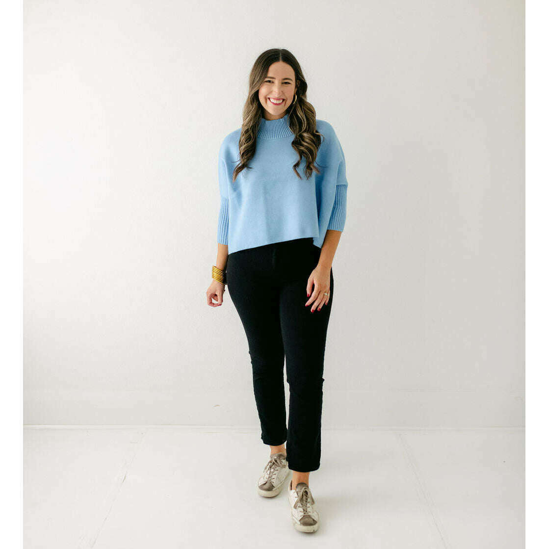 The Kerisma Knits Aja Sweater in Light Blue is back by popular demand. Its cozy knit and vibrant royal blue color make it a standout piece for any wardrobe. Designed for comfort and style, this best-selling sweater effortlessly elevates your everyday look while keeping you warm. Experience why everyone loves the Aja Sweater—your new favorite layering essential awaits.