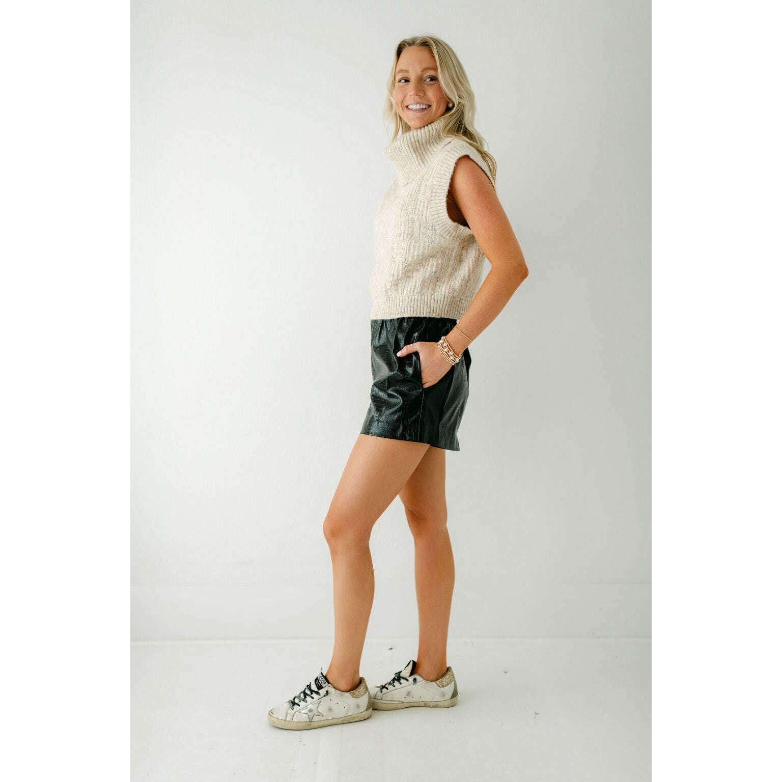 Rock the latest fall trend with the Kerisma Knits Oatmeal Marlene Top! This playful sweater vest pairs perfectly with the Pistola Lennon or Alice Midi skirt. Dress it up with ballet flats or keep it casual with sneakers for a full look. How cute is this sweater? We love it!