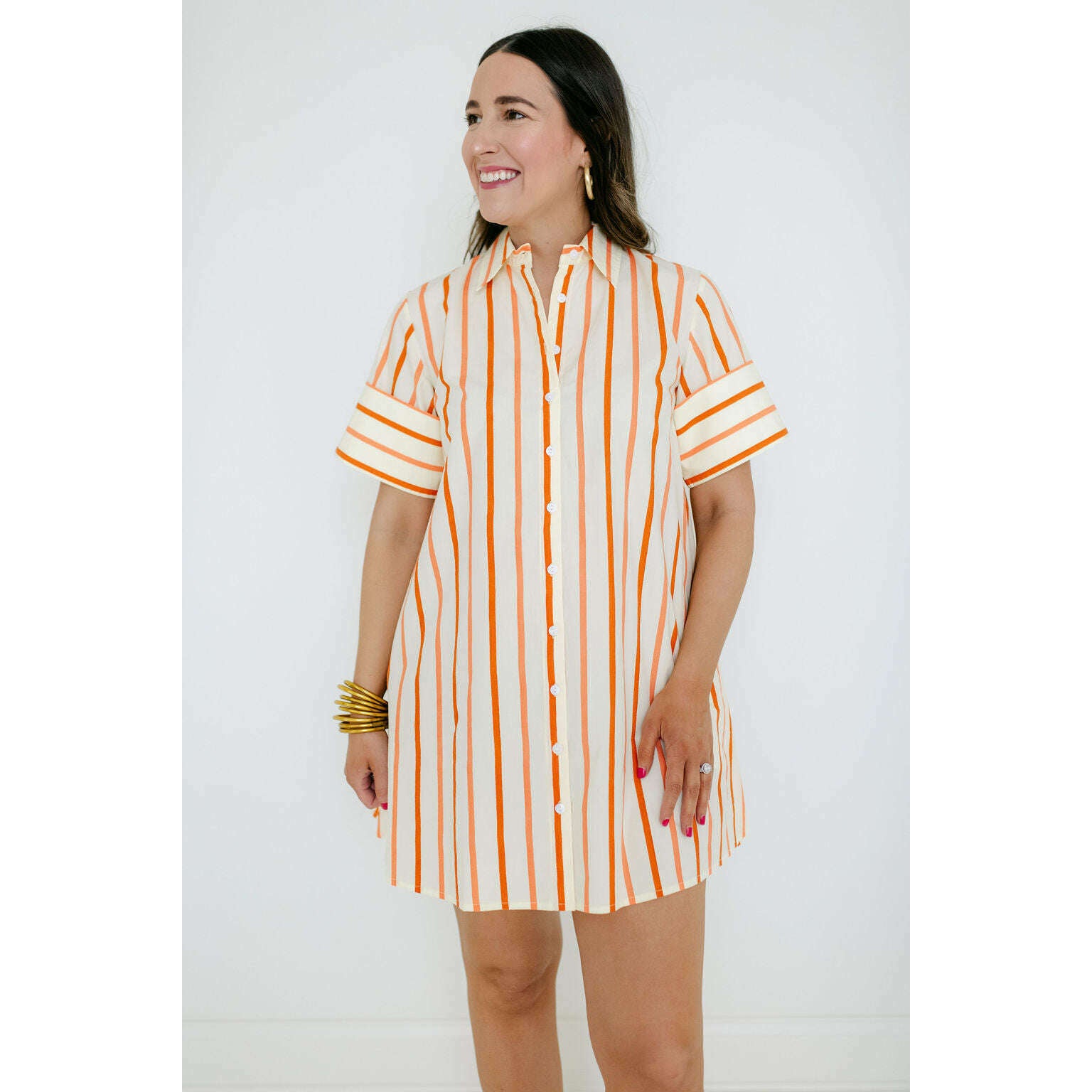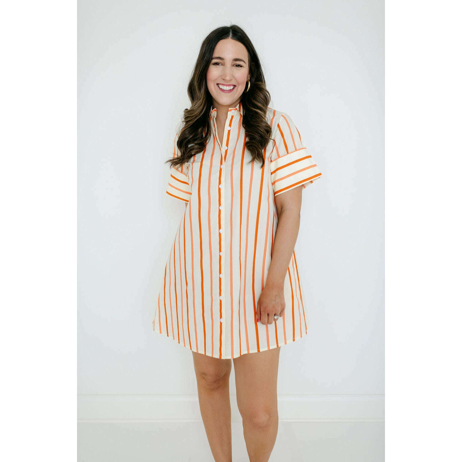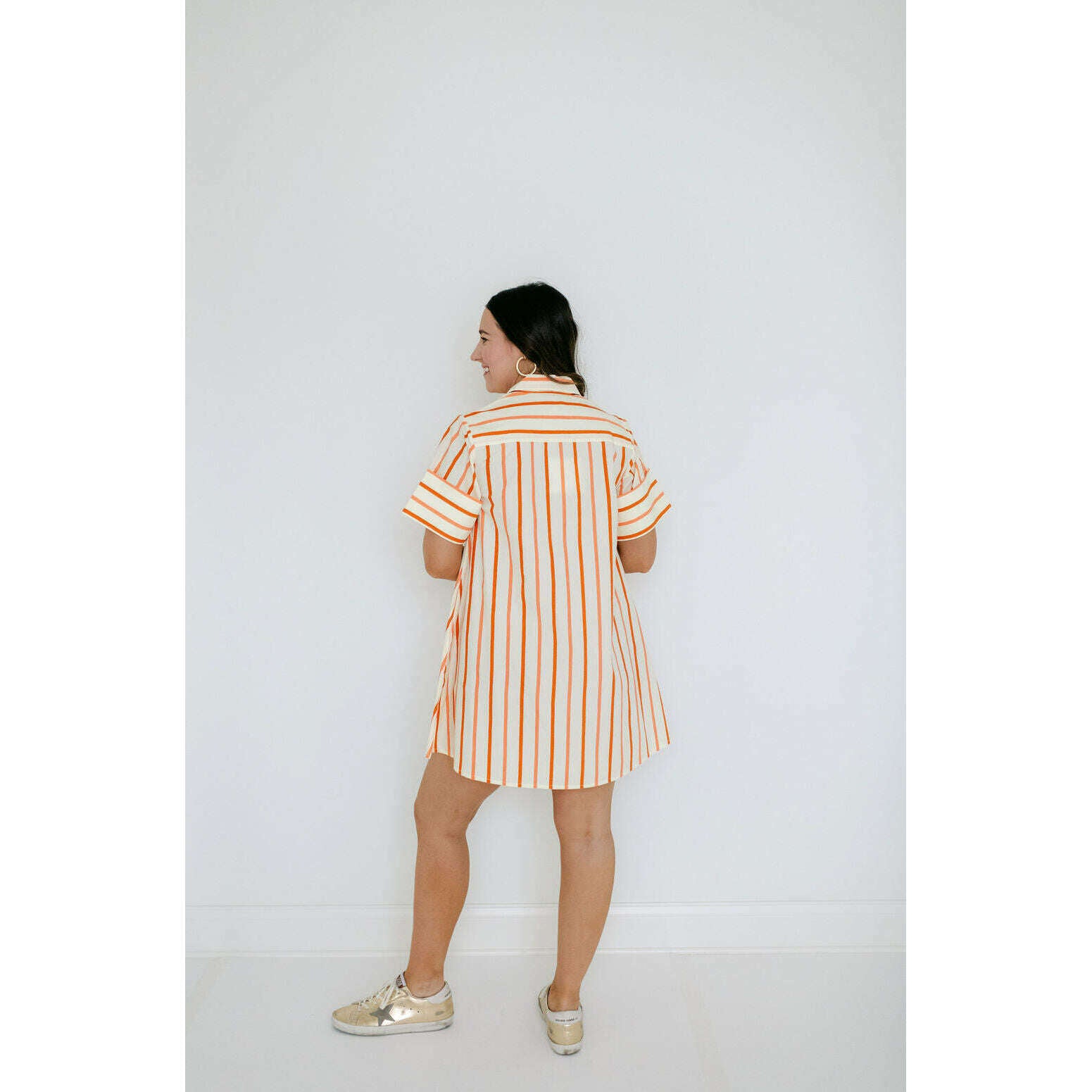 The Dock Dress is a short-sleeved, button-down mini shirt dress with a relaxed, A-line silhouette. The structured collar and full-length button placket give it a classic, tailored feel, while the loose fit adds an effortless, easygoing charm. Pair back to your favorite sandals!