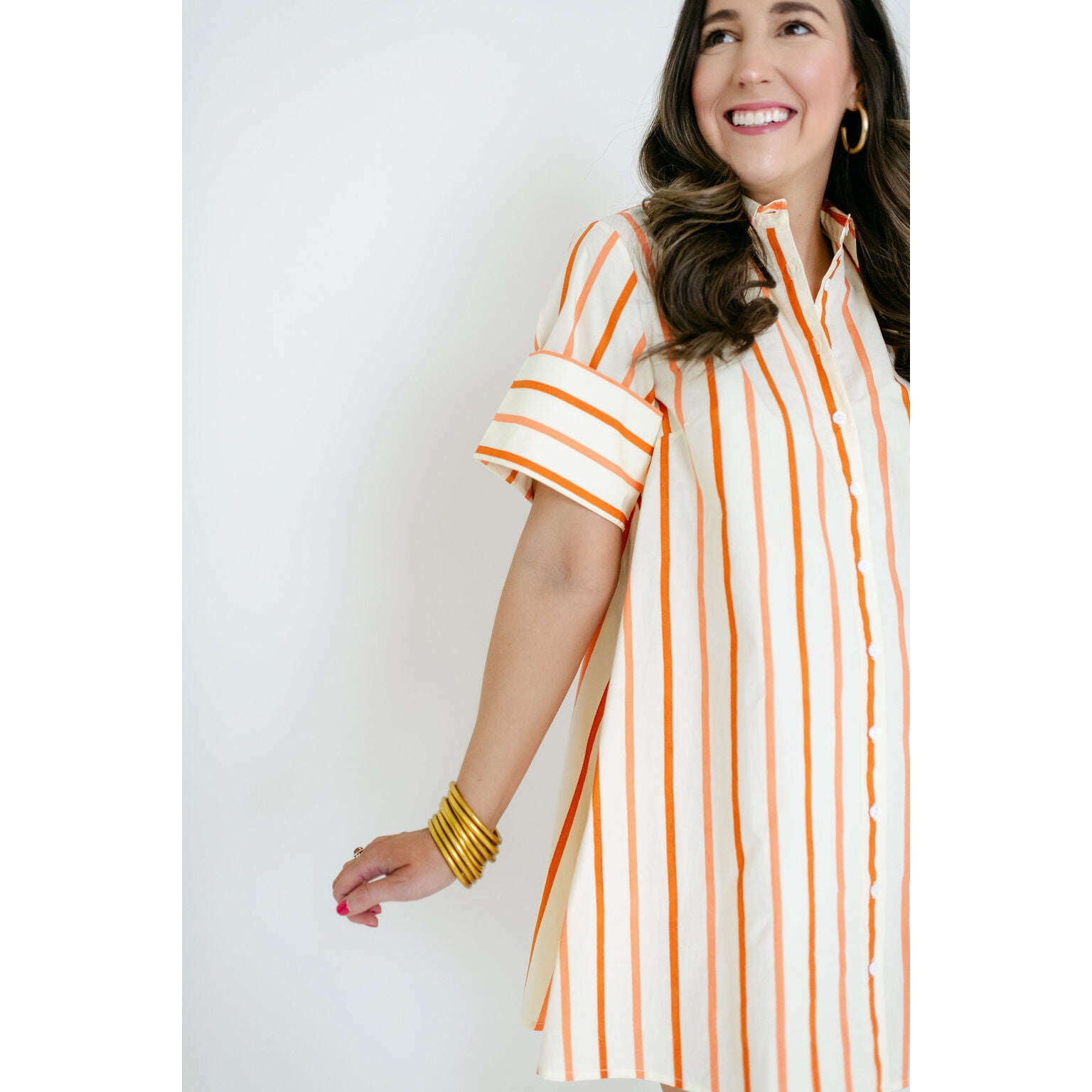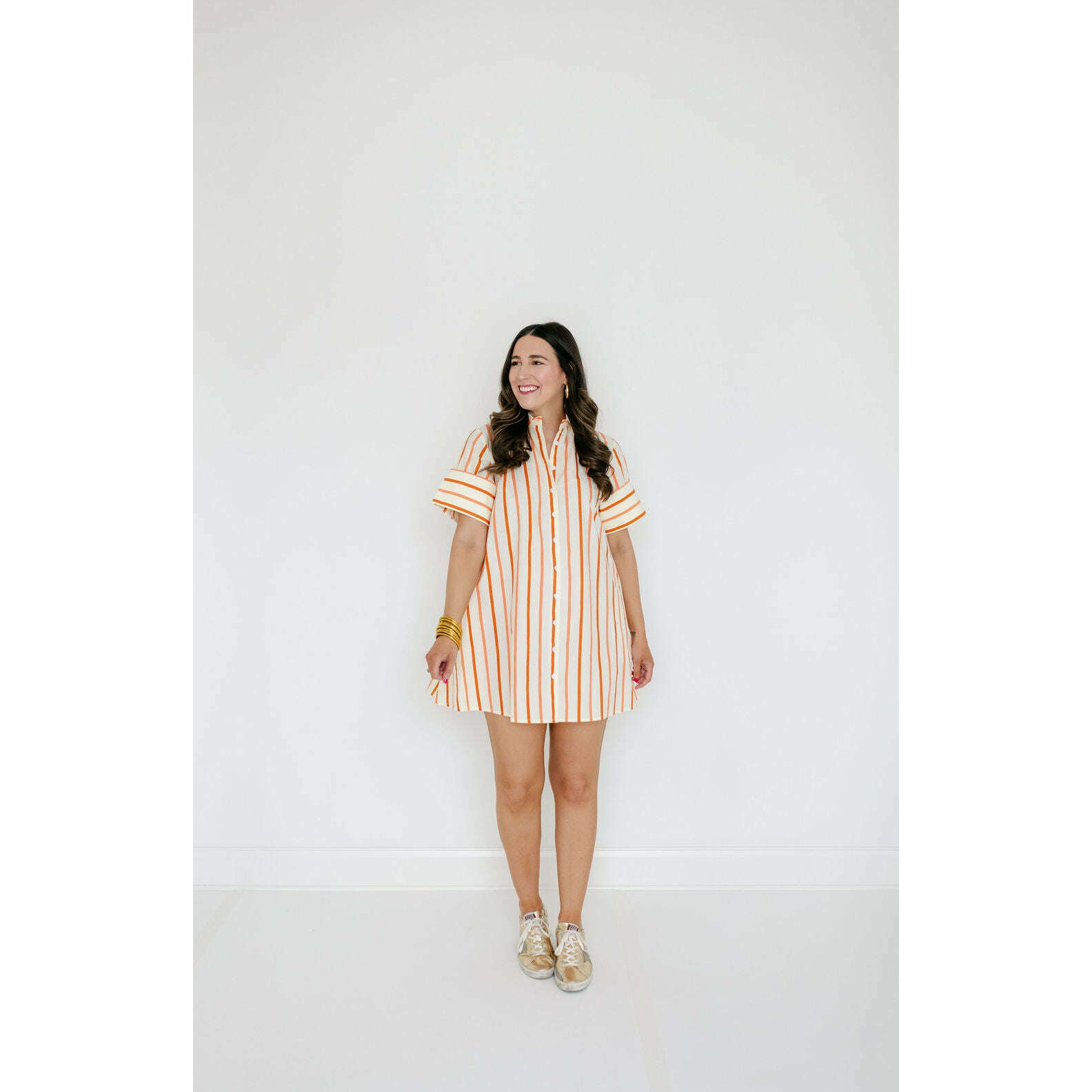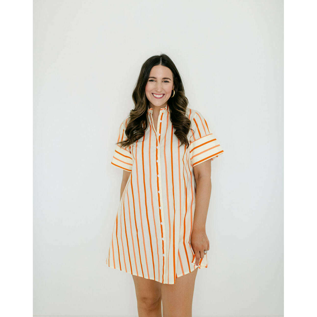 The Dock Dress is a short-sleeved, button-down mini shirt dress with a relaxed, A-line silhouette. The structured collar and full-length button placket give it a classic, tailored feel, while the loose fit adds an effortless, easygoing charm. Pair back to your favorite sandals!