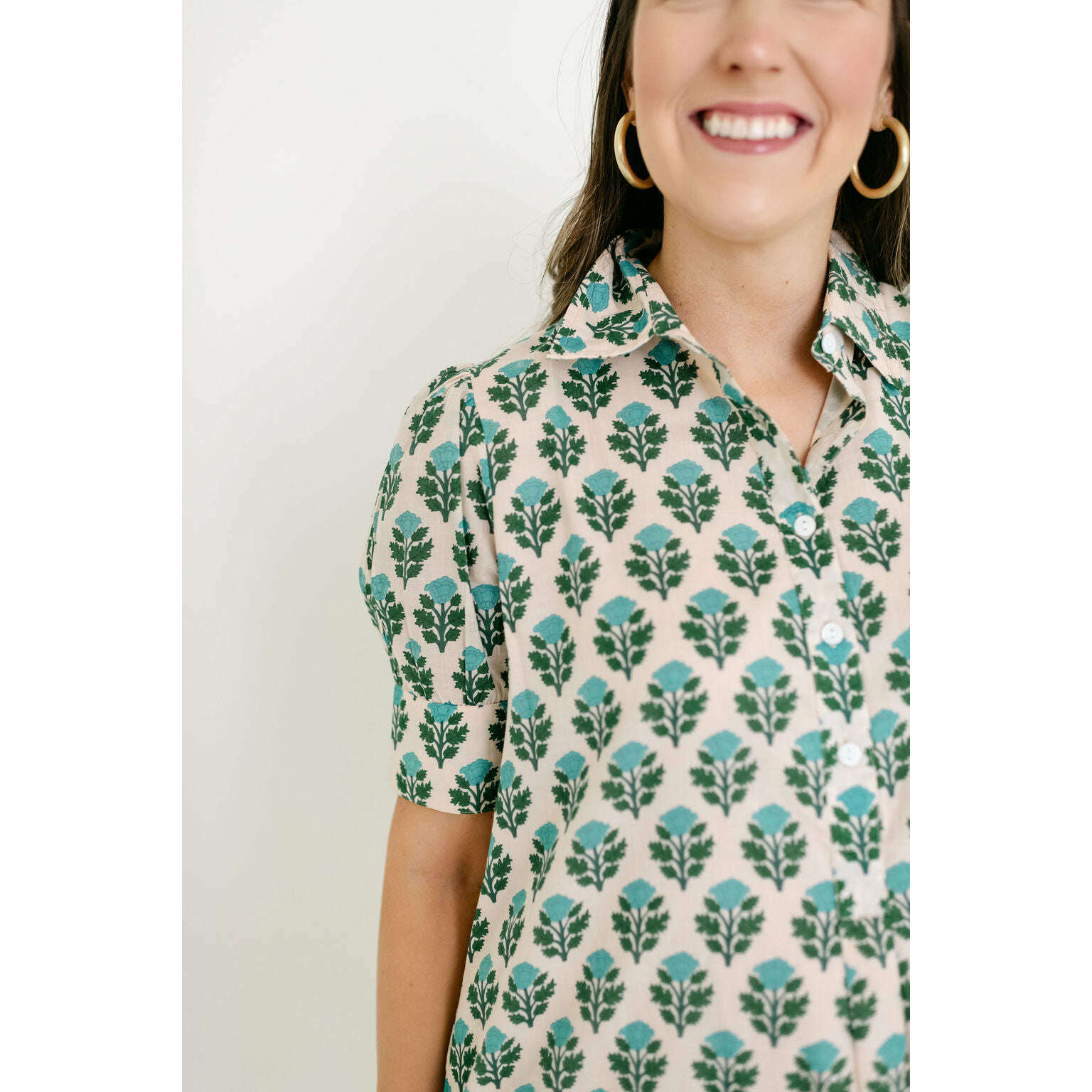 - Short puff sleeves with cuffs