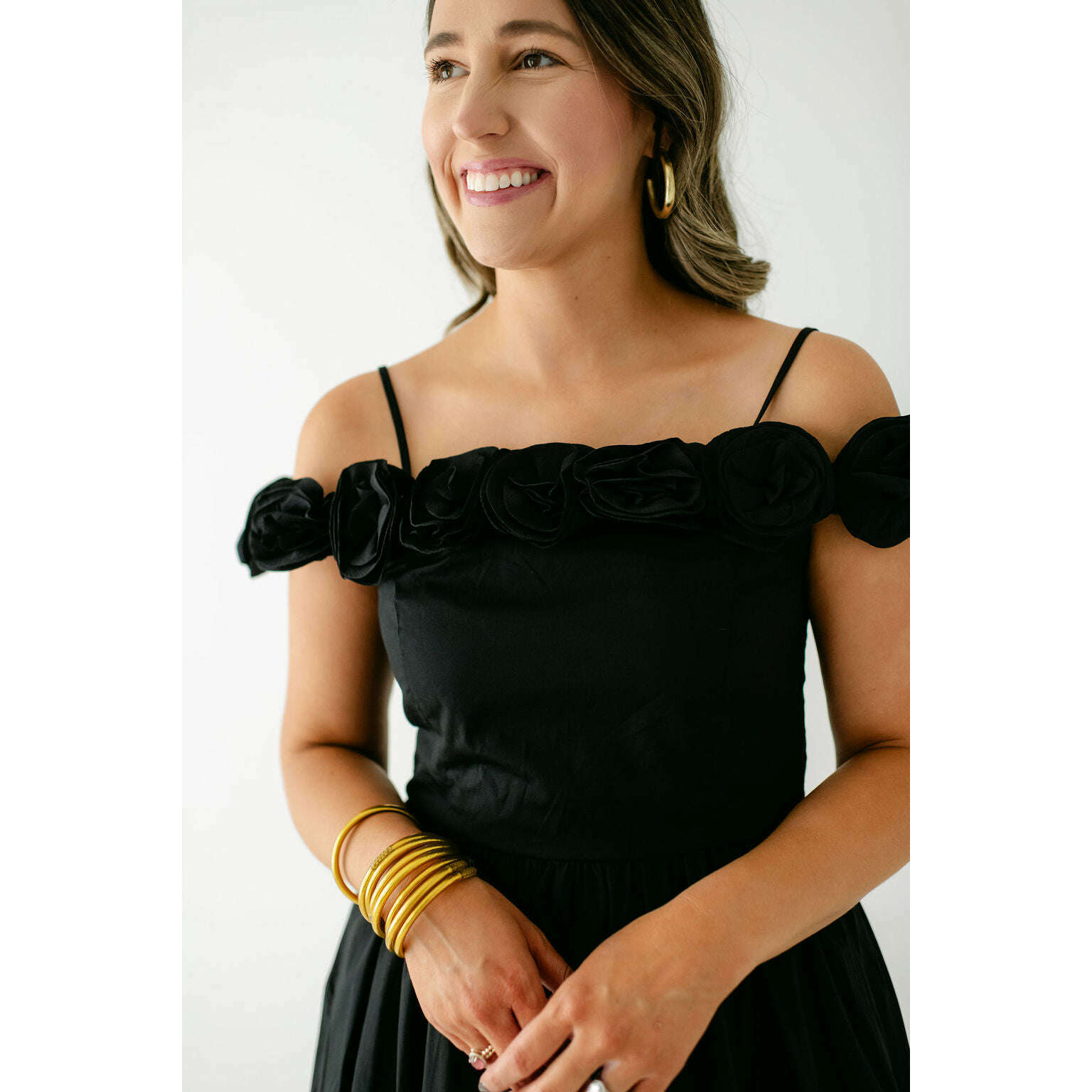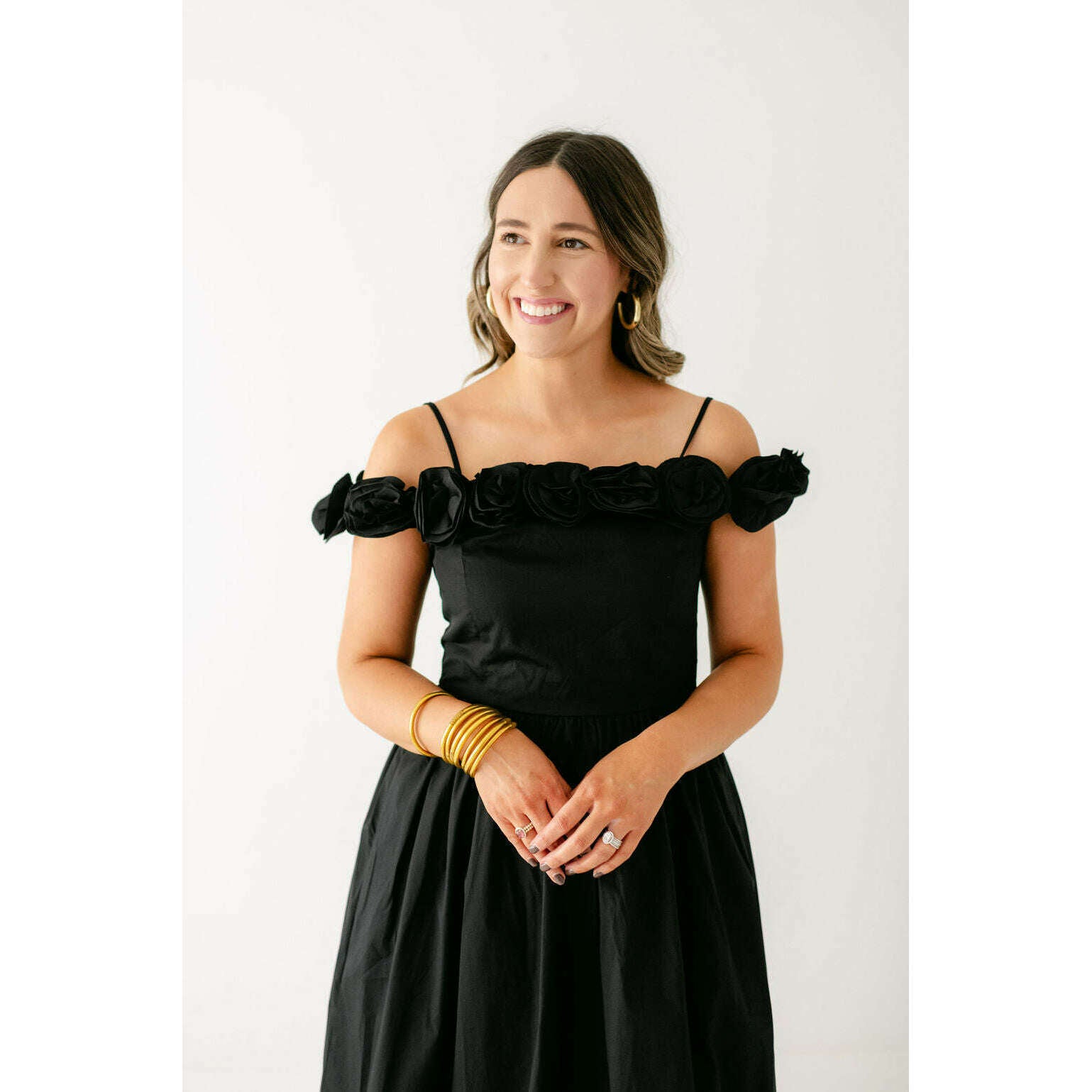 Step into autumn style with the Lucy Paris Marbella Rose Black Midi Dress. Featuring delicate detailing that adds a touch of elegance, this dress is perfect for your special fall events. Its flattering midi length and classic black hue ensure you look effortlessly chic and ready to impress. Make every occasion memorable with this versatile and stylish dress.