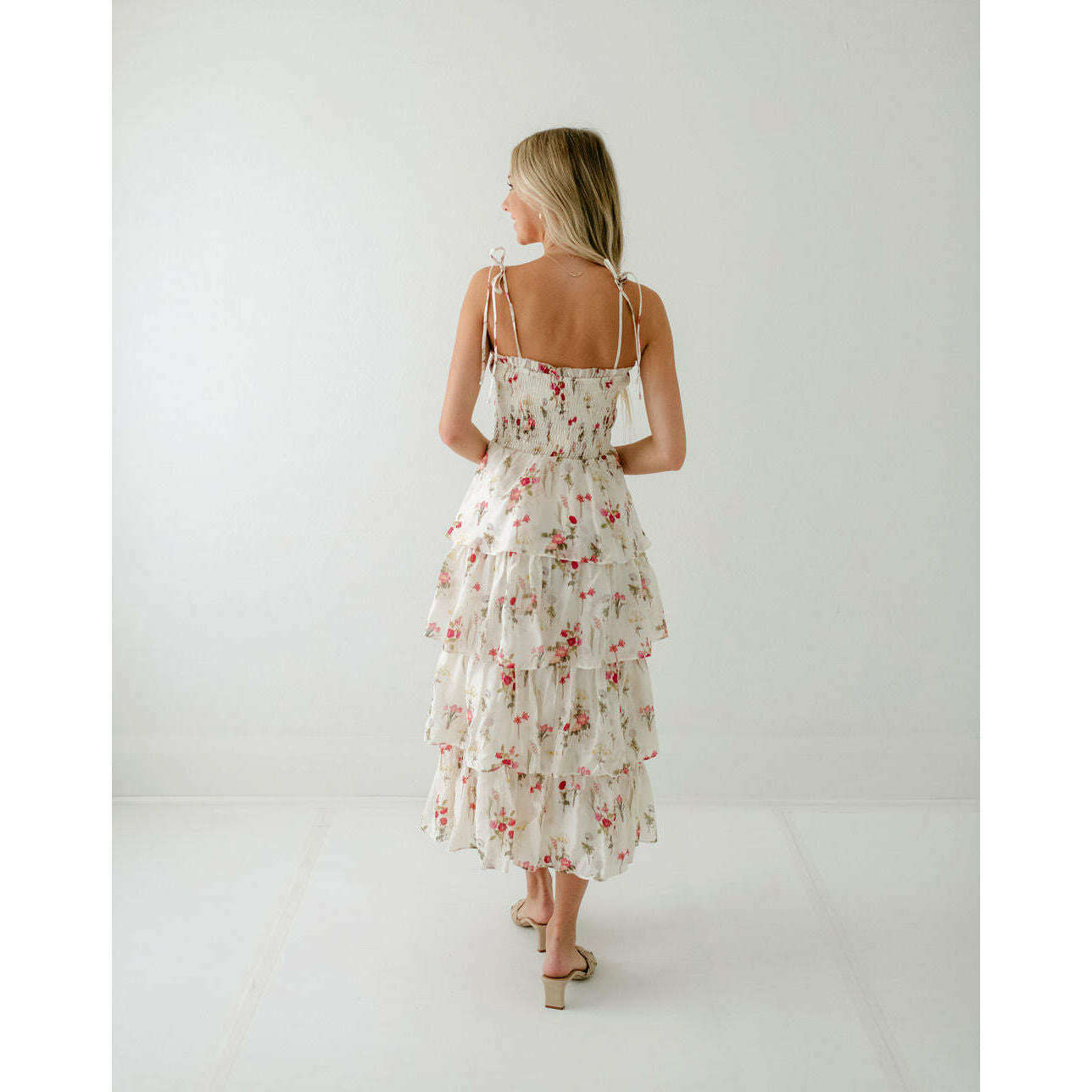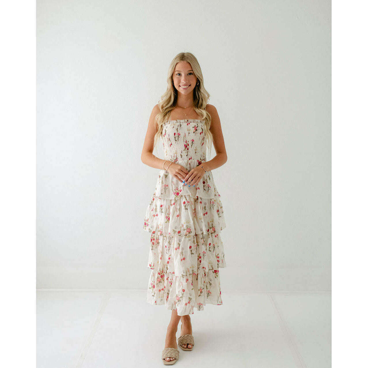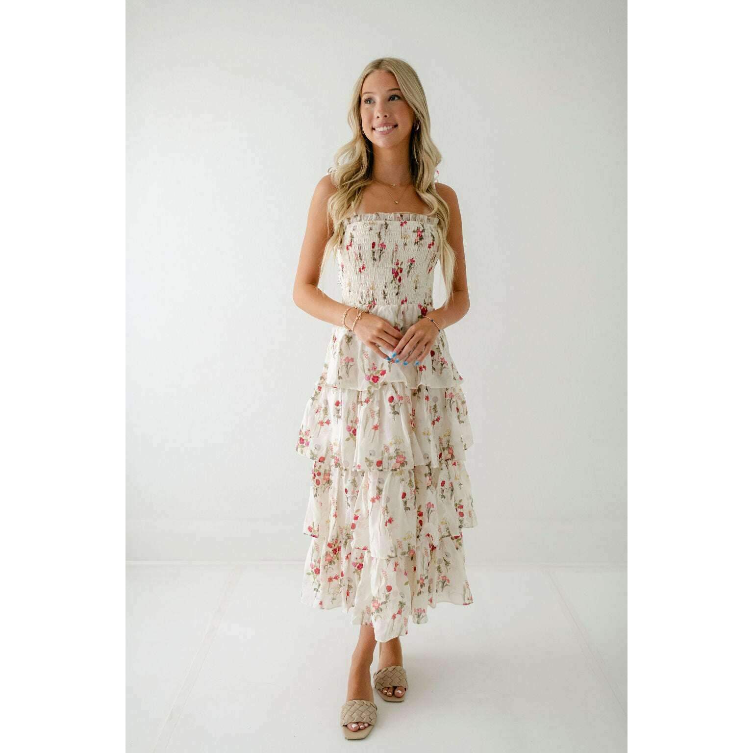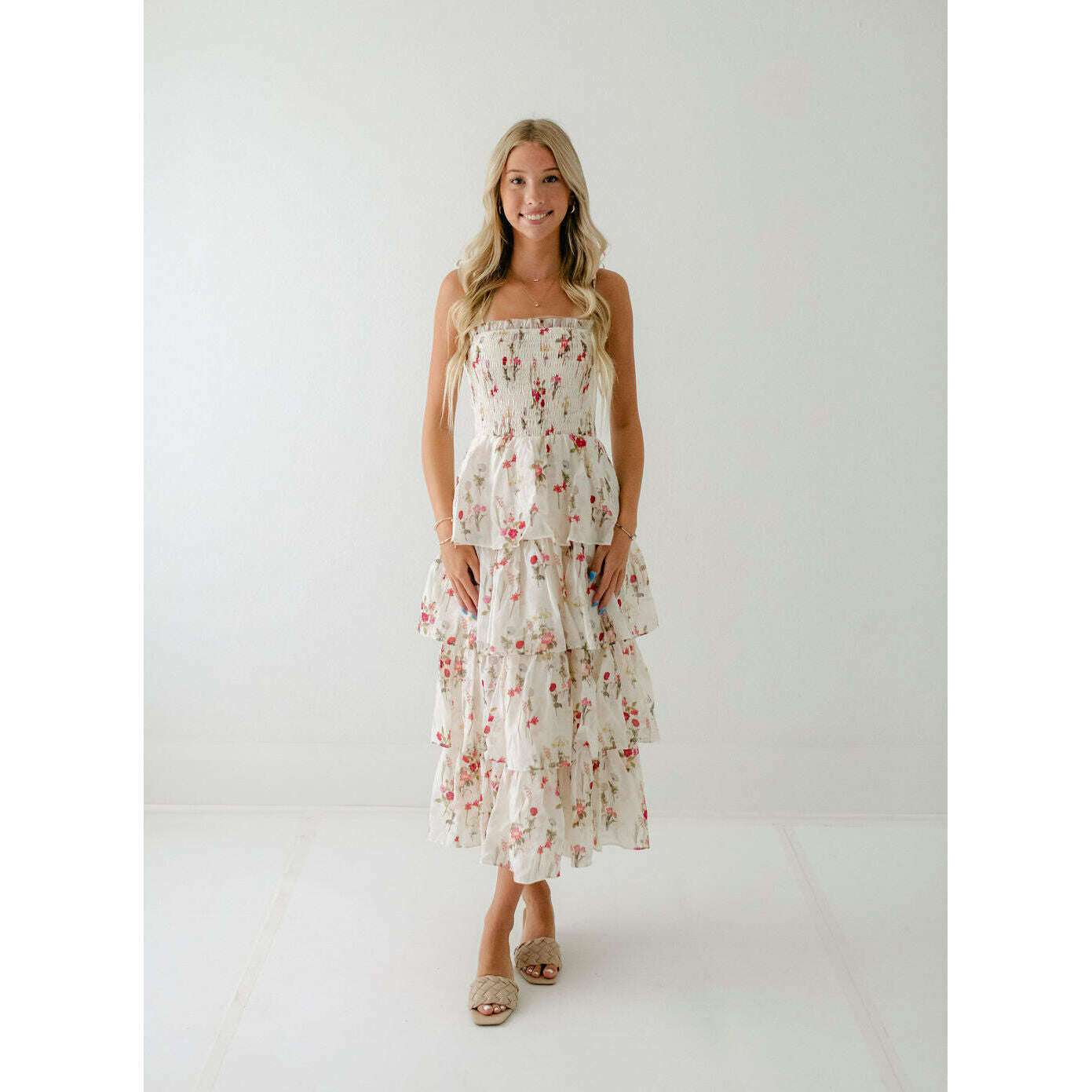 Lucy Paris Olive Tiered Dress in Ivory Floral