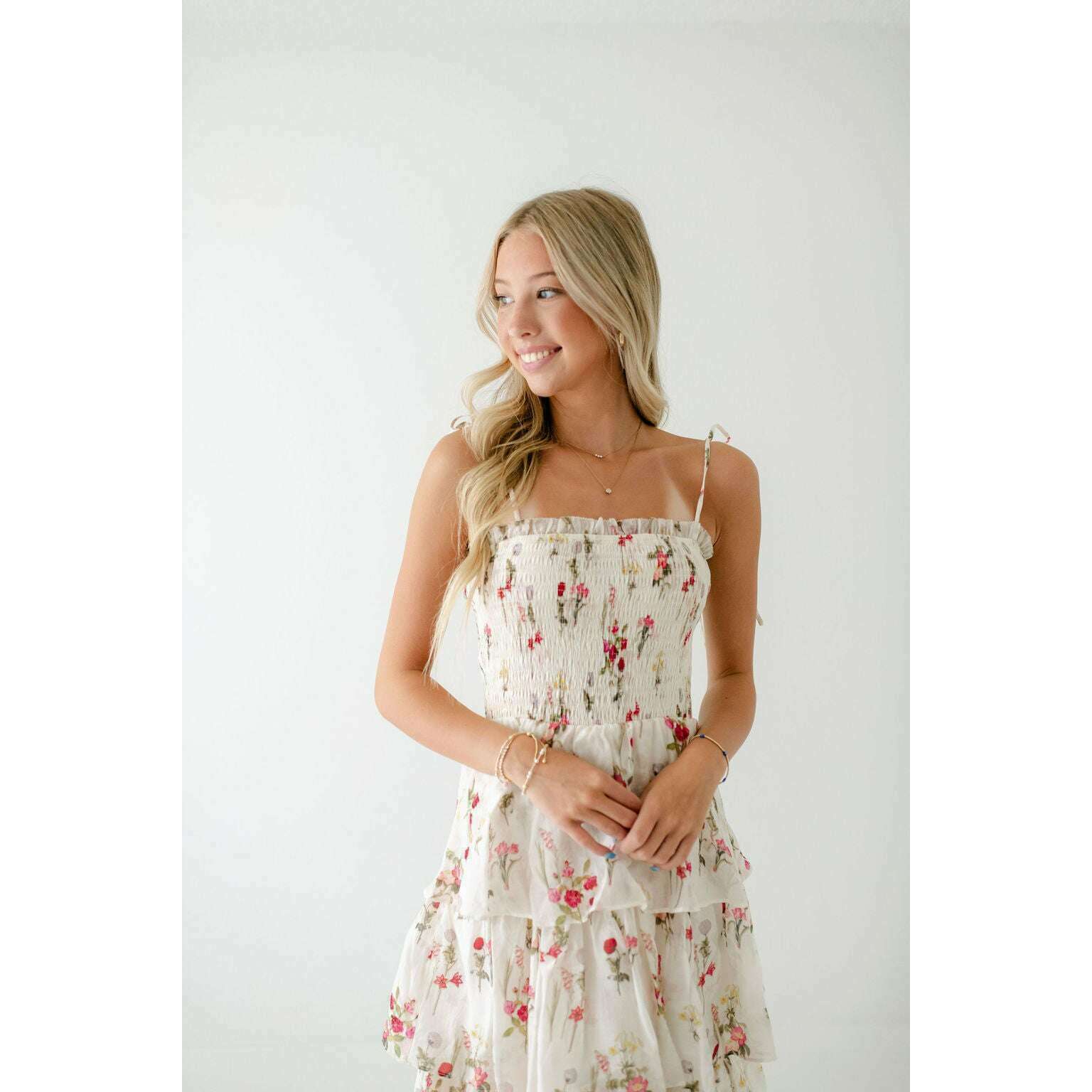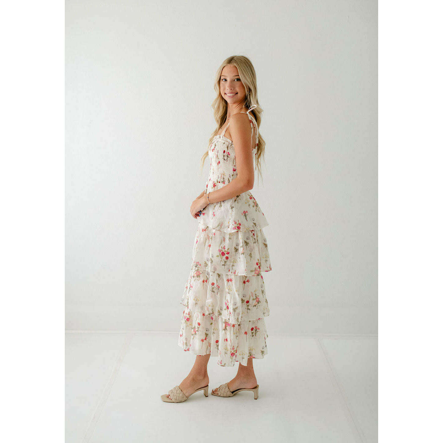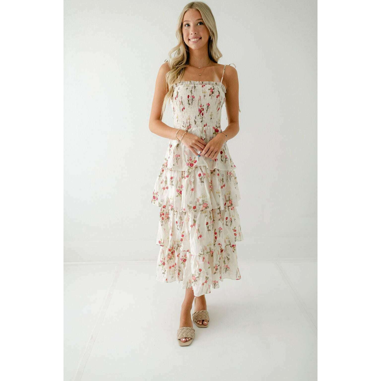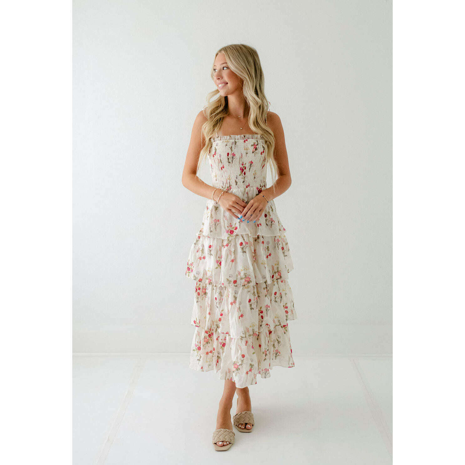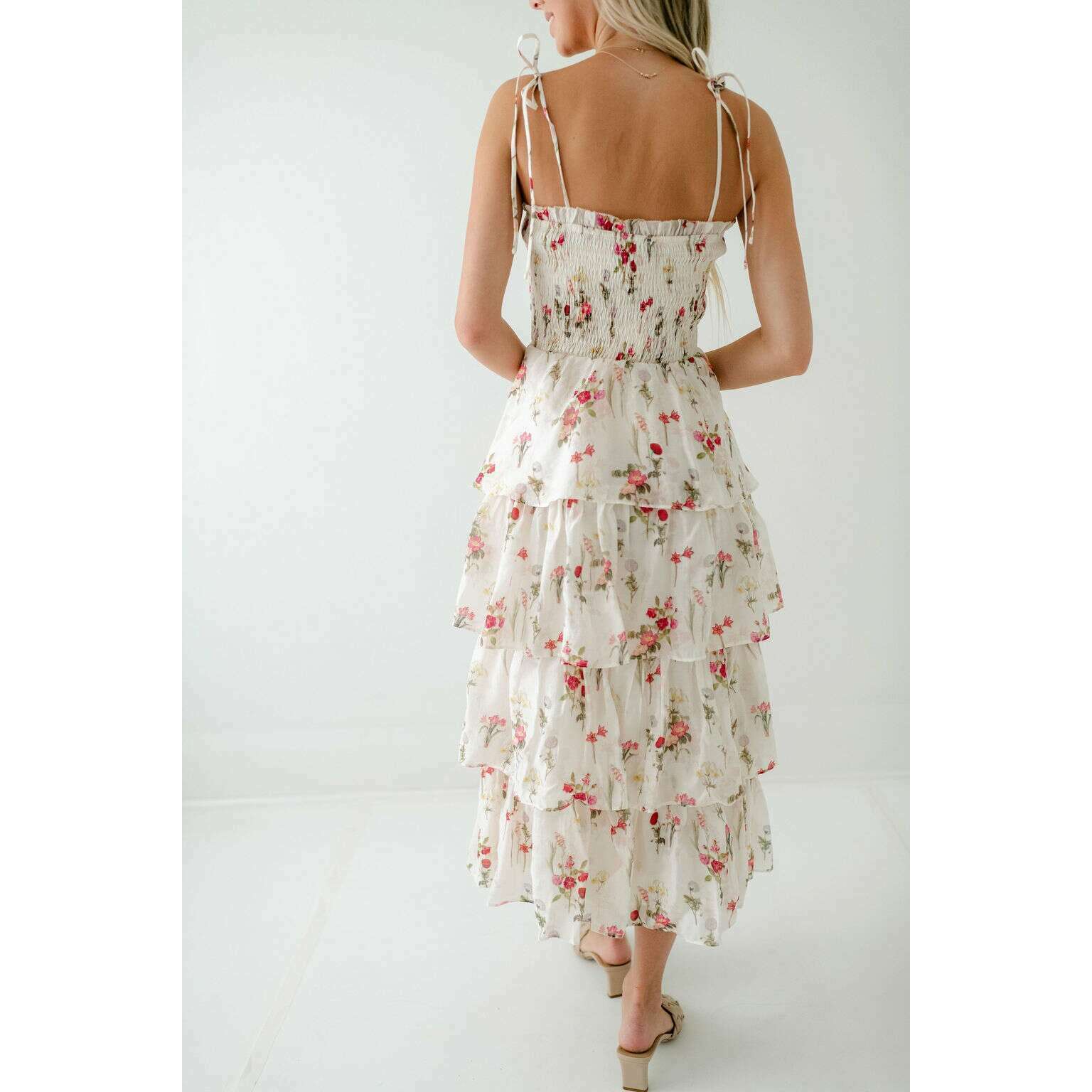 Lucy Paris Olive Tiered Dress in Ivory Floral