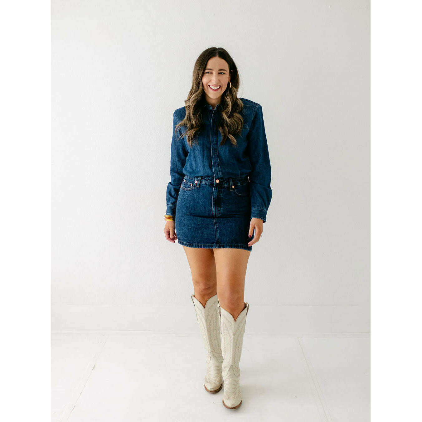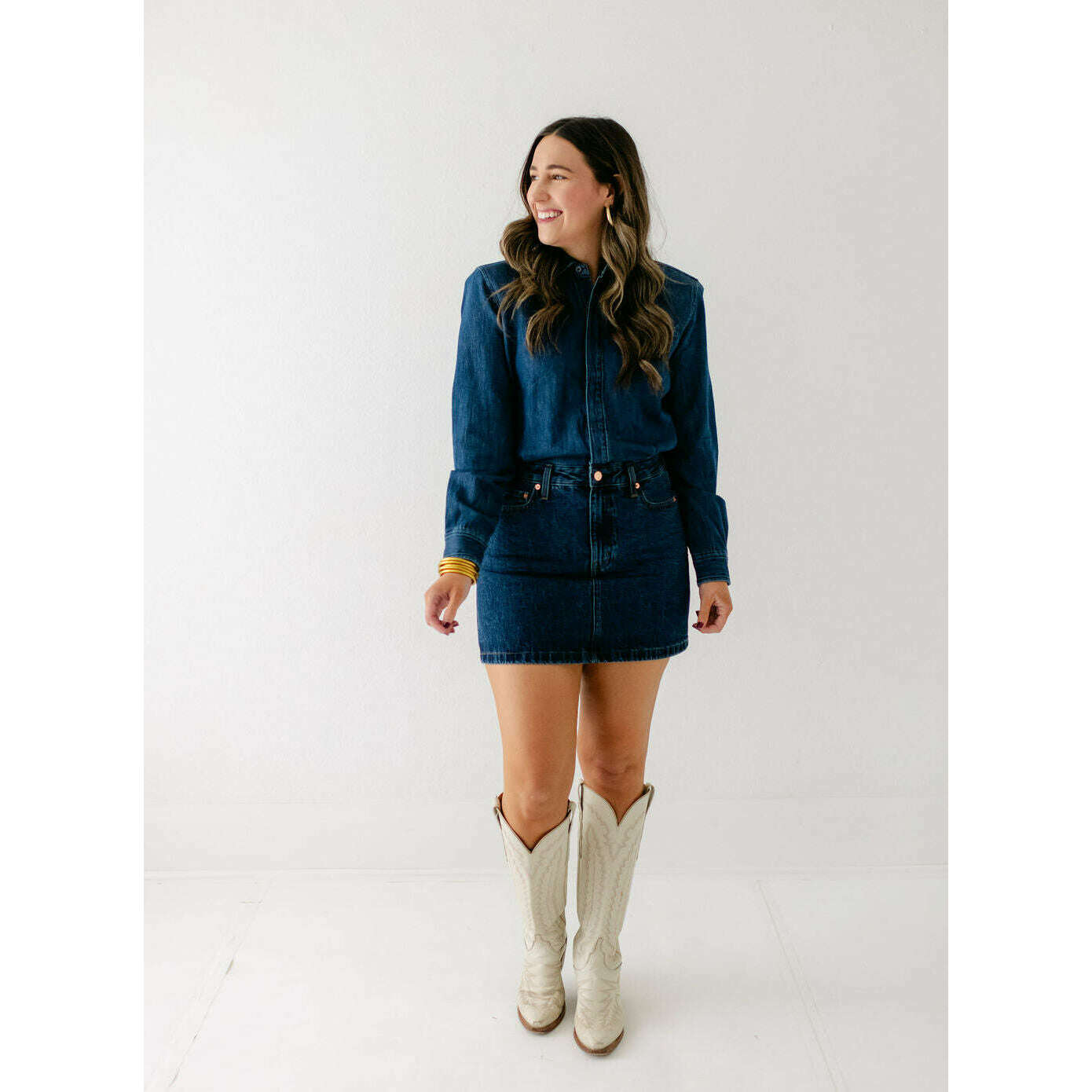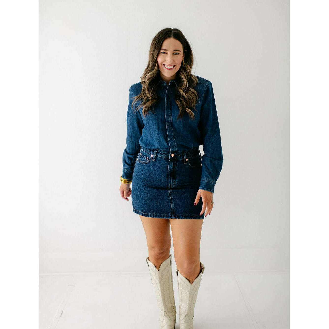 The dress you'll want to wear on repeat. The Pistola Pixie delivers sophisticated versatility with a tailored shirt dress silhouette and modern mini length that transitions effortlessly from day to night. The classic collar and button-front styling bring polished appeal while the structured fit creates a flattering silhouette. Crafted from 100% cotton non-stretch fabric in Gemini, a deep blue wash.