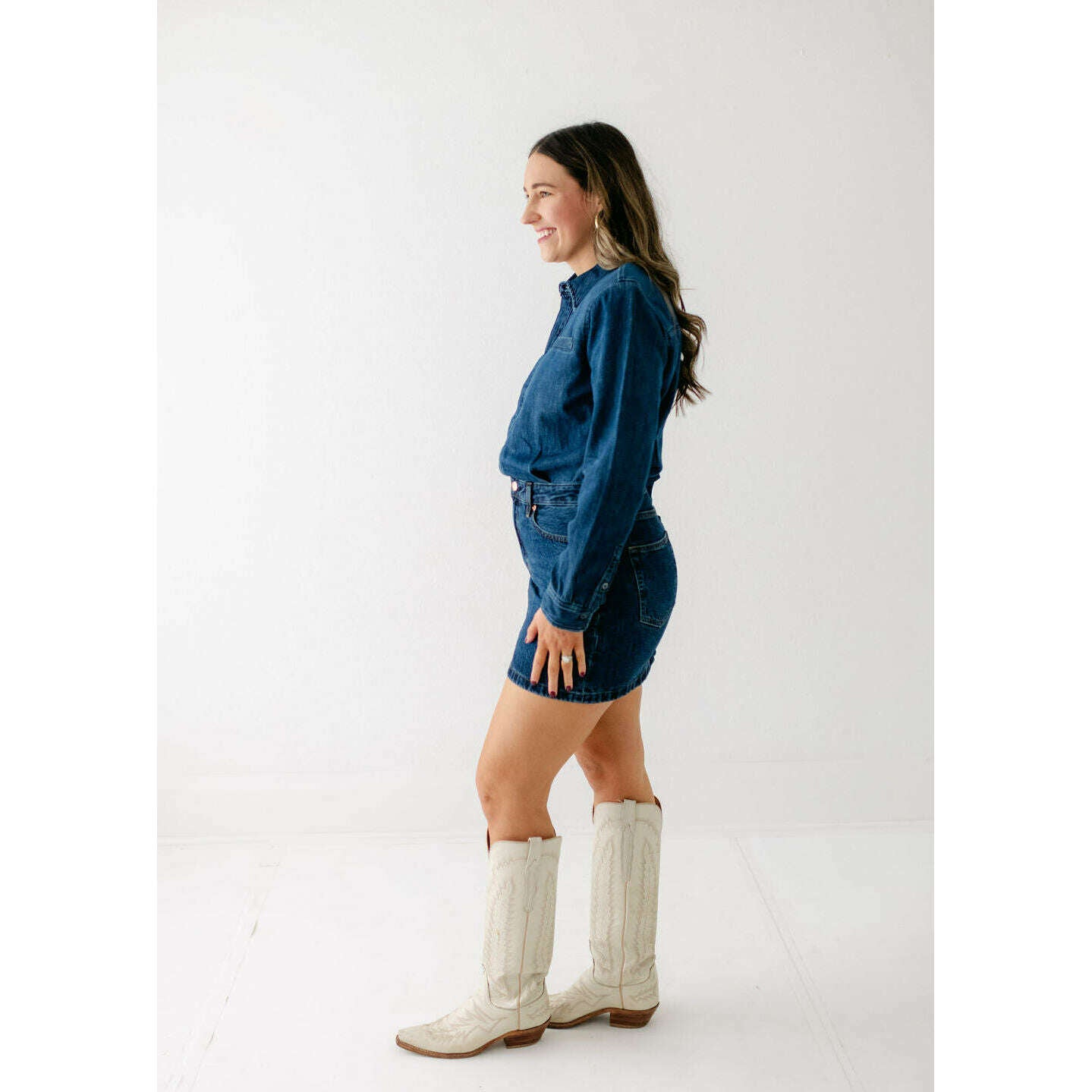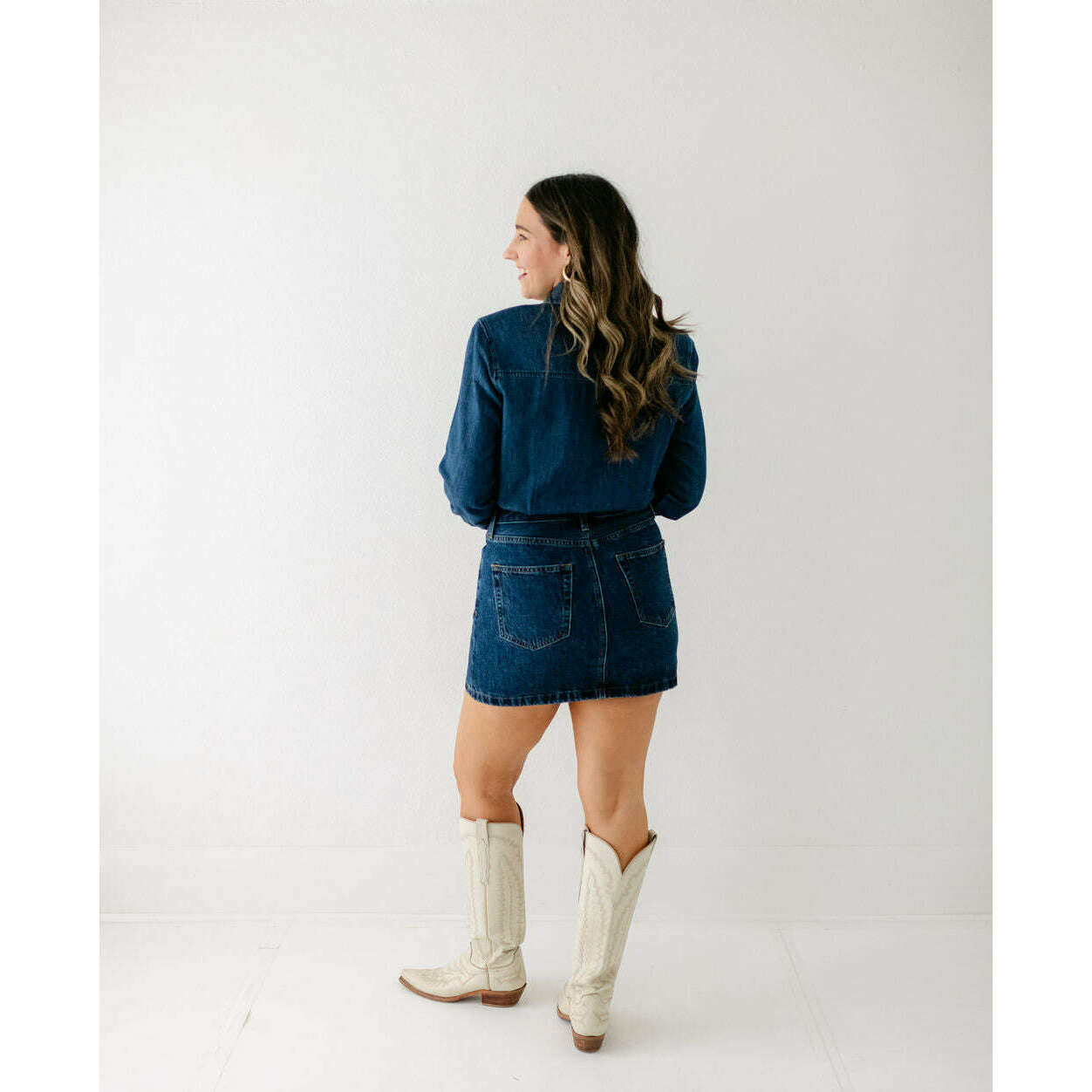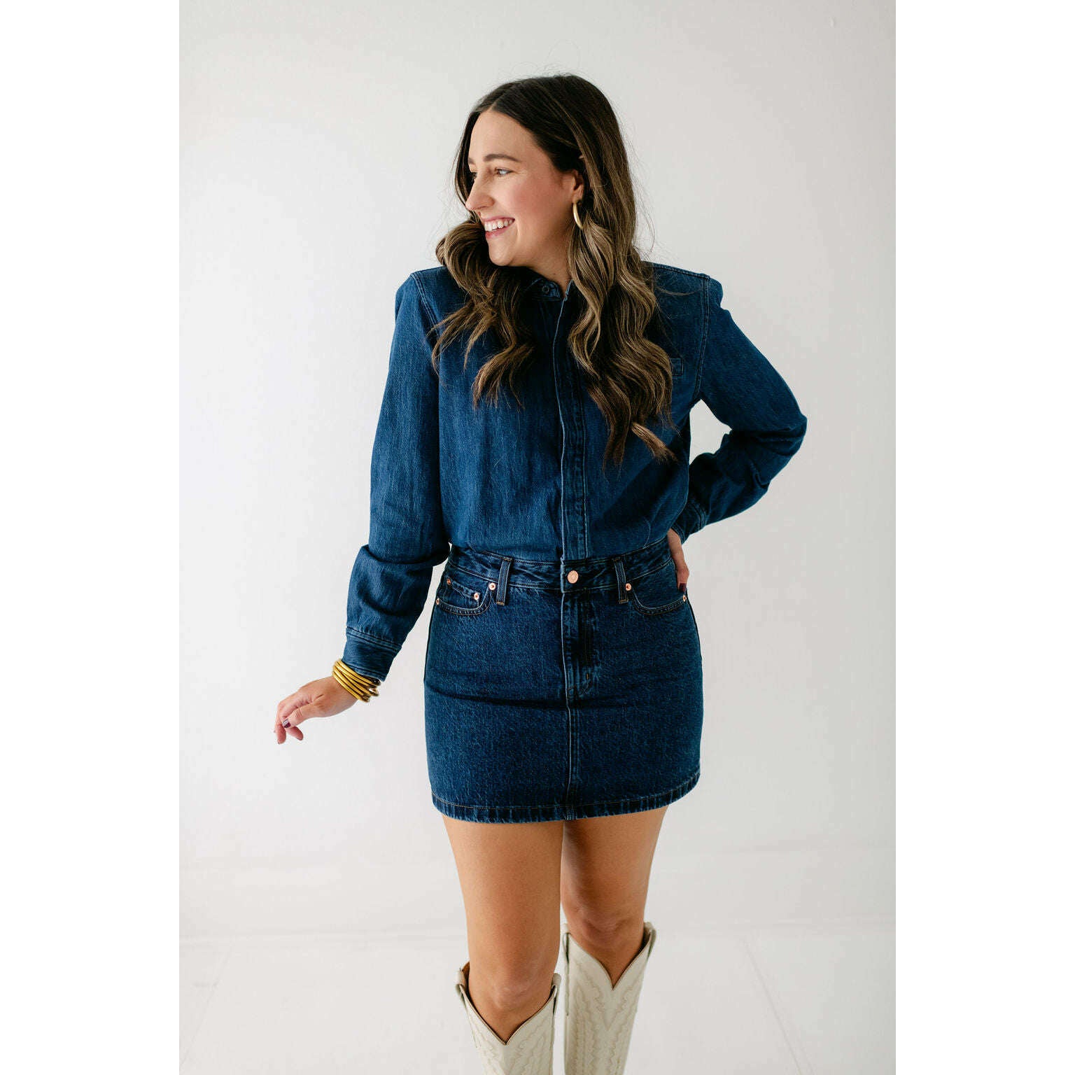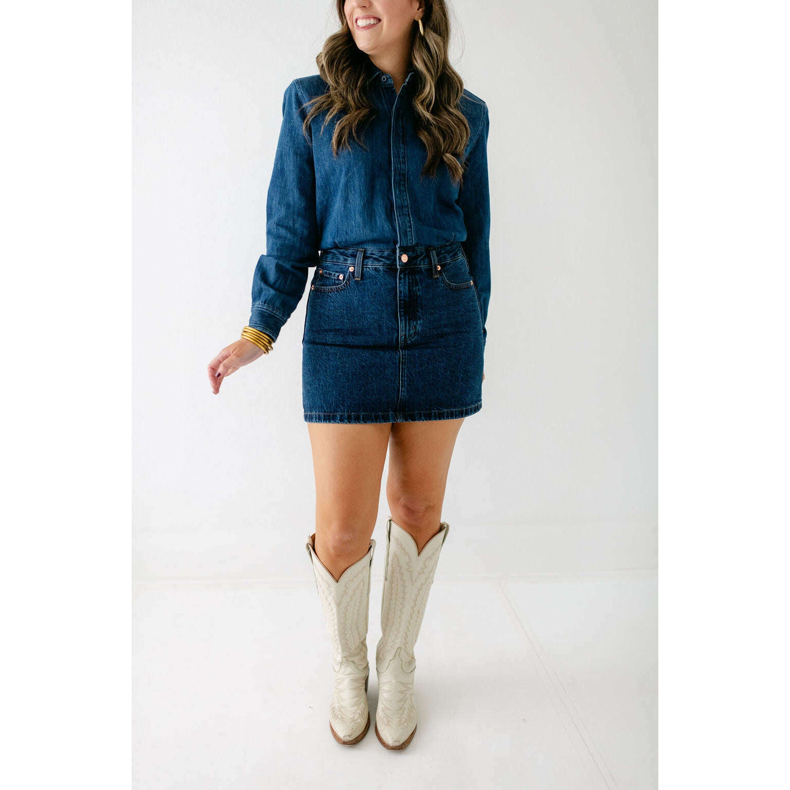The dress you'll want to wear on repeat. The Pistola Pixie delivers sophisticated versatility with a tailored shirt dress silhouette and modern mini length that transitions effortlessly from day to night. The classic collar and button-front styling bring polished appeal while the structured fit creates a flattering silhouette. Crafted from 100% cotton non-stretch fabric in Gemini, a deep blue wash.