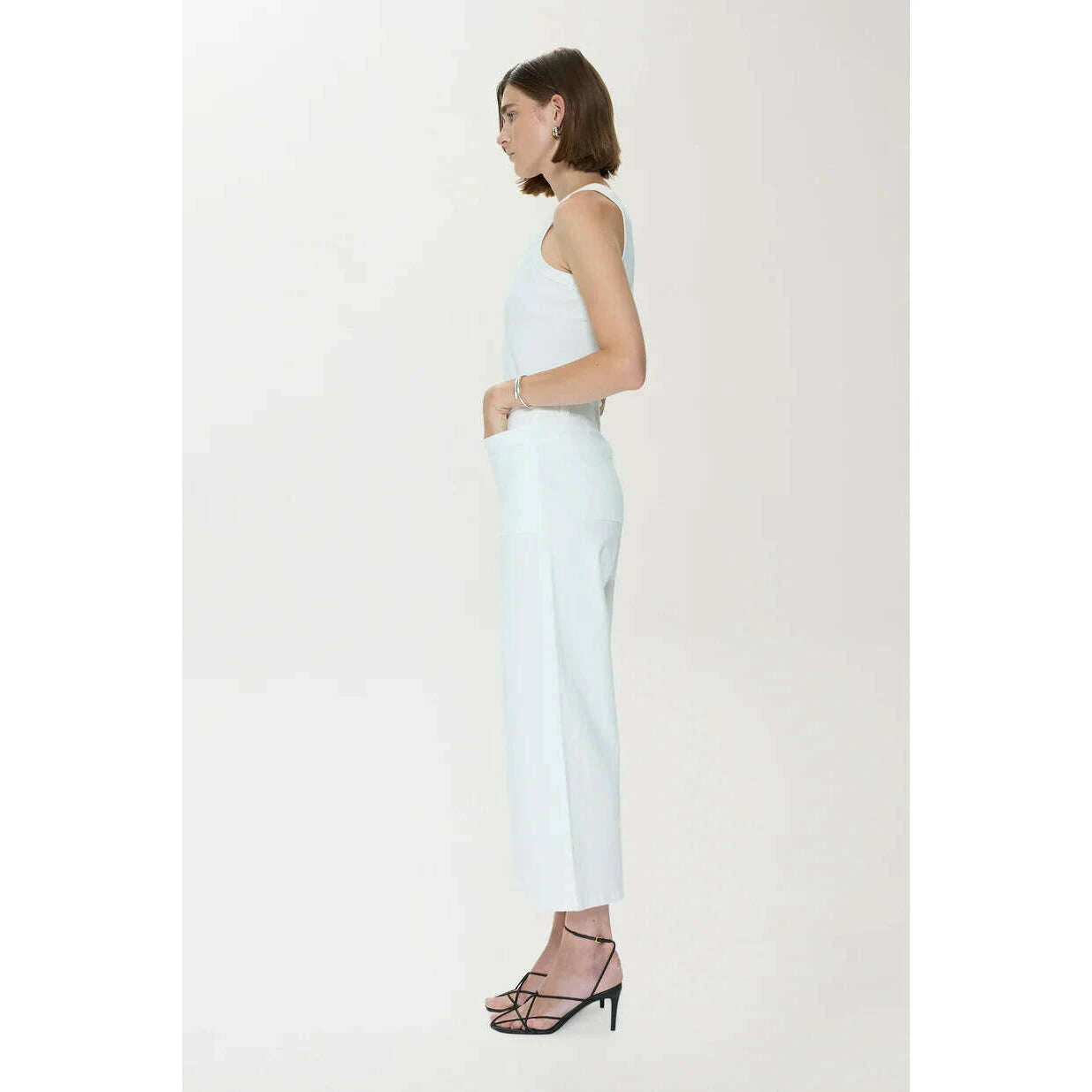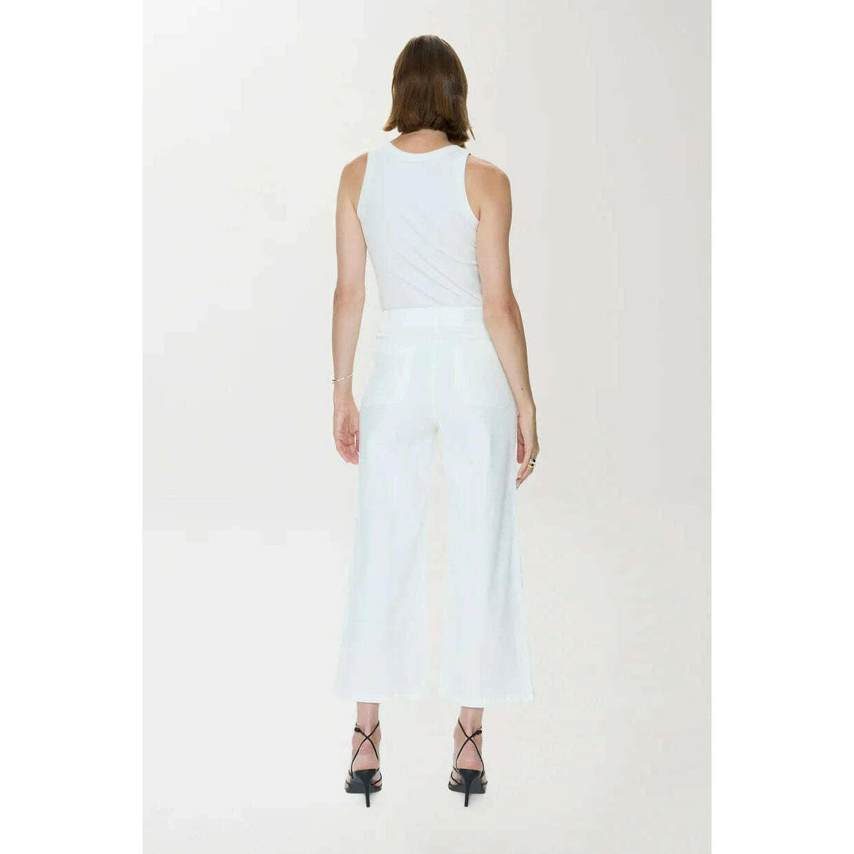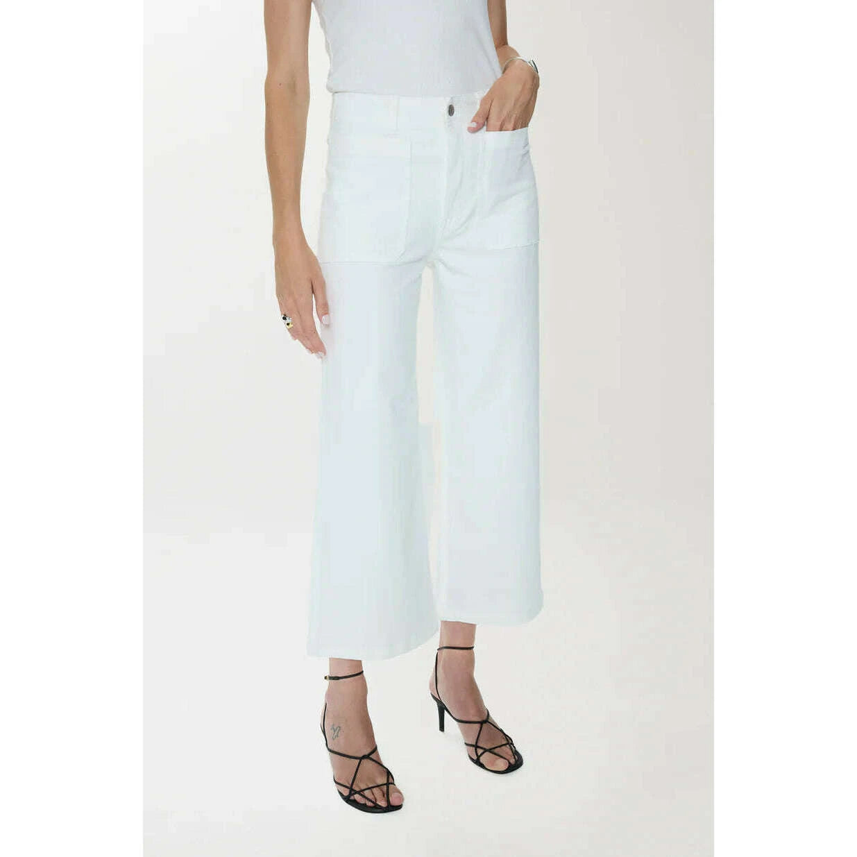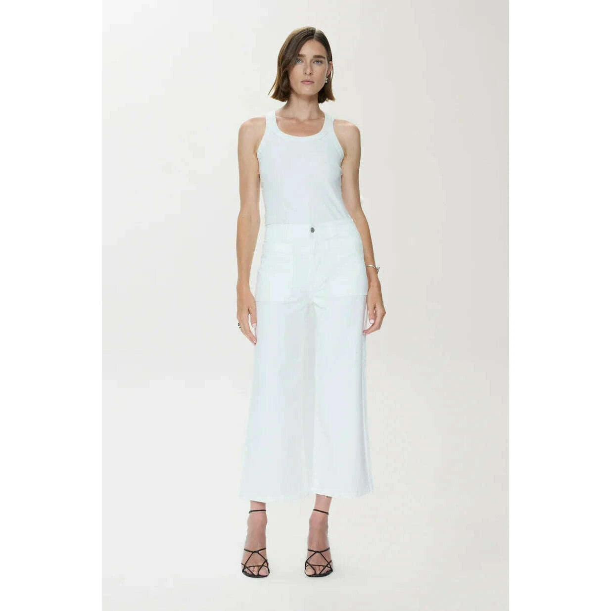 Zooey updates the classic utility pant with a high rise, streamlined straight leg, and cropped inseam that gives the silhouette a contemporary new feel while patch pockets offer practical appeal. Crafted in Le Blanc, the bright white wash adds a polished contrast to the pant’s workwear roots.
