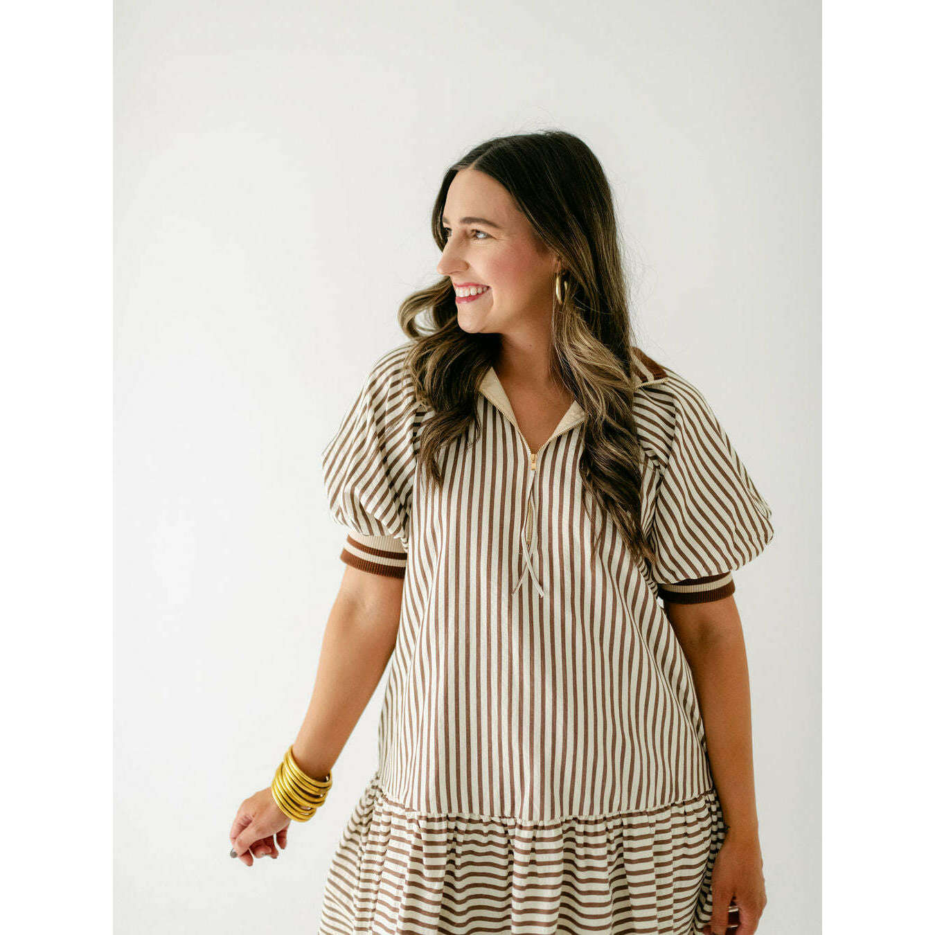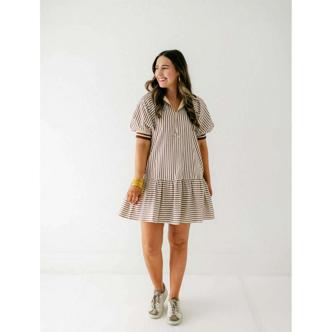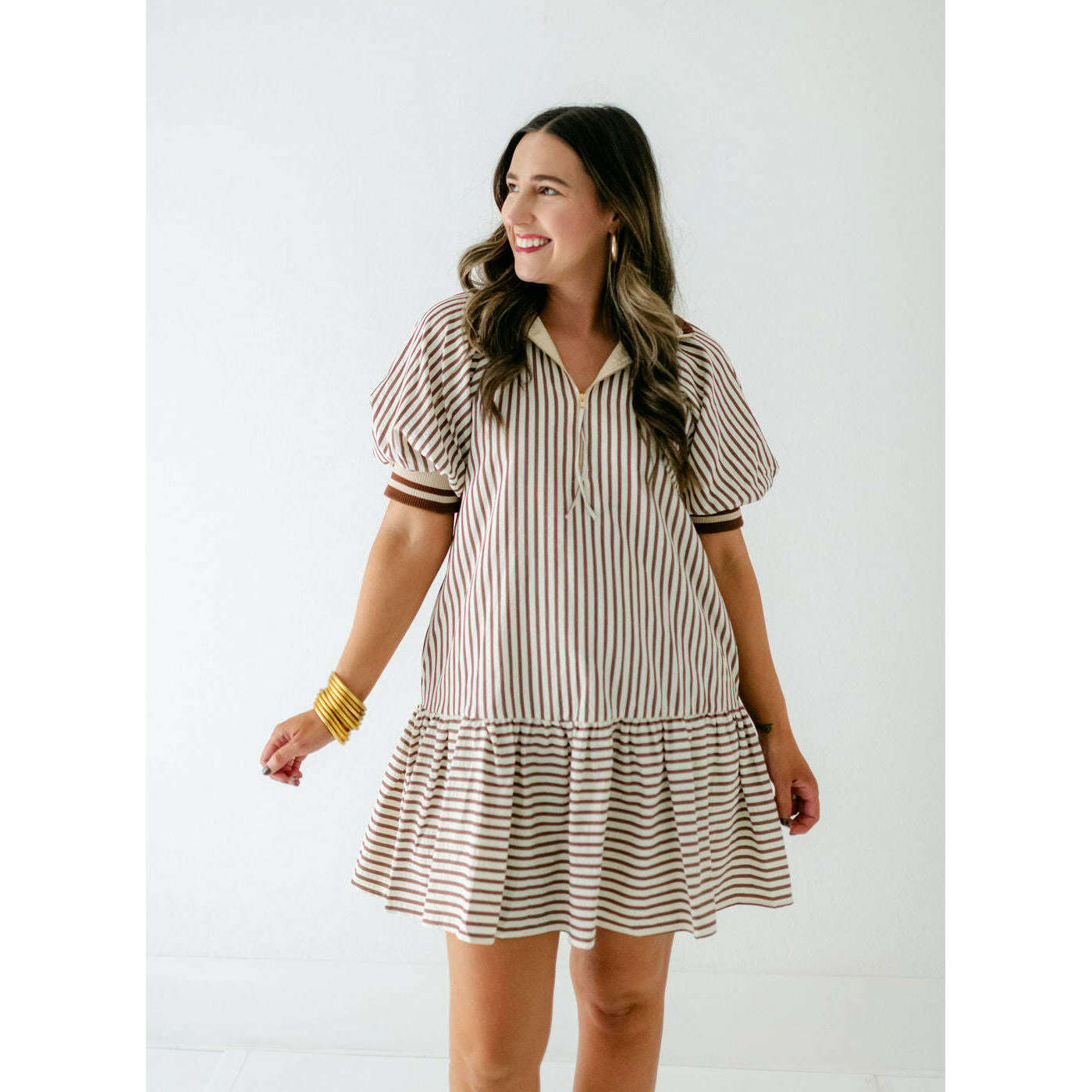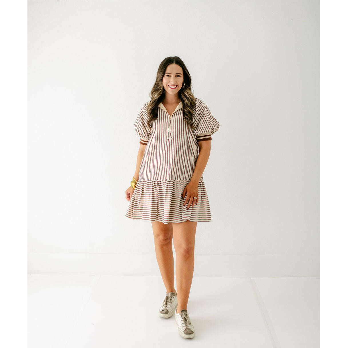 The Ellie Brown Stripe Mini Dress is your effortless go-to for fall. With its playful stripes and easy, breezy fit, this dress combines comfort and style perfectly. Slip it on for a quick, chic look that’s ready for any occasion—no fuss, just instant fall fashion.