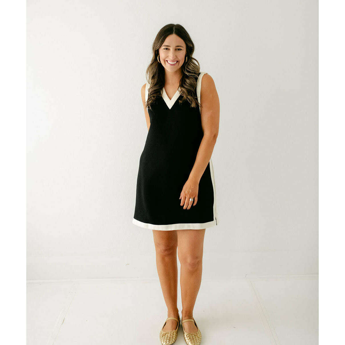 The Julie Black and Cream Trim Shift Dress is the perfect addition to your fall wardrobe. Its flattering fit and chic black and cream contrast trim create an effortlessly stylish look. Whether dressed up or down, this versatile dress pairs beautifully with any shoe, making it an easy go-to for any occasion. Embrace fall fashion with this must-have piece that combines comfort and charm.