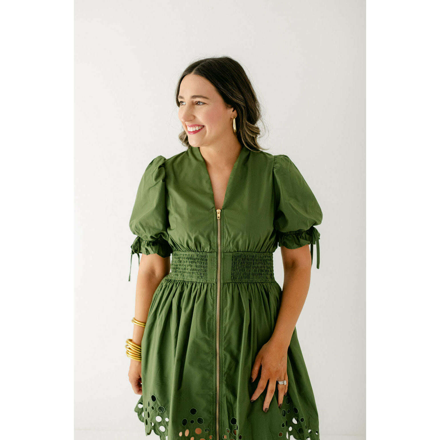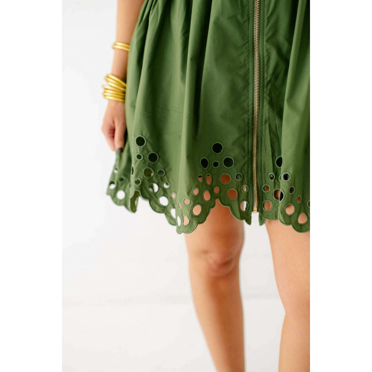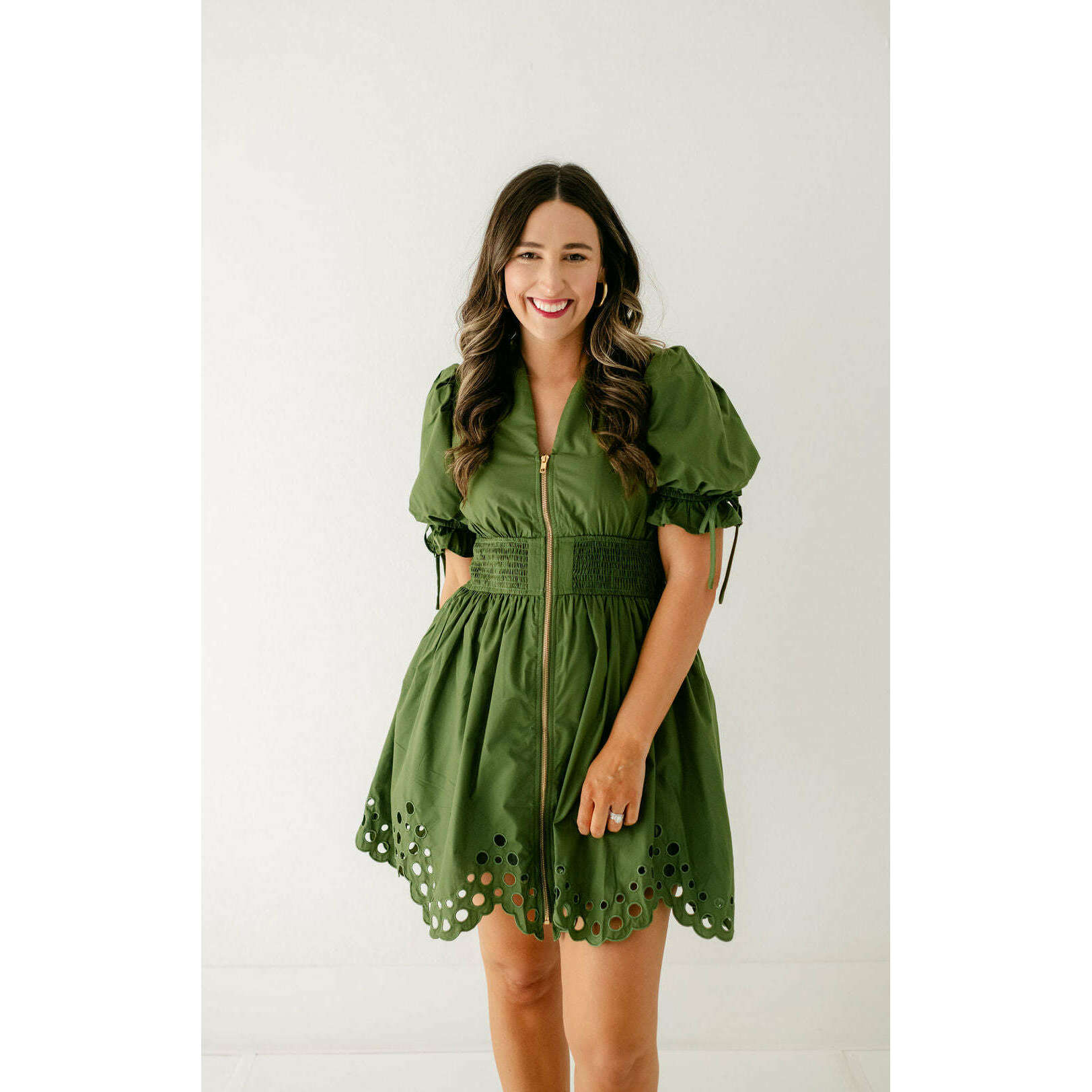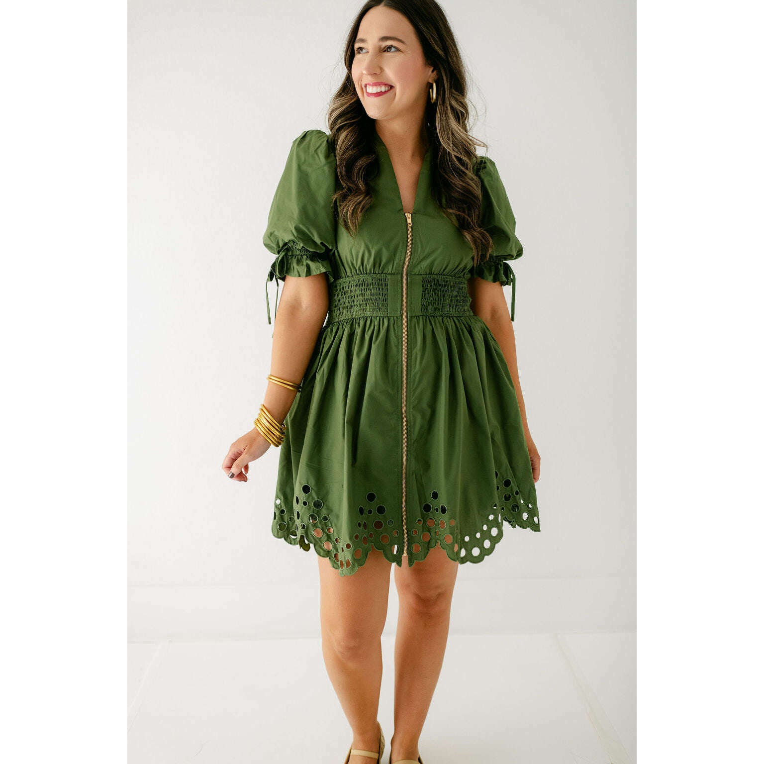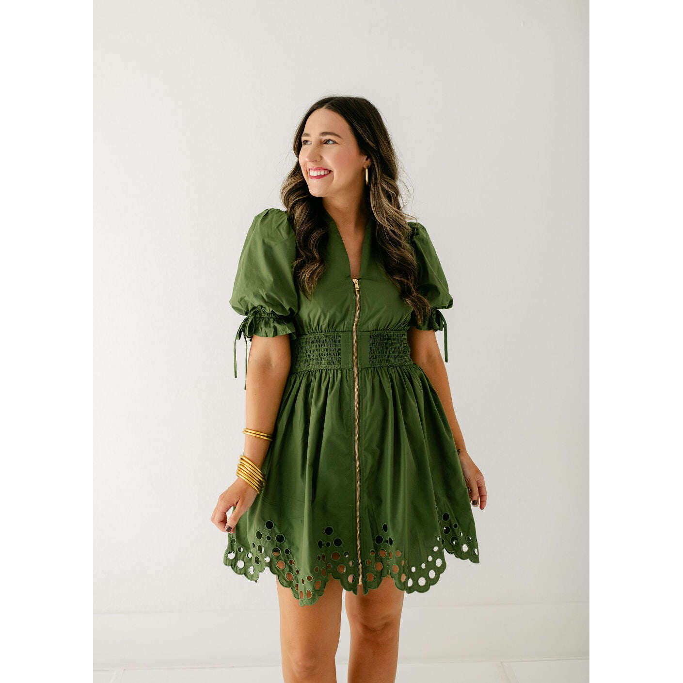 The Layla Olive Eyelet Zip Up Dress combines playful eyelet detailing with a rich olive hue, making it a must-have for fall. Its zip-up design adds a modern touch while offering easy wearability. Perfect for layering or wearing on its own, this dress brings both charm and comfort to your seasonal wardrobe. Embrace effortless style with this cute and fun favorite.