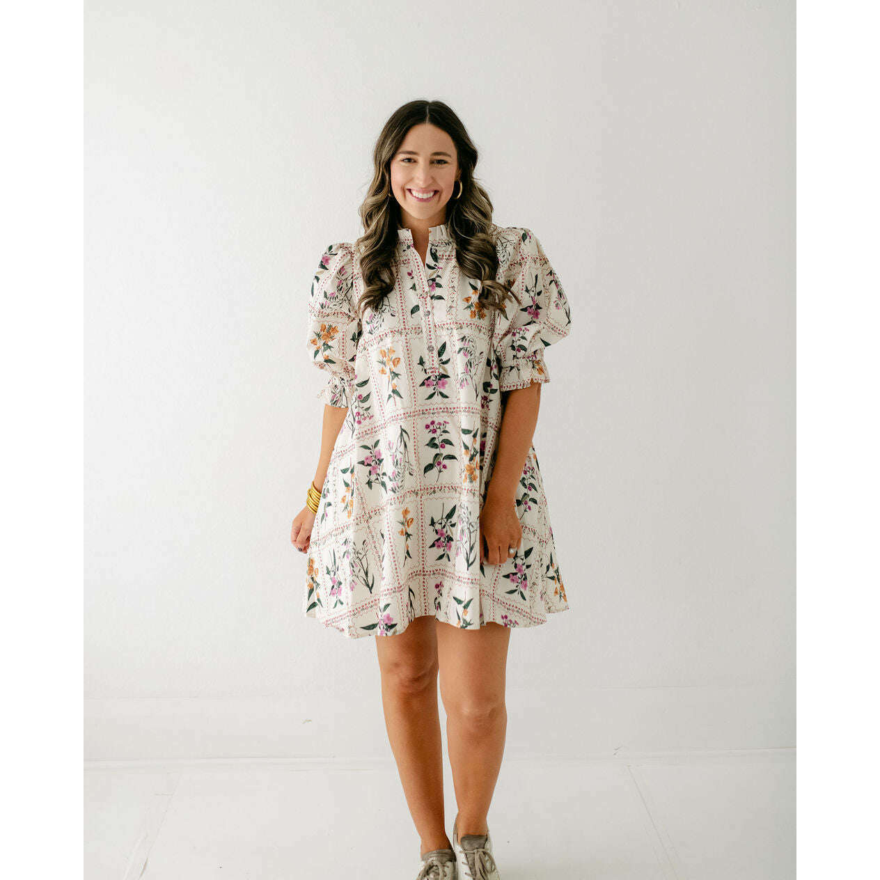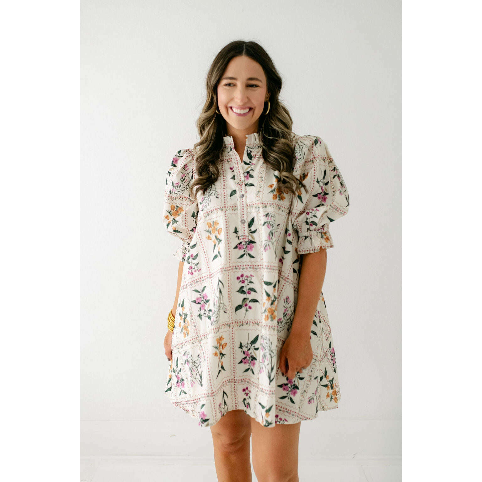 The Nora Ivory Floral Swing Dress captures effortless charm with its delicate ivory backdrop and feminine floral print, perfect for embracing the latest stamp print trend. Its airy swing silhouette flatters every figure, offering both comfort and style for any occasion. Whether for brunch or a casual day out, this dress effortlessly combines cute and chic, making it a must-have addition to your wardrobe.