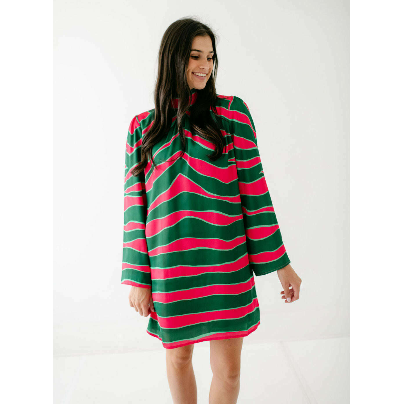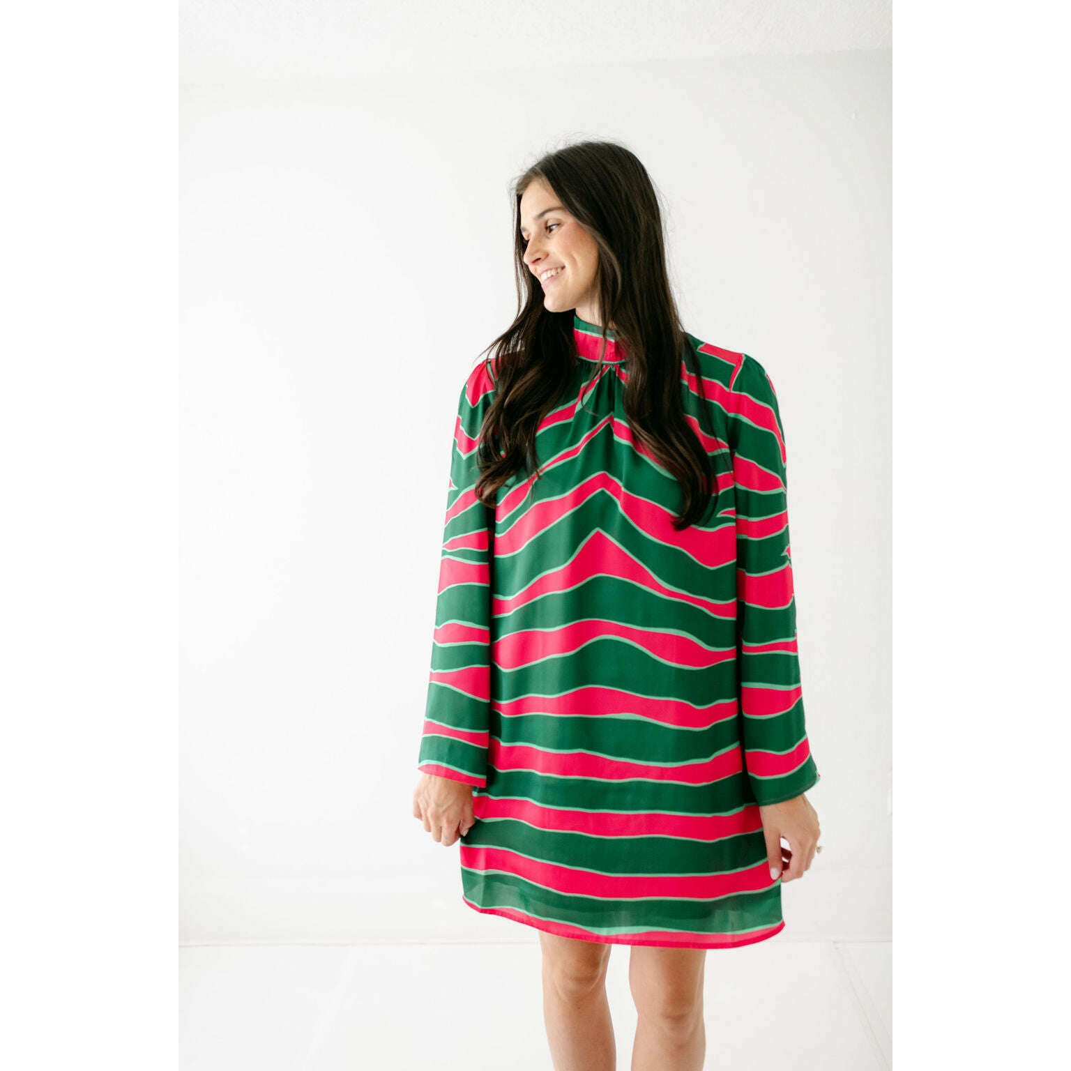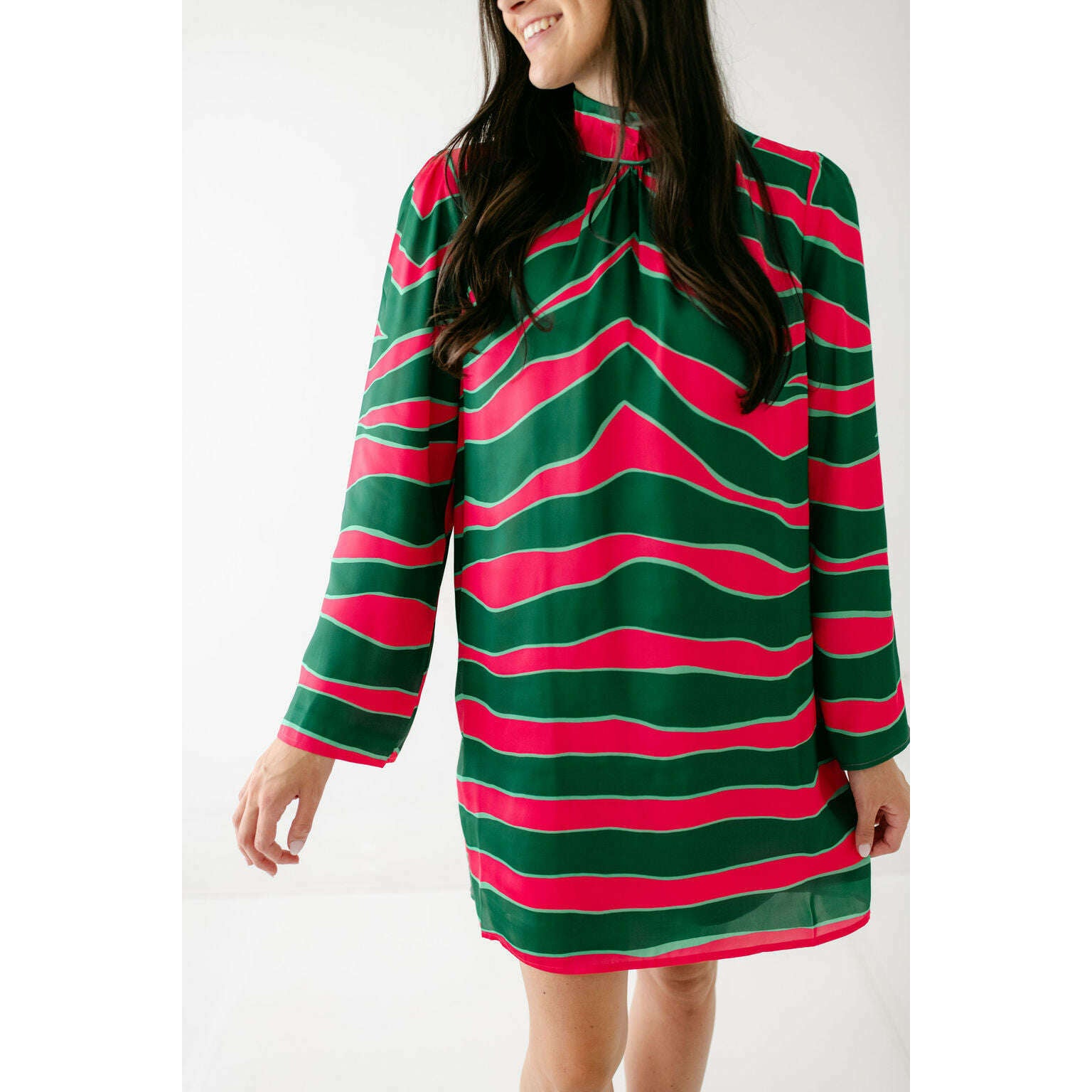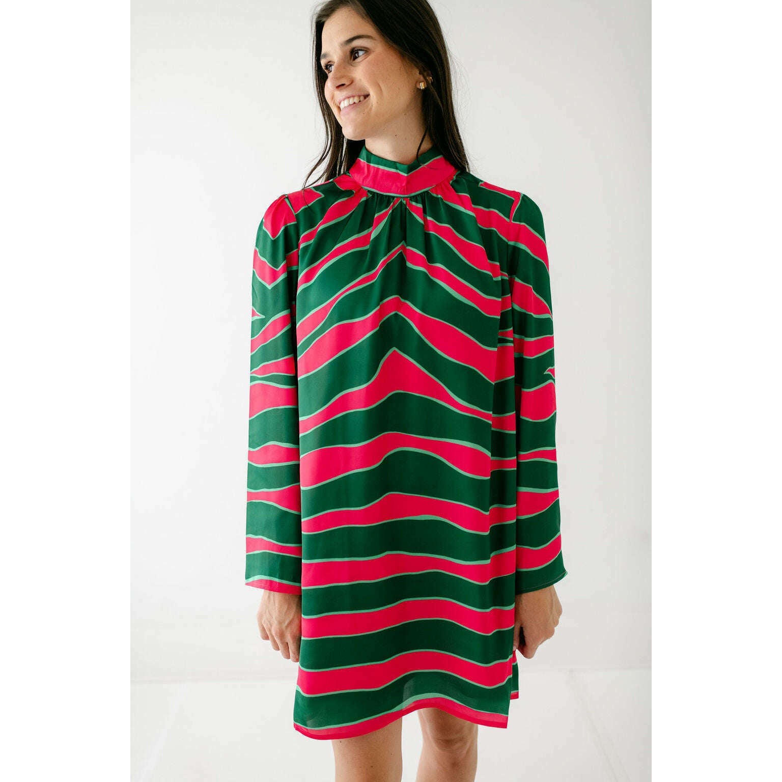 Get ready to turn heads this holiday season with the Alden Adair Emery Dress in Ziggy Palm, a showstopper that brings joy and elegance to every celebration. This versatile piece effortlessly transitions from festive gatherings to intimate dinners, ensuring you look and feel your absolute best. Treat yourself to a dress that radiates confidence and charm—it's the perfect addition to your seasonal style collection.