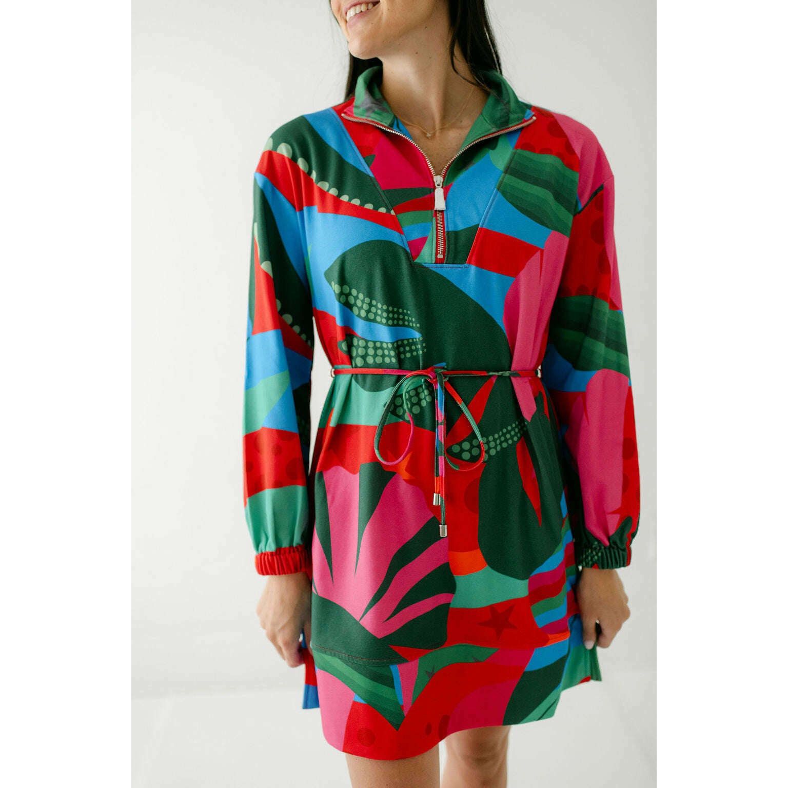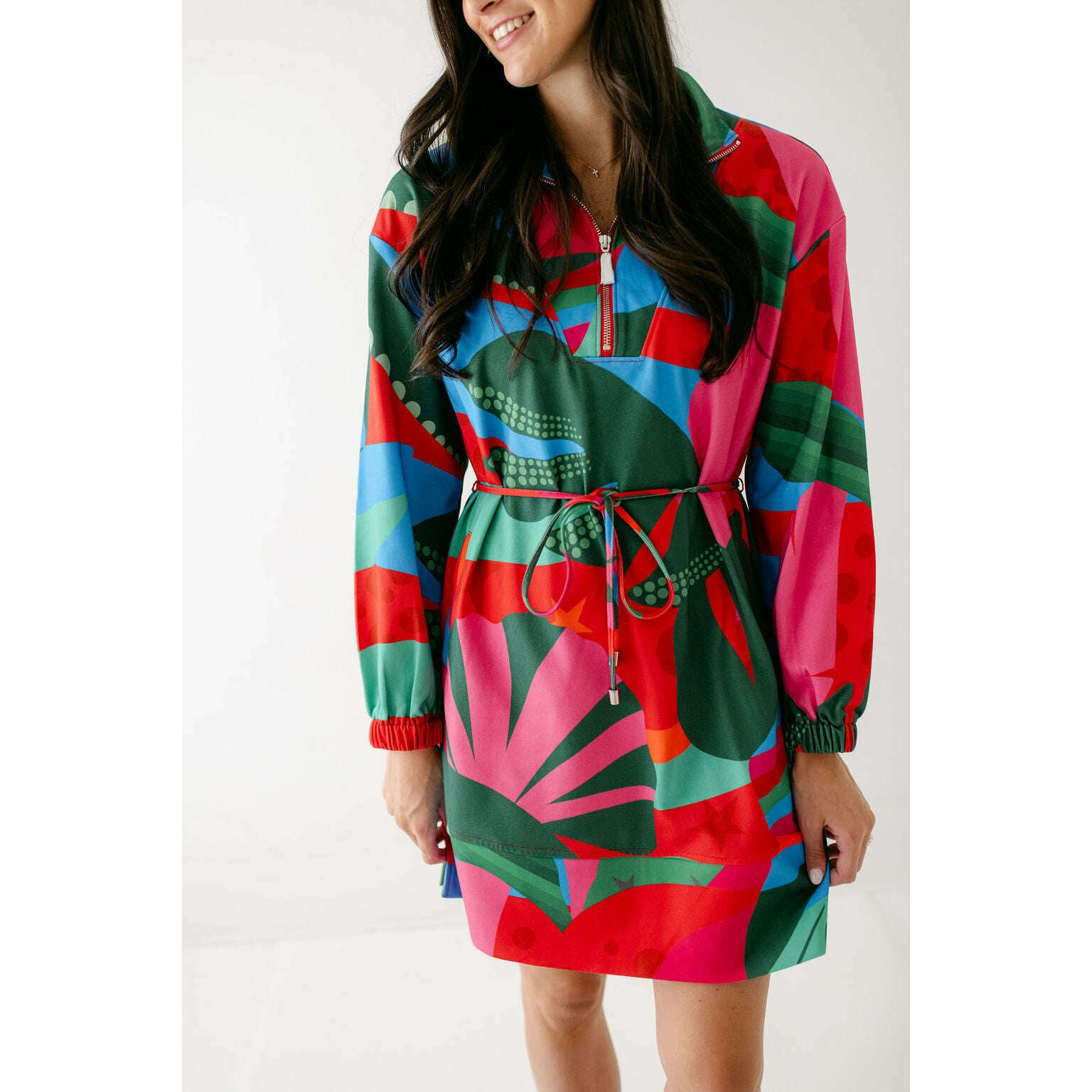 Introducing the Alden Adair Logan Dress! Perfect for a casual day out on the go or a weekend getaway, this dress is figure flattering with an adjustable tie waist and long sleeves.