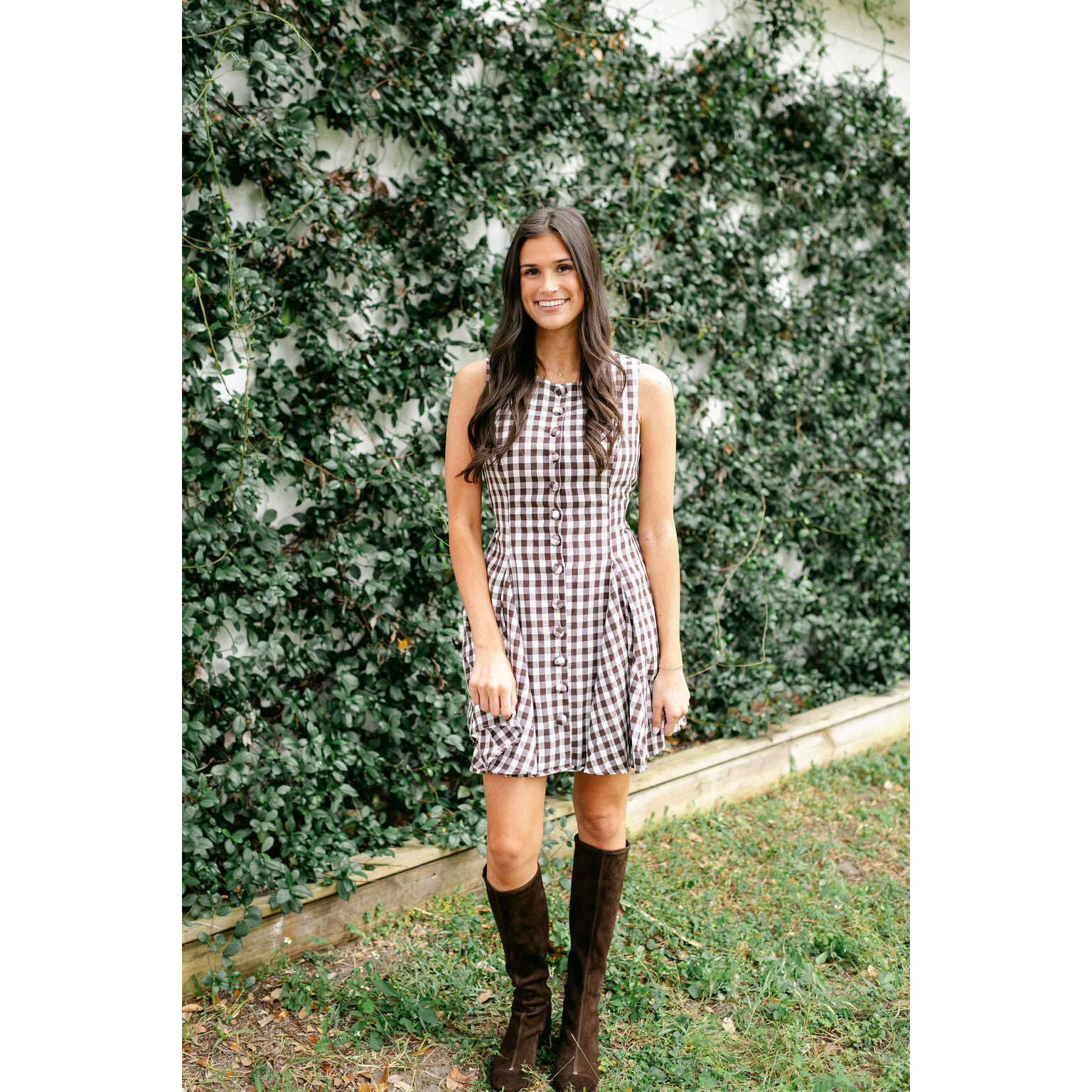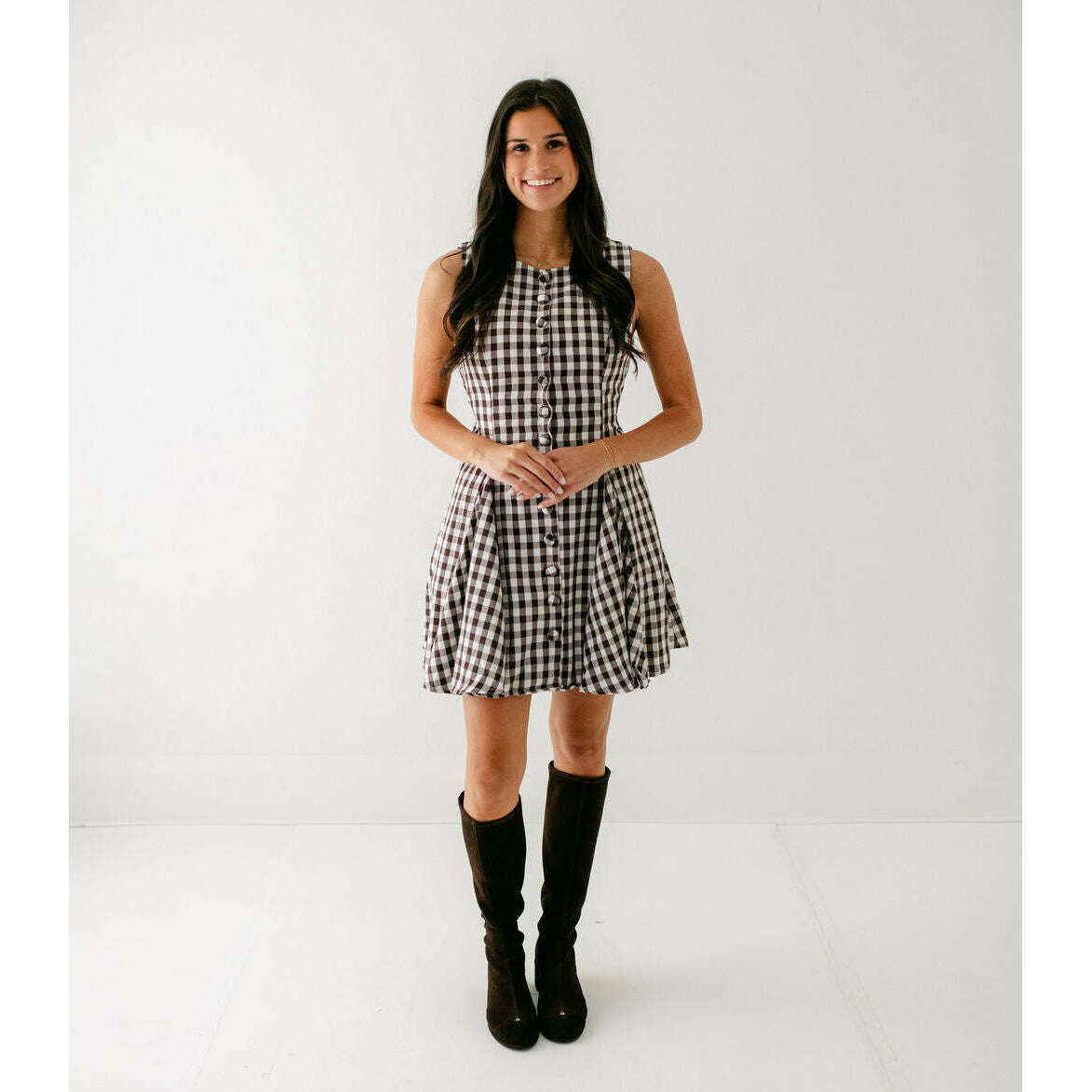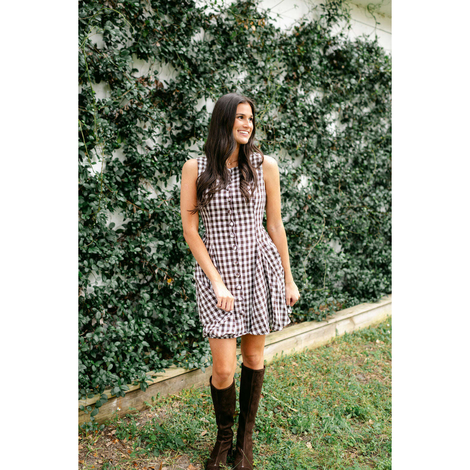 Step into fall with confidence in the Aureum Brown Gingham Mini Swing Dress, a delightful piece that combines timeless style with modern charm. The classic gingham pattern and flattering swing silhouette create an instantly photogenic look that's perfect for capturing cherished family moments or celebrating seasonal festivities.