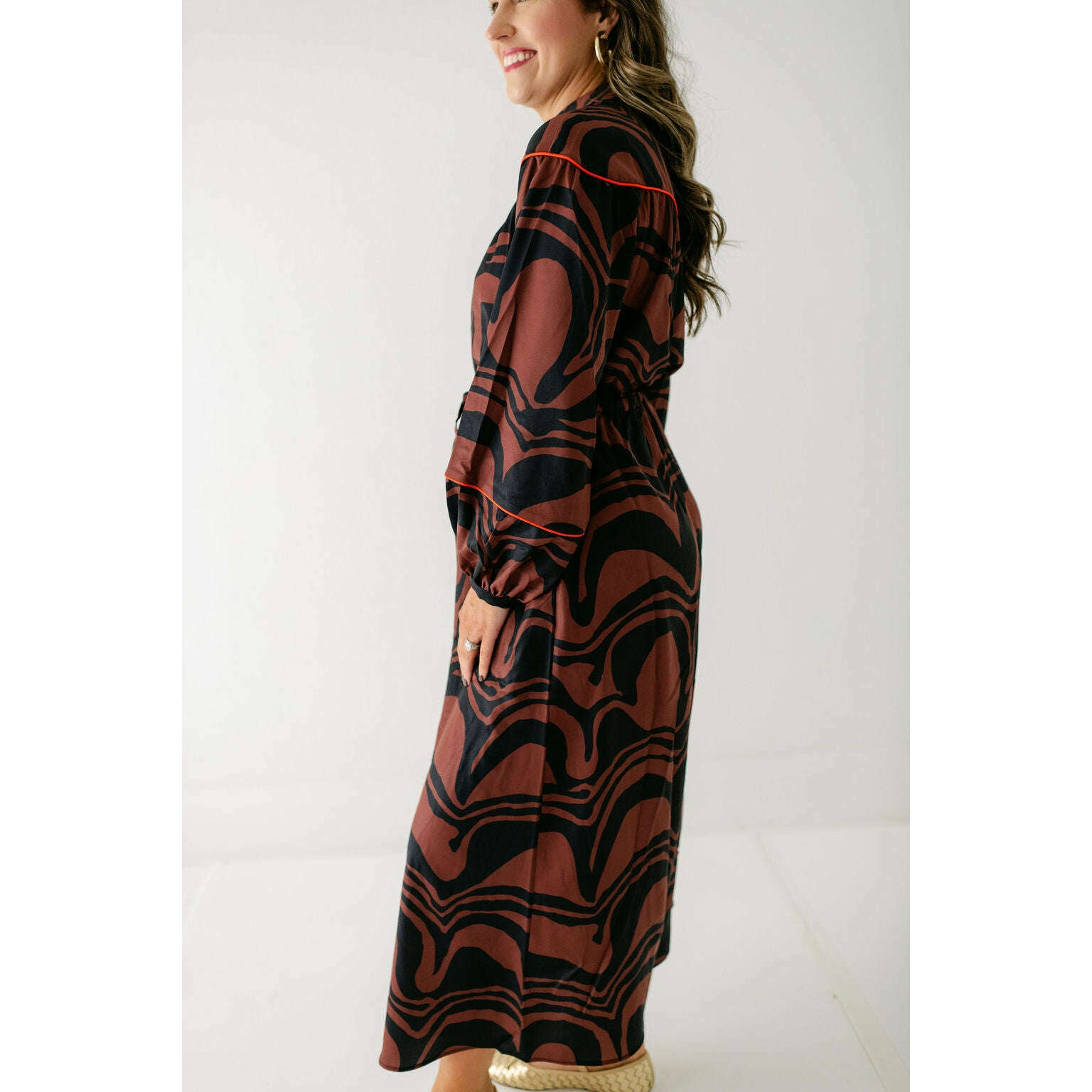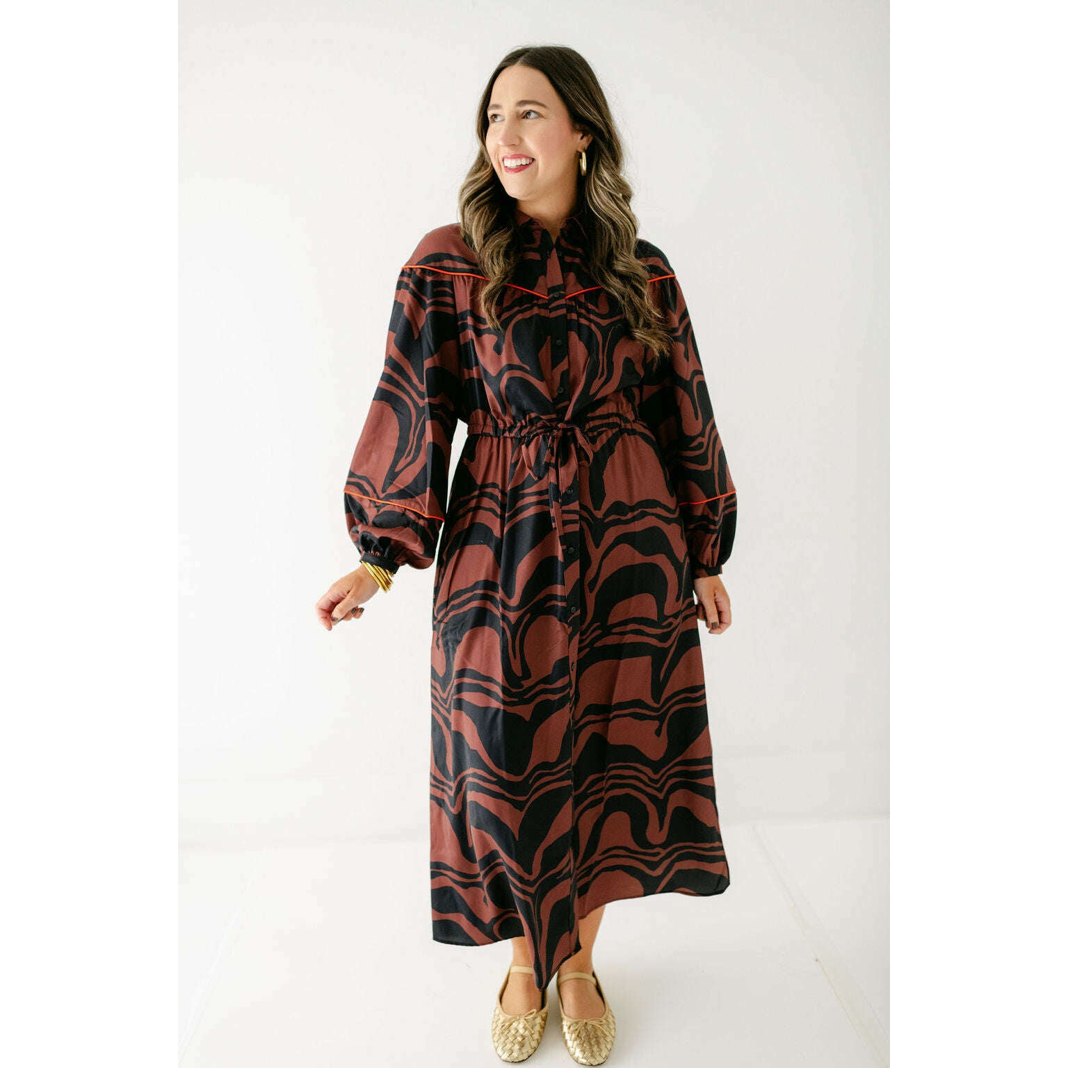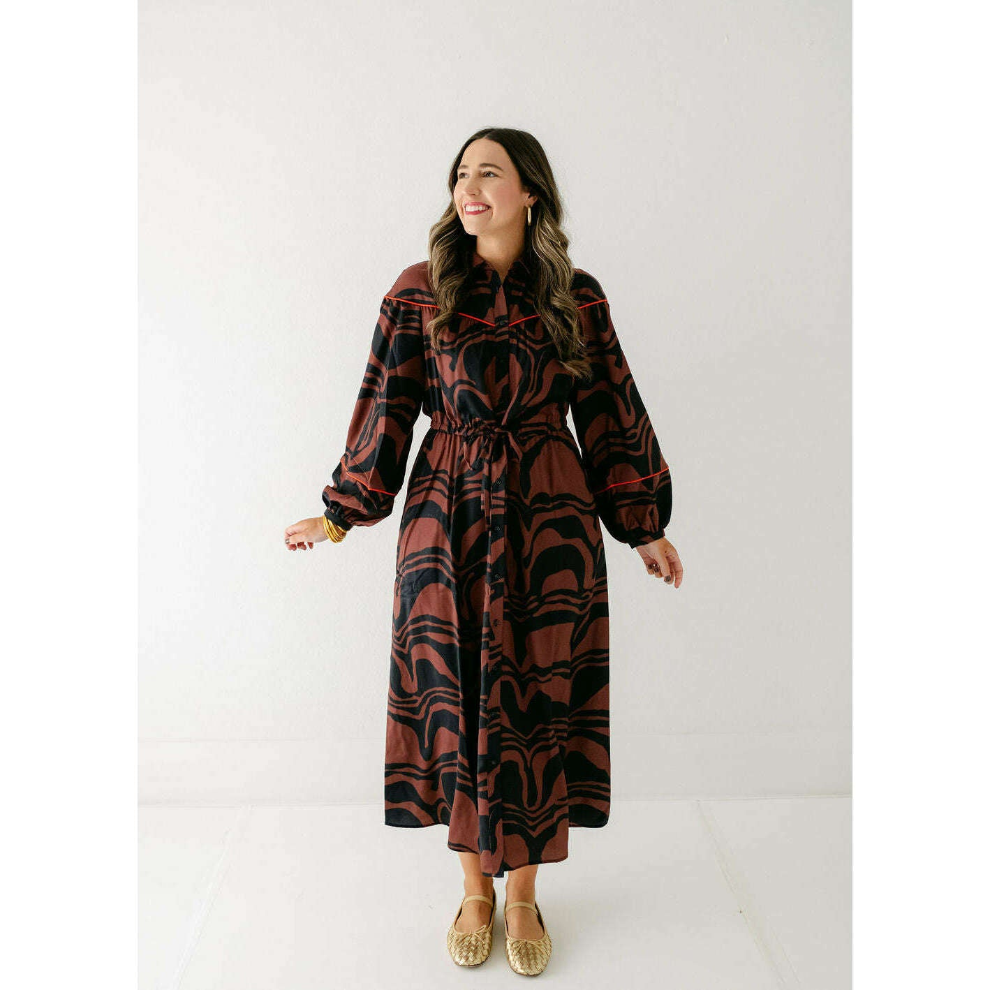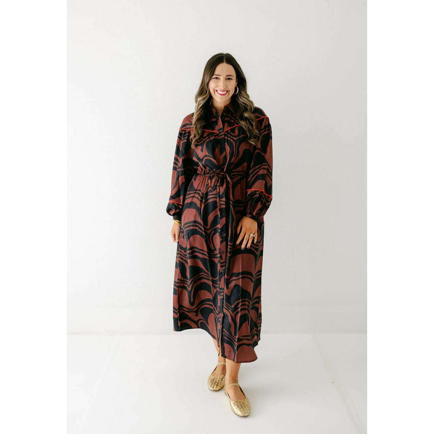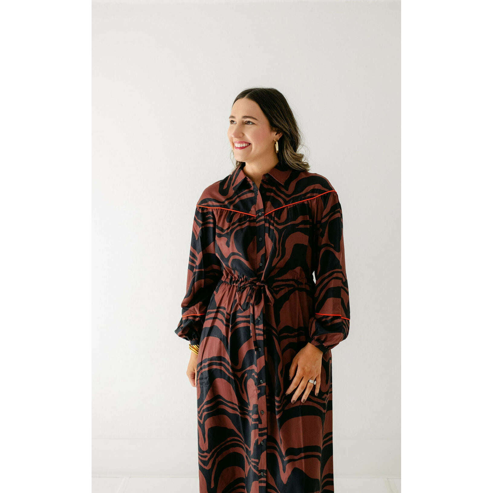 The perfect fall dress has arrived! Lucille is designed with a cinched waist, statement balloon sleeves, pockets, and a classic button front. The Canyon and Western Craft colorways feature bold contrasting piping details