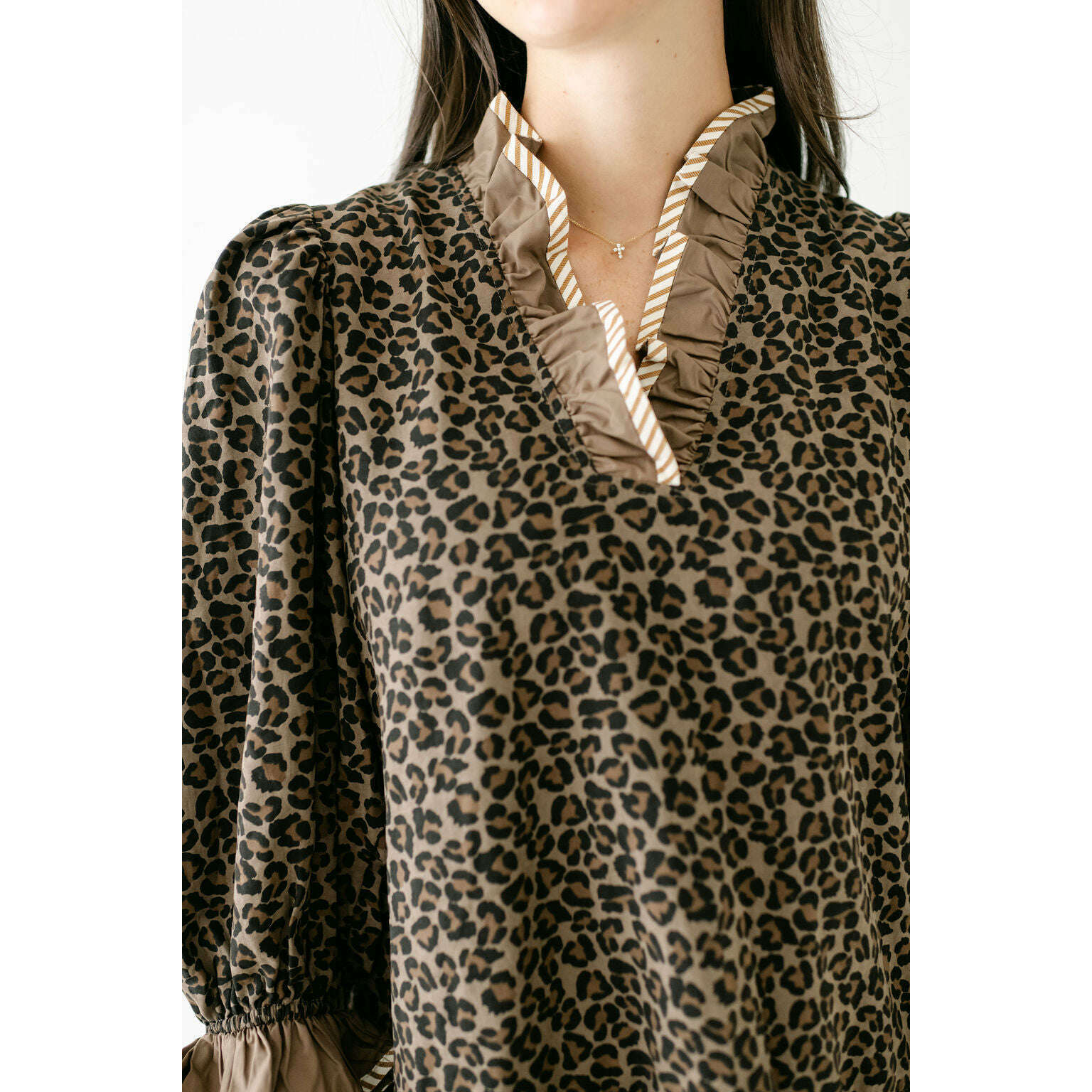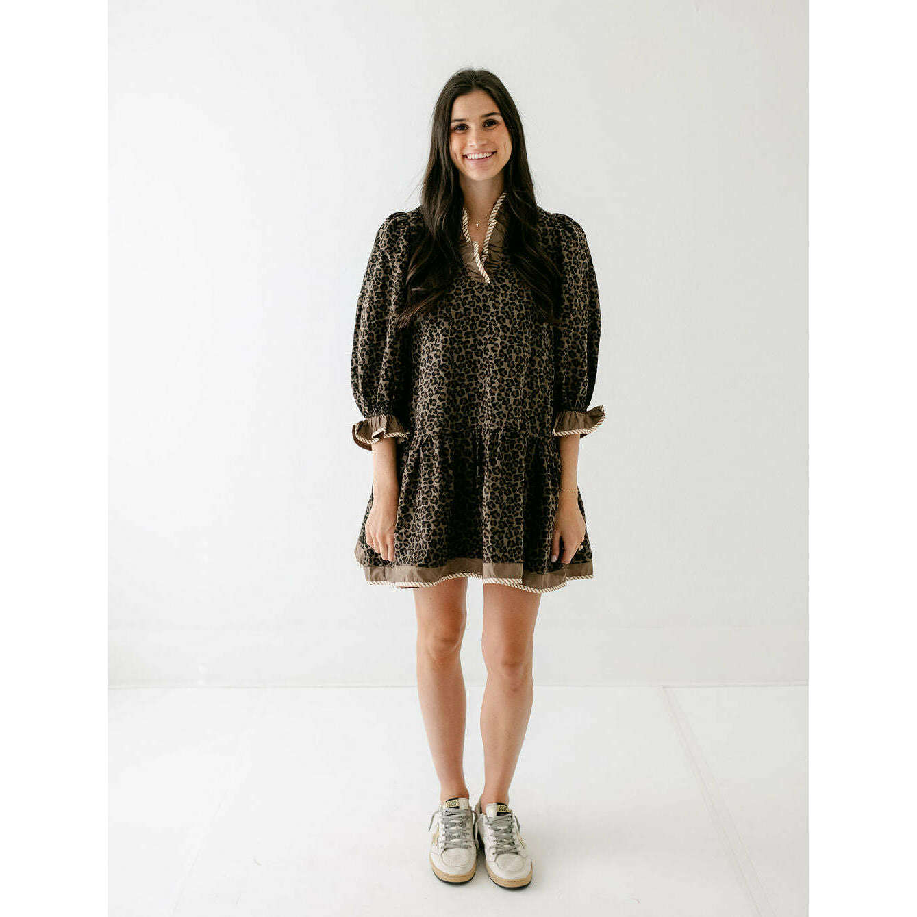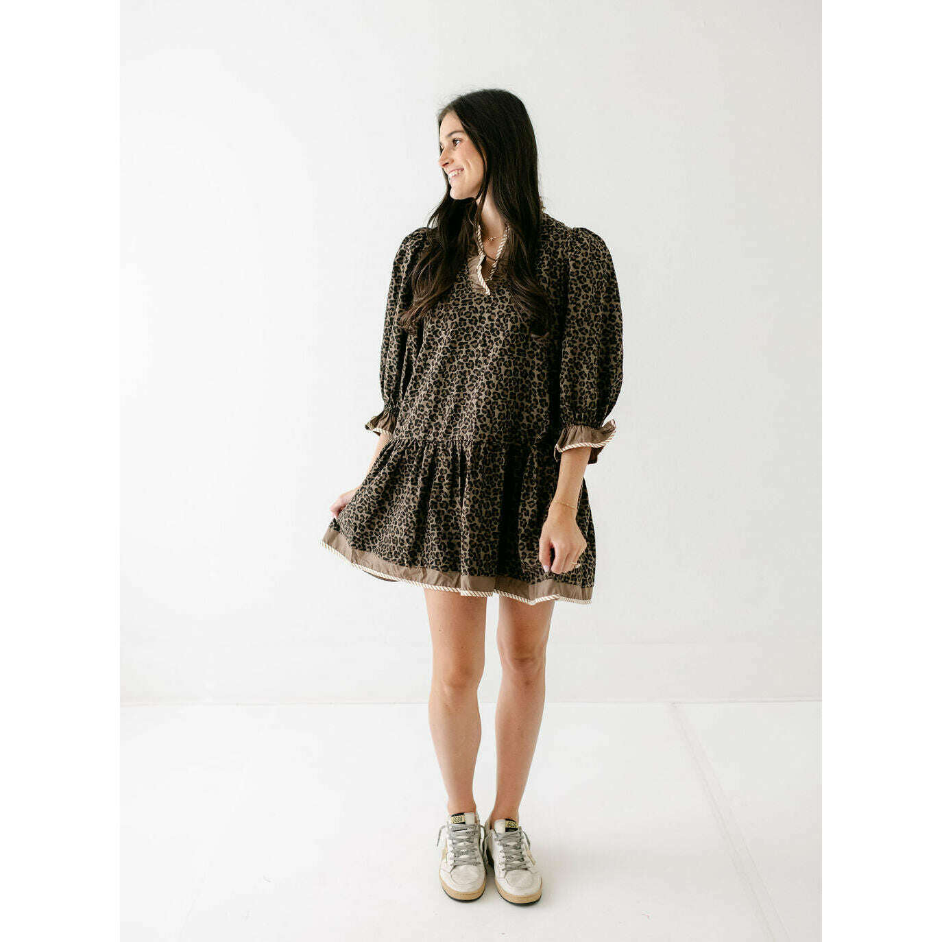 Entro Abigial Cheetah Print Long Sleeve Dress in Mocha