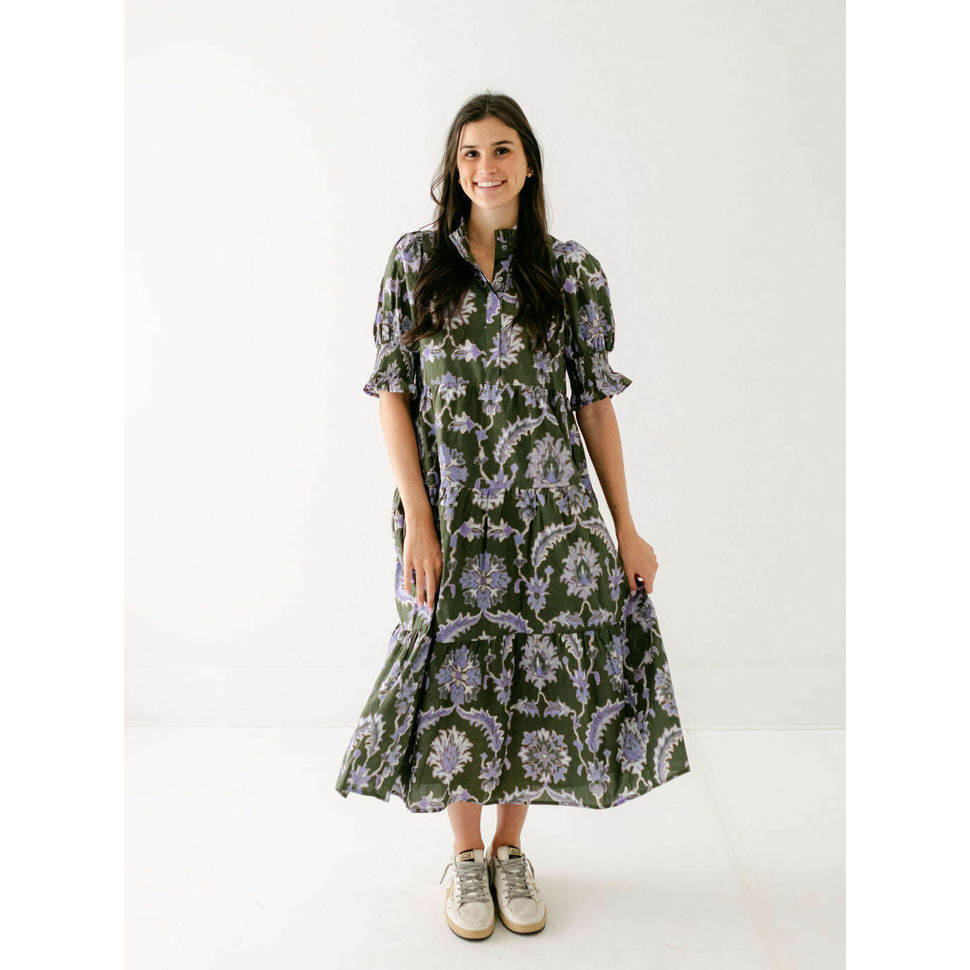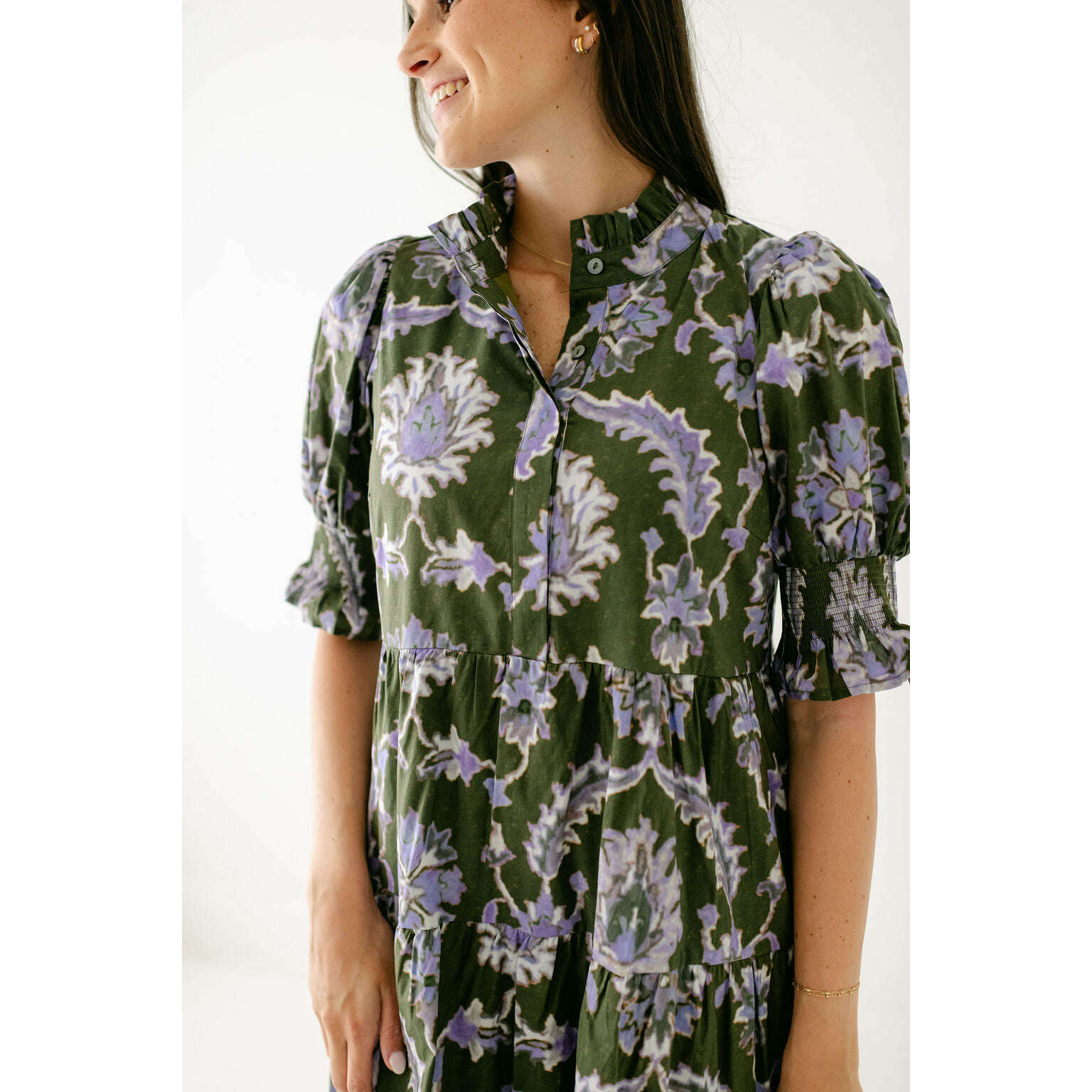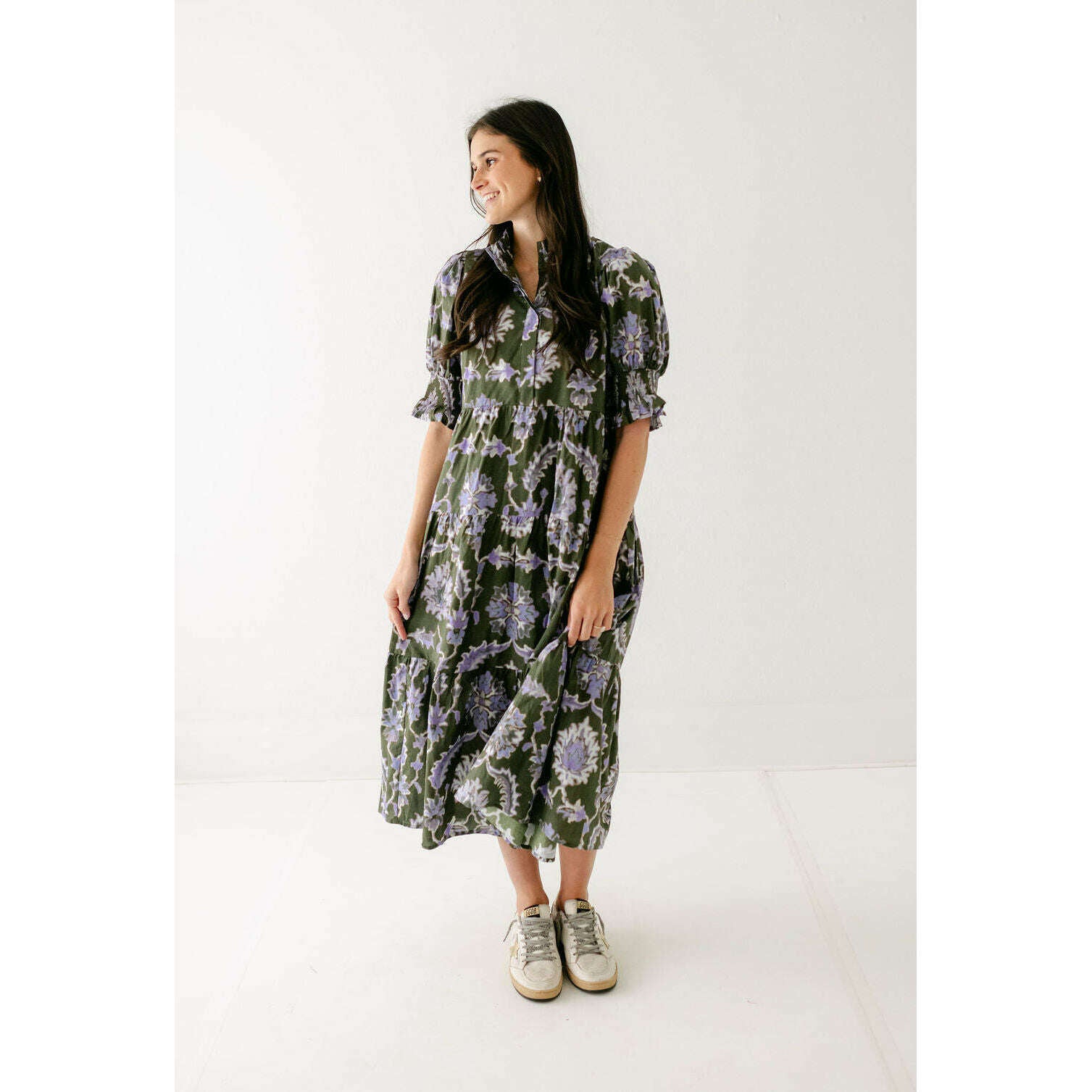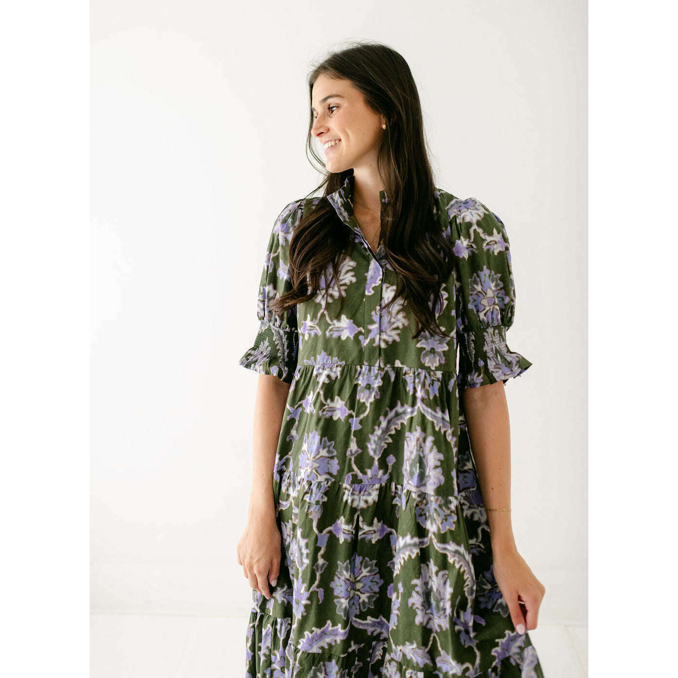 Entro Ashlyn Green and Purple Floral Midi Dress