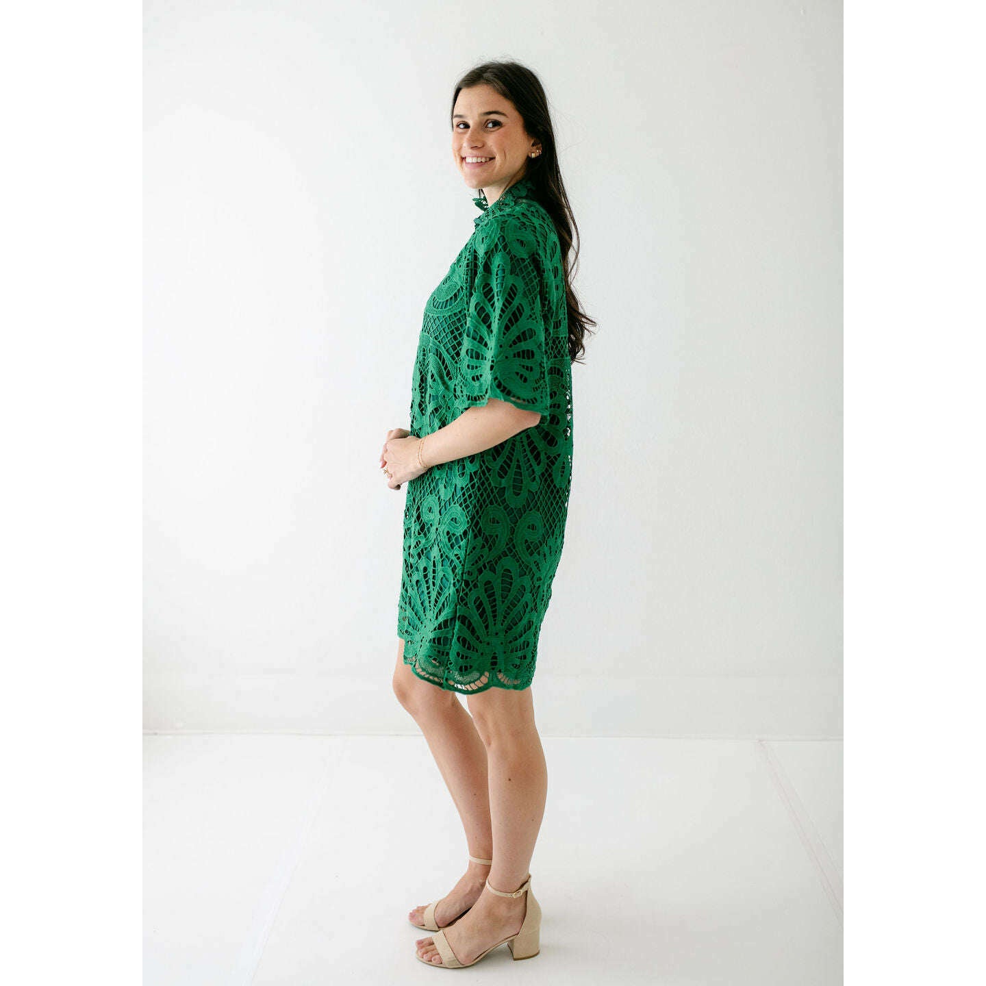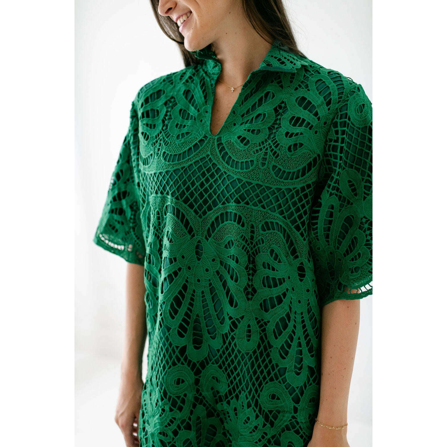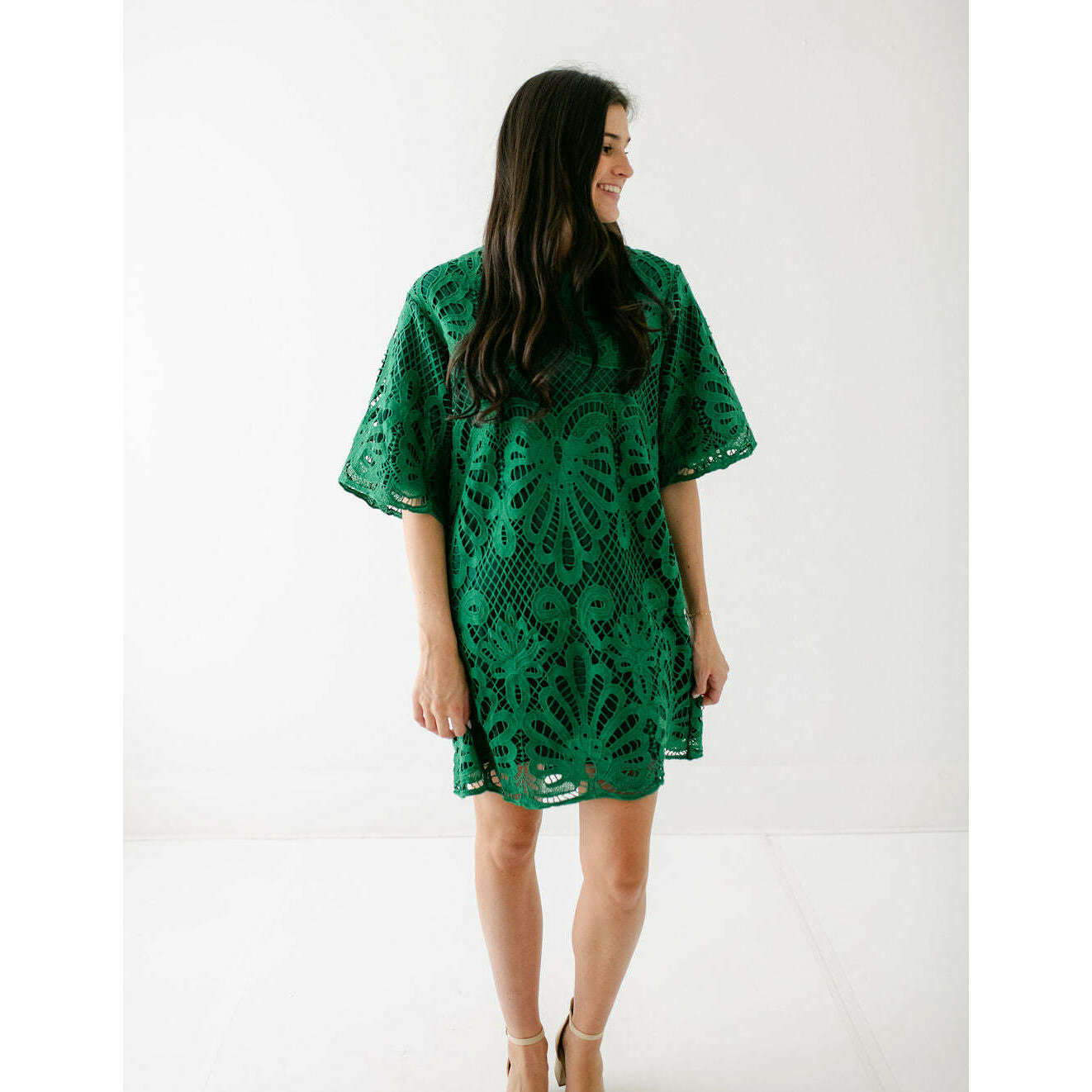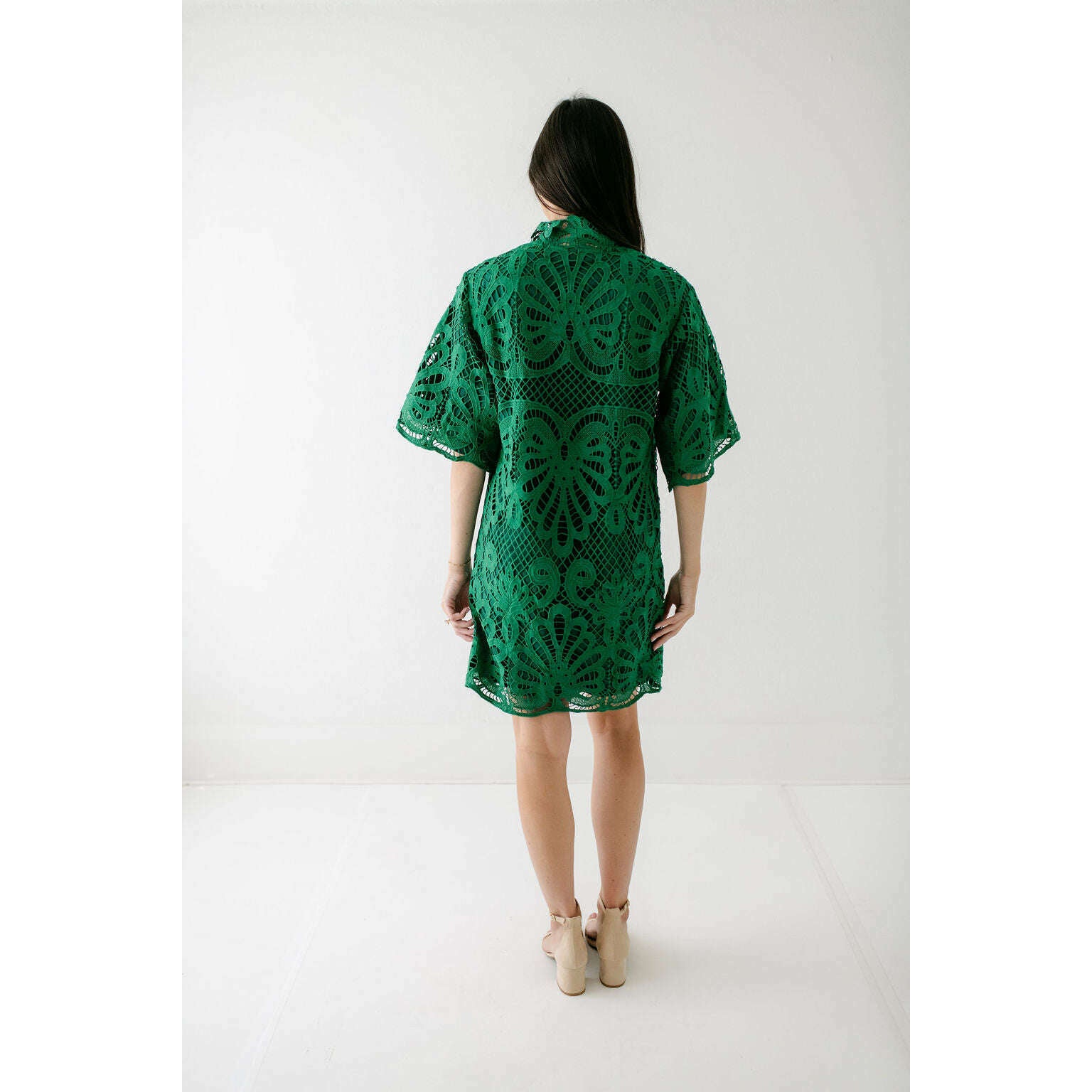 Jade Melody Tam High Neck Tunic Dress in Green Lace